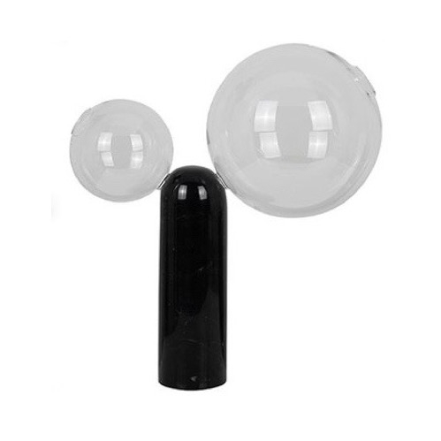 Adorno de mesa con base cilíndrica de mármol negro con dos esferas de cristal.