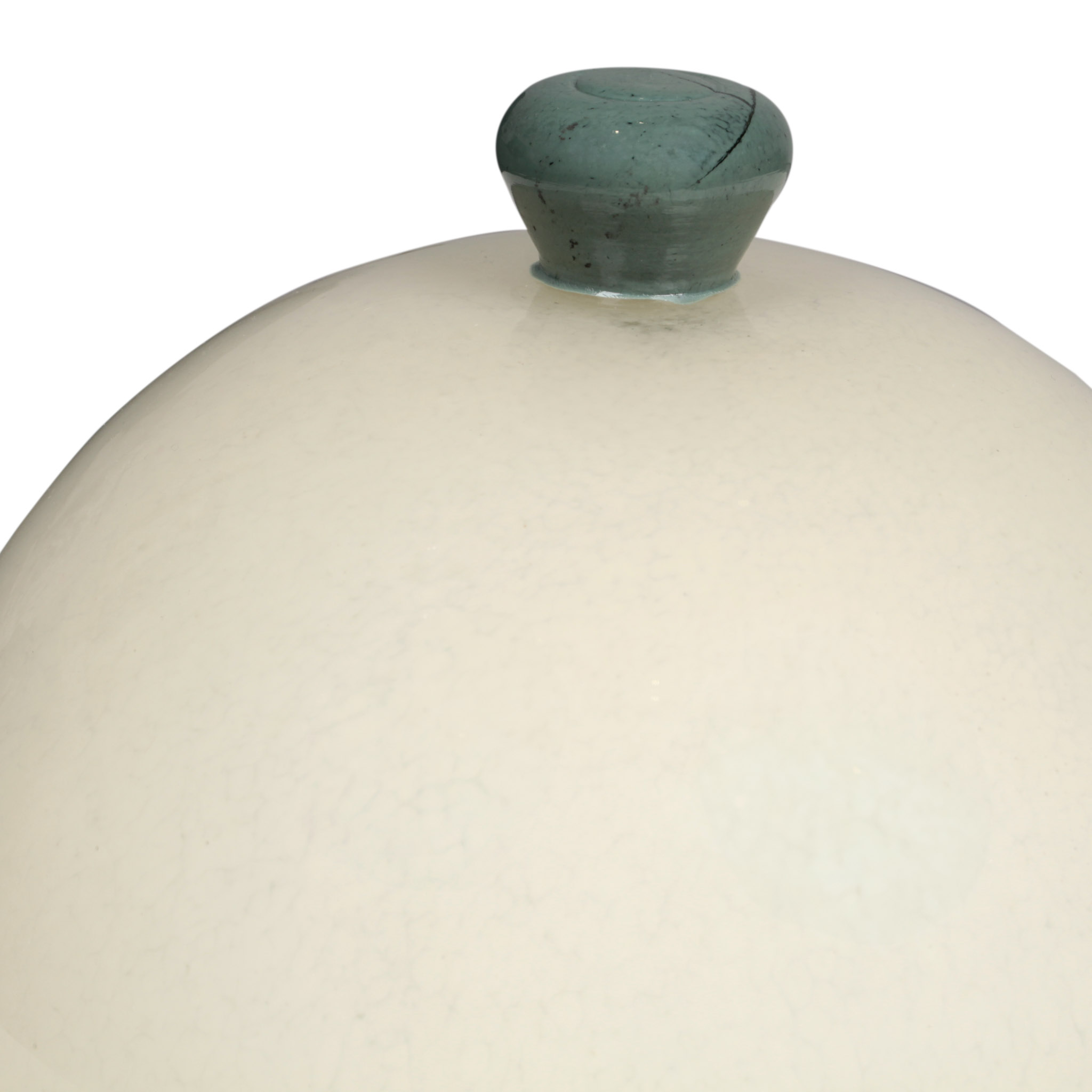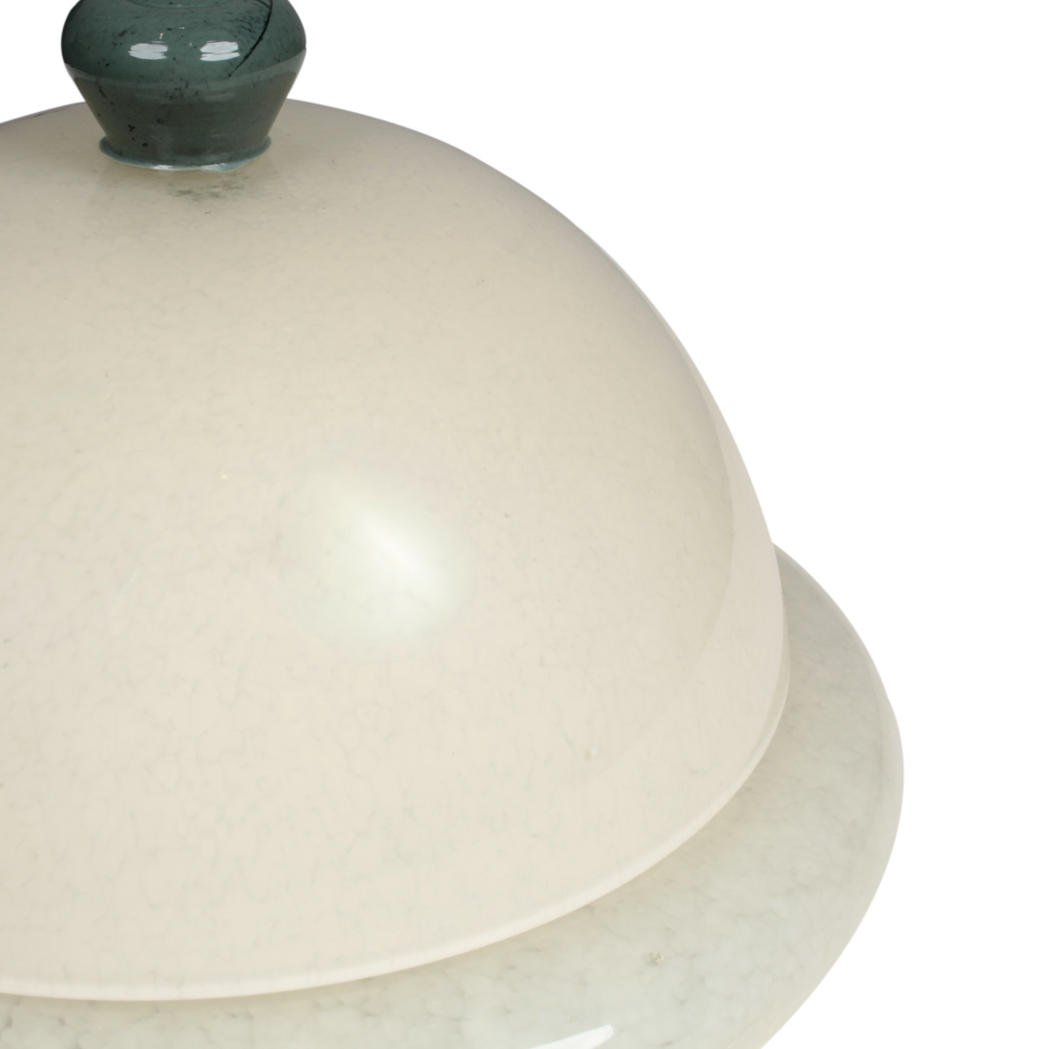 Adorno de mesa bowl de vidrio en color crema y verde con tapa.