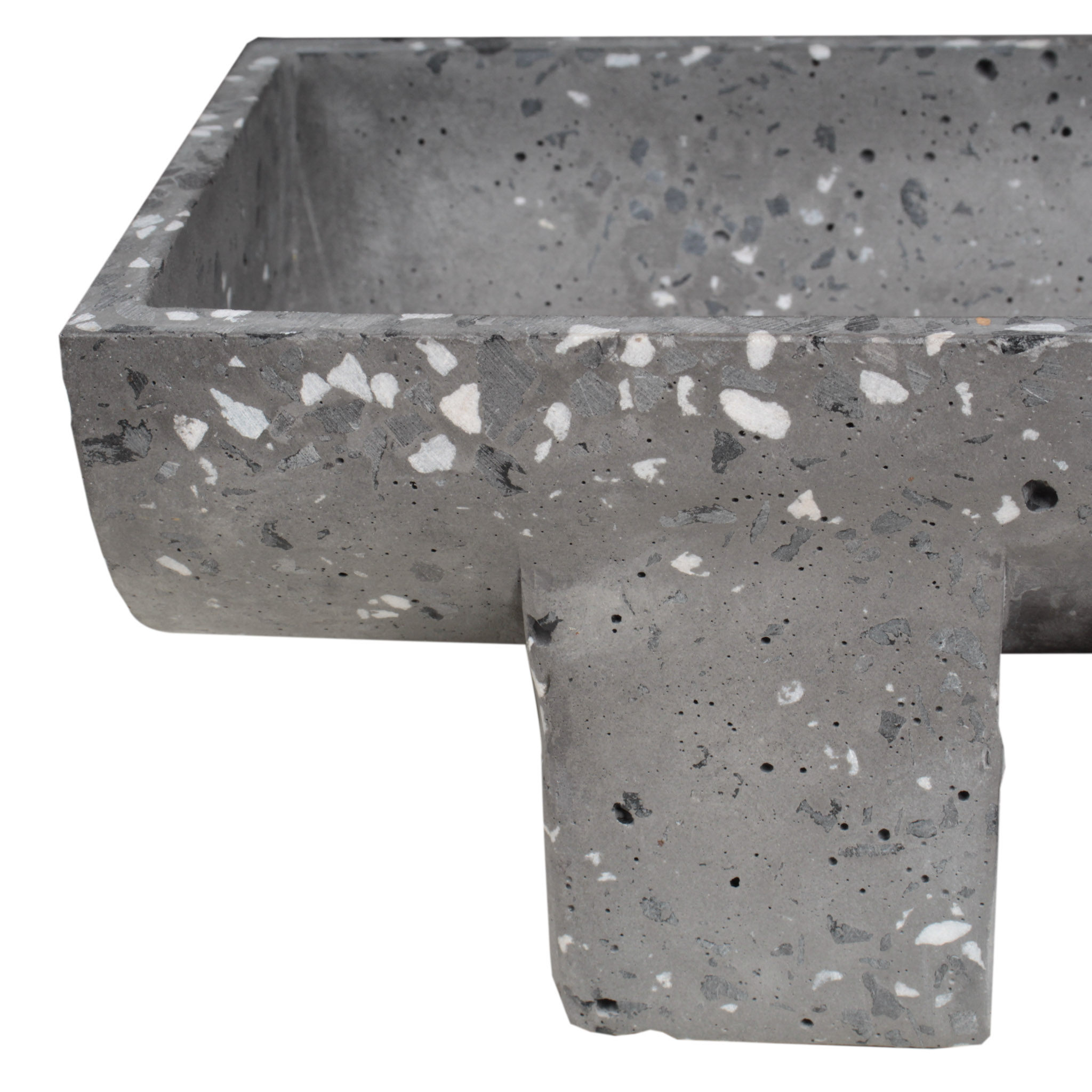 Adorno de mesa bowl rectangular de piedra terrazo en color gris.