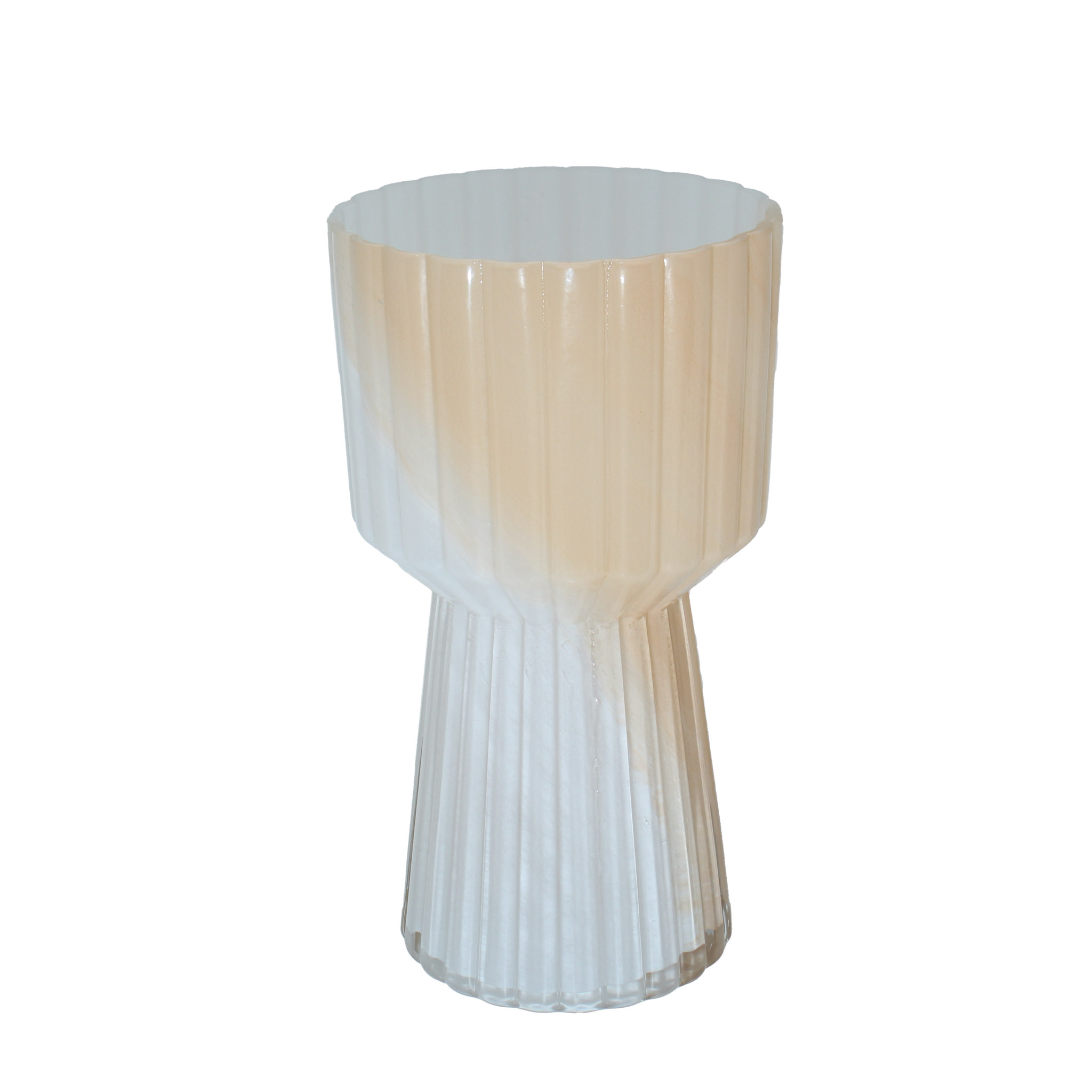 Florero blanco con crema, diseño hexagonal. Un estilo moderno y minimalista que aporta un toque elegante y único a cualquier espacio.