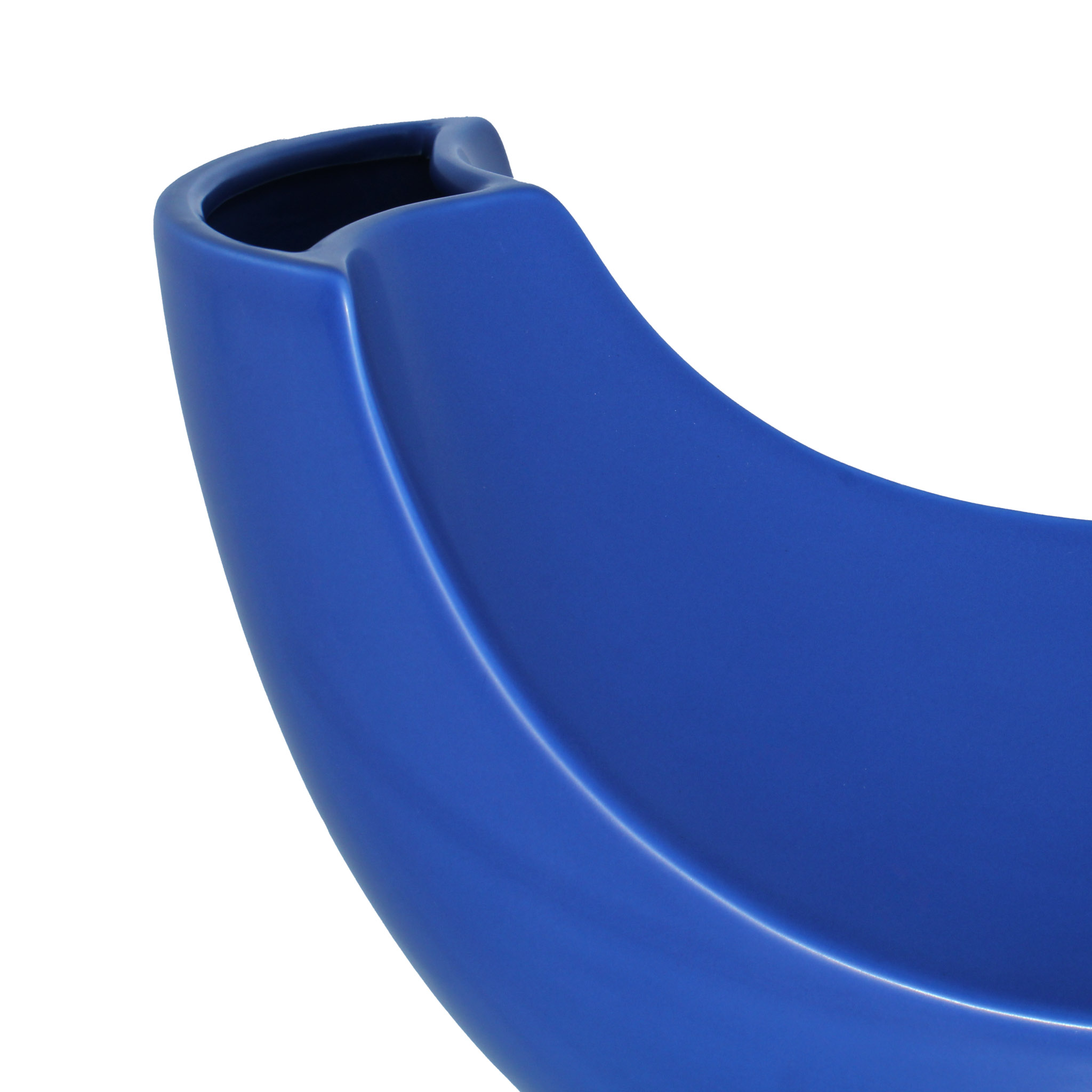 El adorno de mesa jarrón de cerámica en color azul aporta un toque de frescura y carácter al ambiente. Su diseño sencillo y versátil lo convierte en un complemento ideal para mesas, estanterías o aparadores. Una pieza decorativa y moderna, perfecta para realzar distintos estilos de interior.