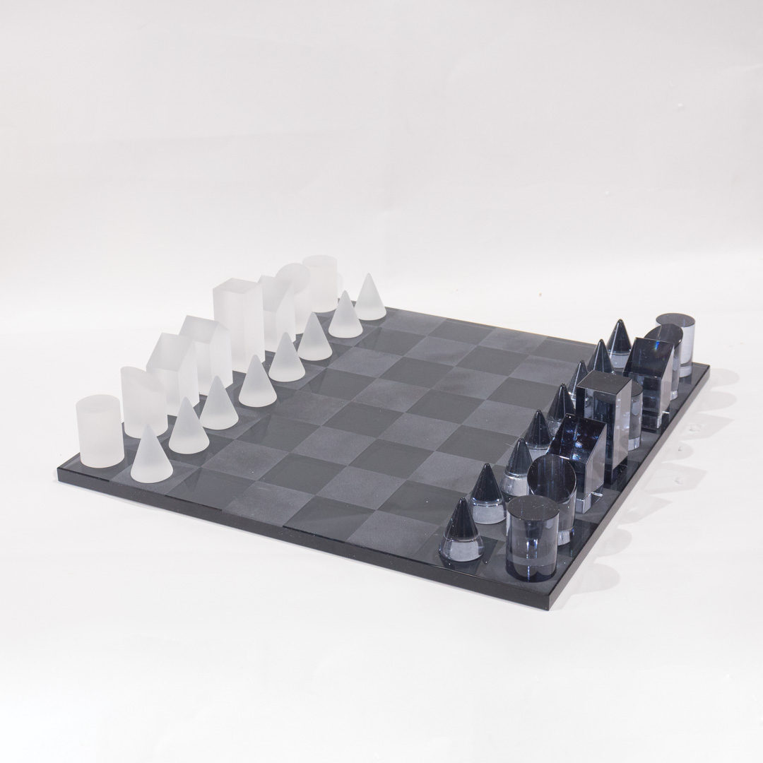 Adorno de mesa – ajedrez de cristal en color gris oscuro y blanco.