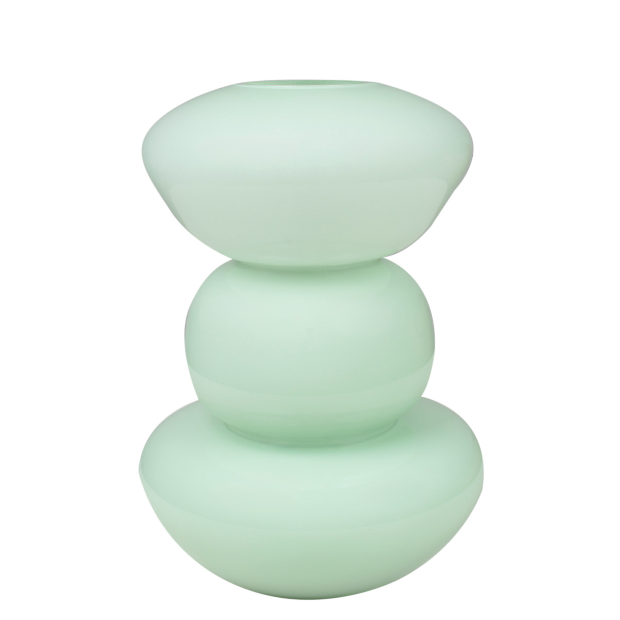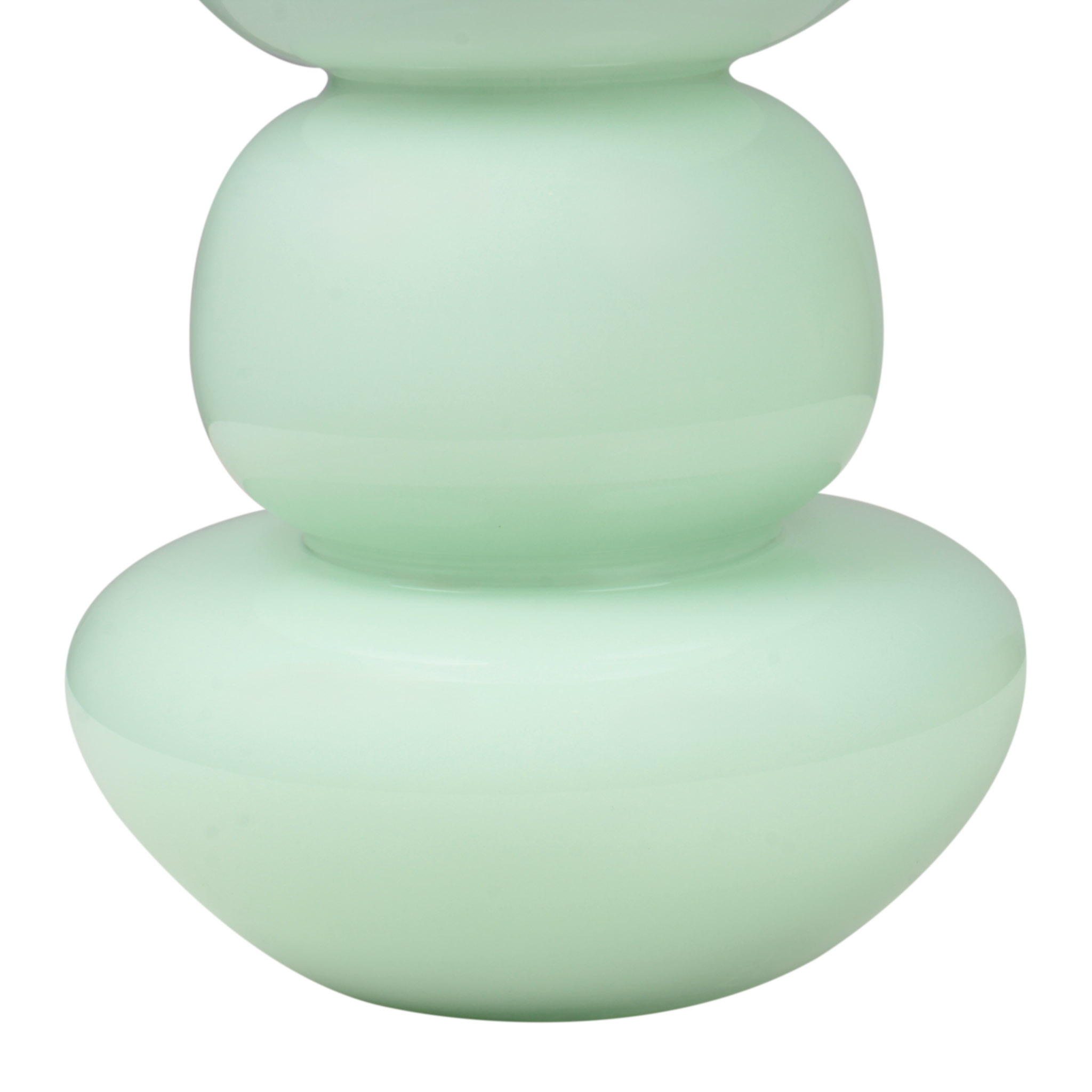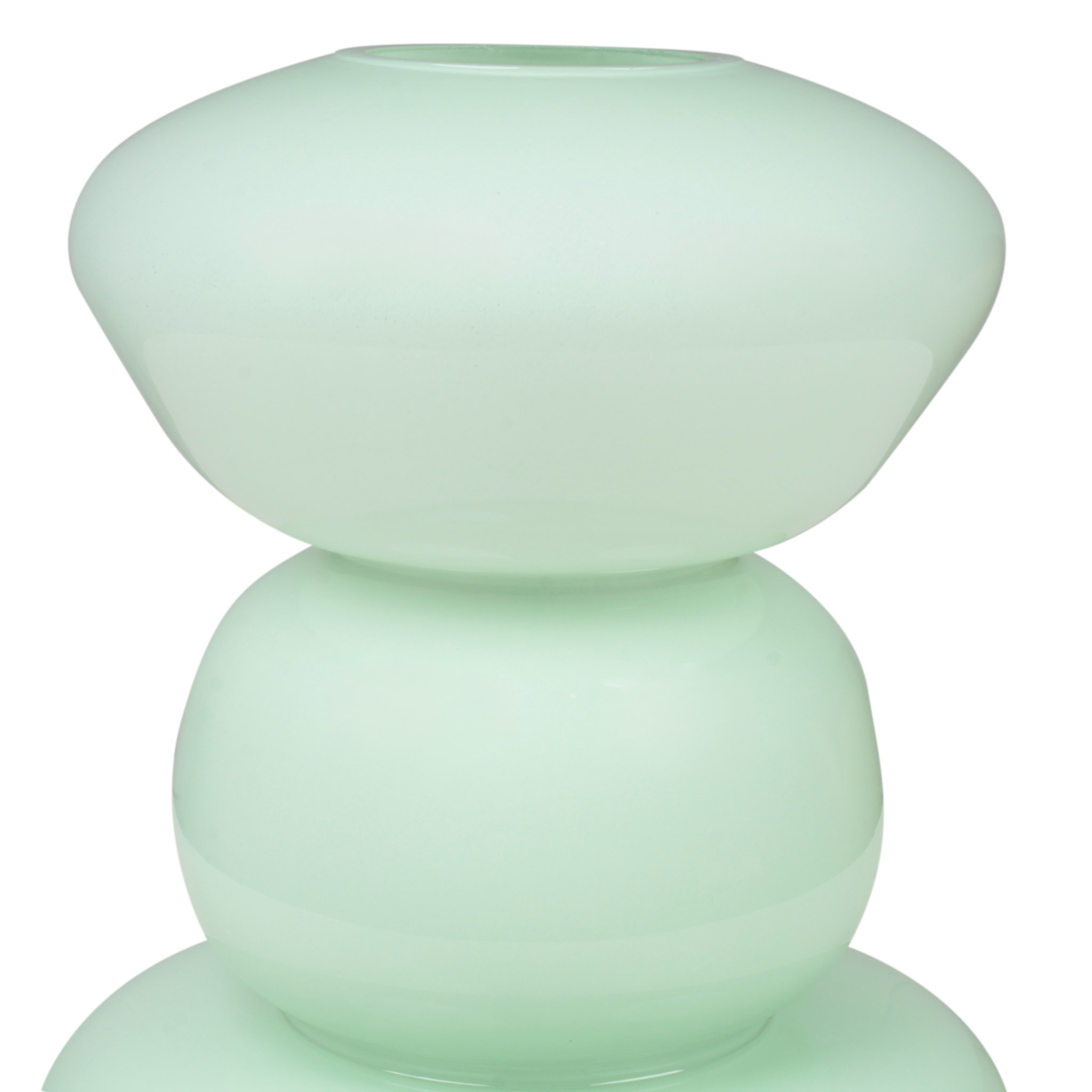 Florero de vidrio verde aqua con diseño de torre de piedras, mediano. Un diseño único y moderno que aporta un toque artístico y sofisticado a cualquier espacio.