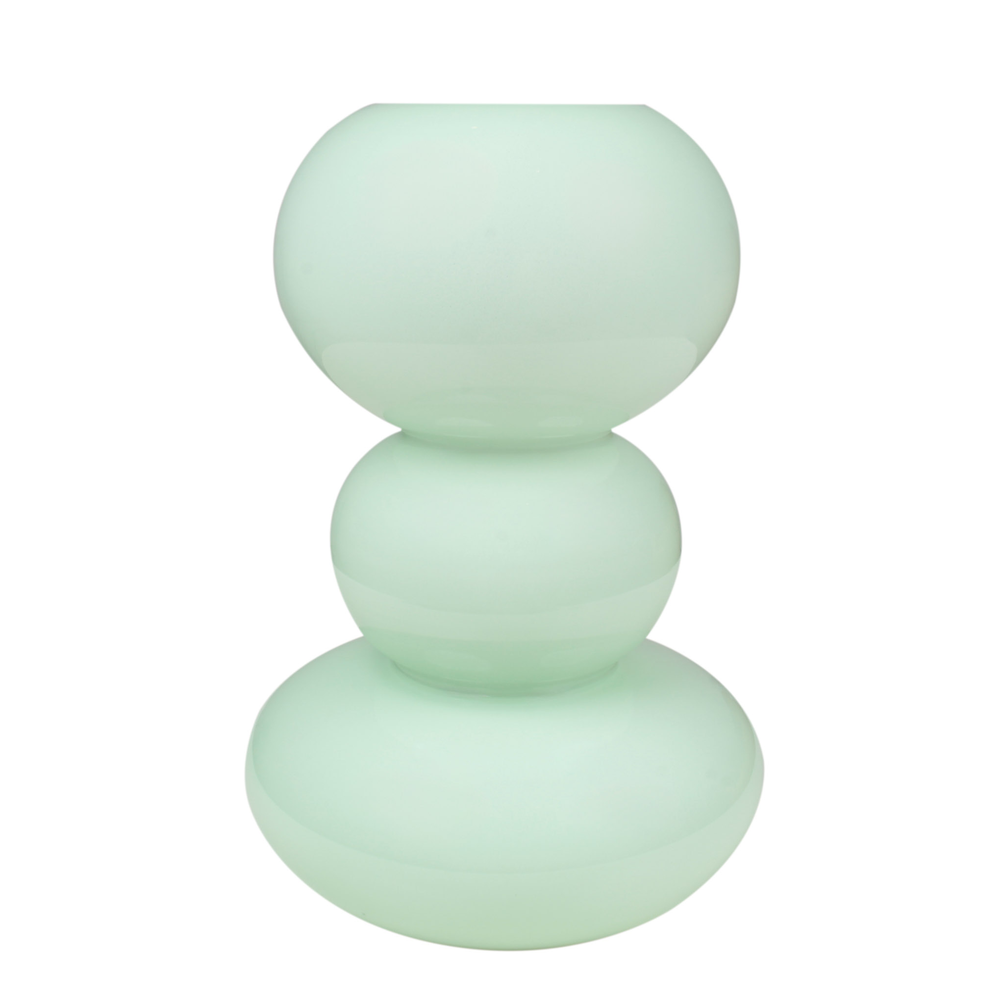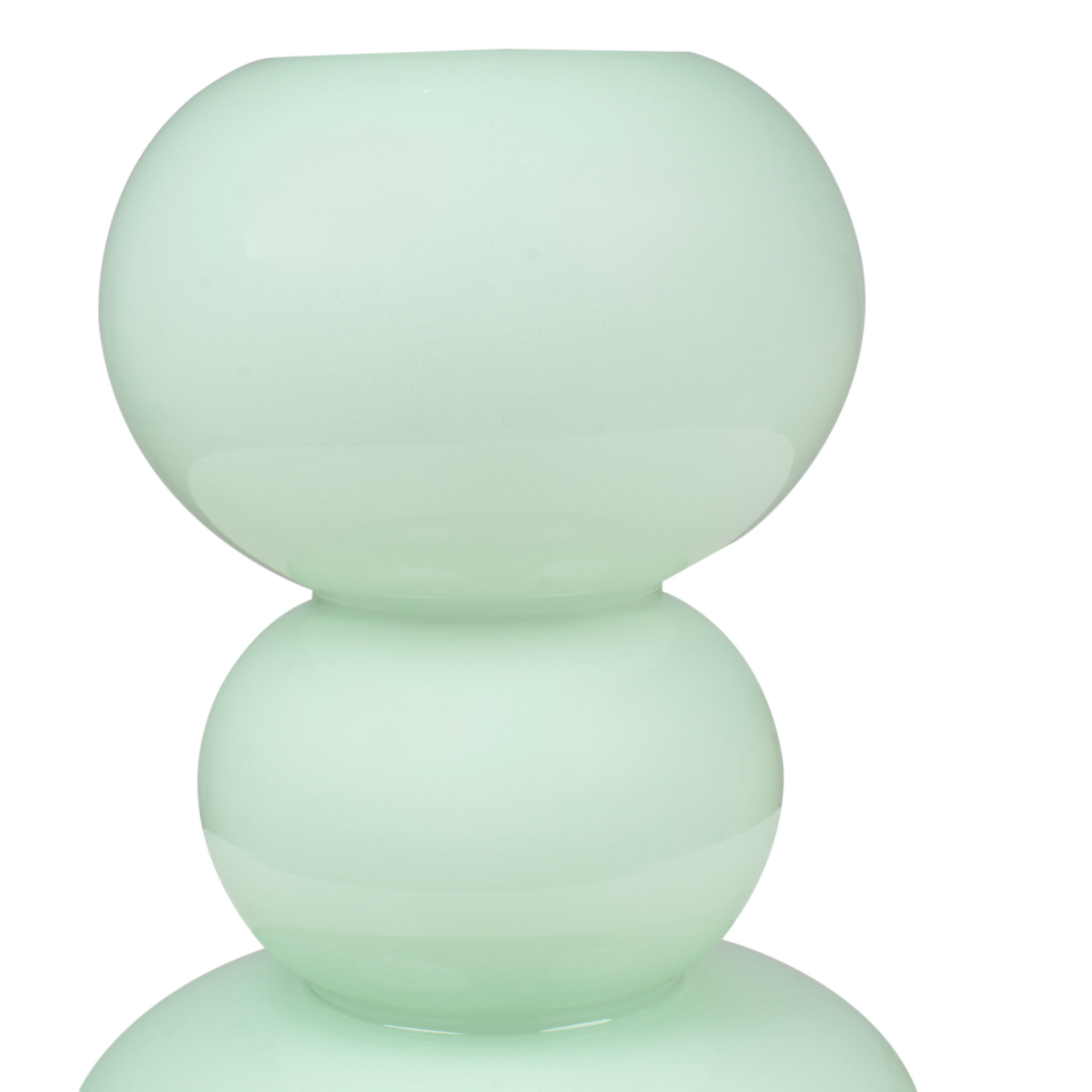 Florero de vidrio verde aqua con diseño de torre de piedras, alto. Un diseño único y moderno que aporta un toque artístico y sofisticado a cualquier espacio.