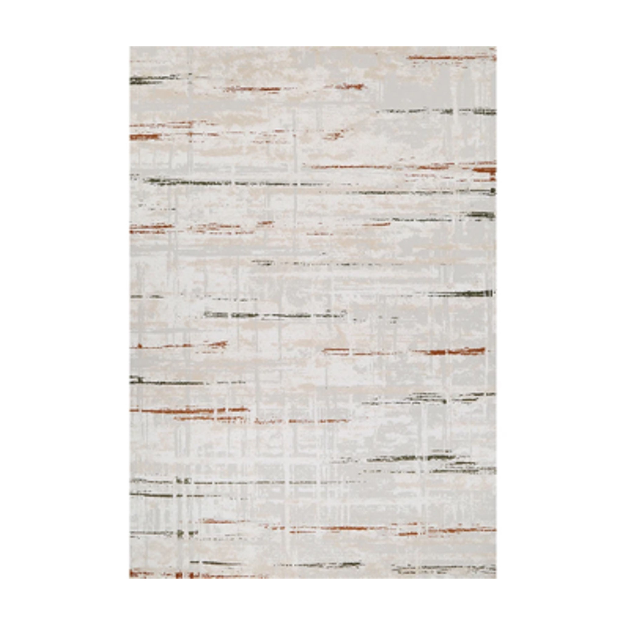 Alfombra rectangular de nylon, con diseño de rayas en tono terracota, negro y crema, 7.87 x 11.15 pies.