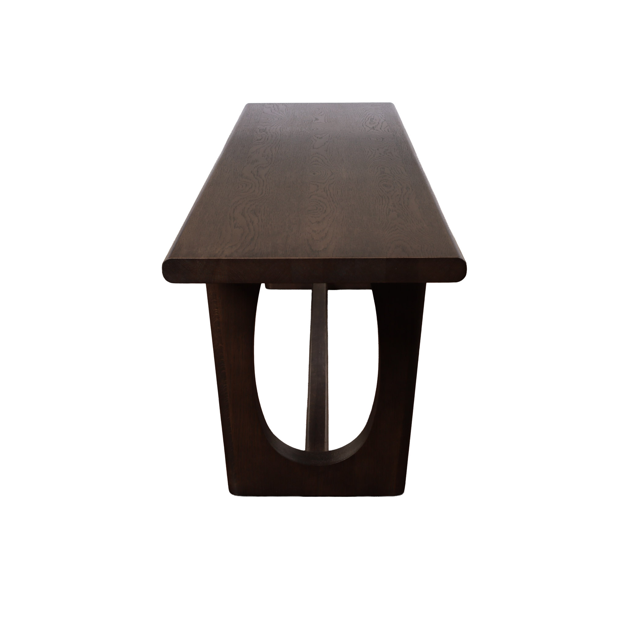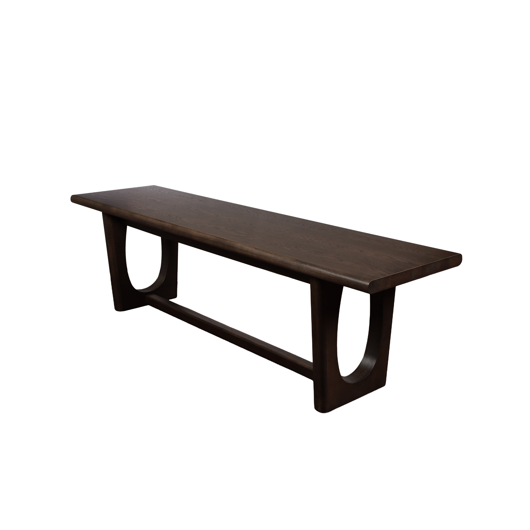 La misma practicidad con un carácter más intenso. Bench de madera roble blanco con su acabado en tono chocolate que lo convierte en un acento visual perfecto para ambientes más cálidos y sofisticados.