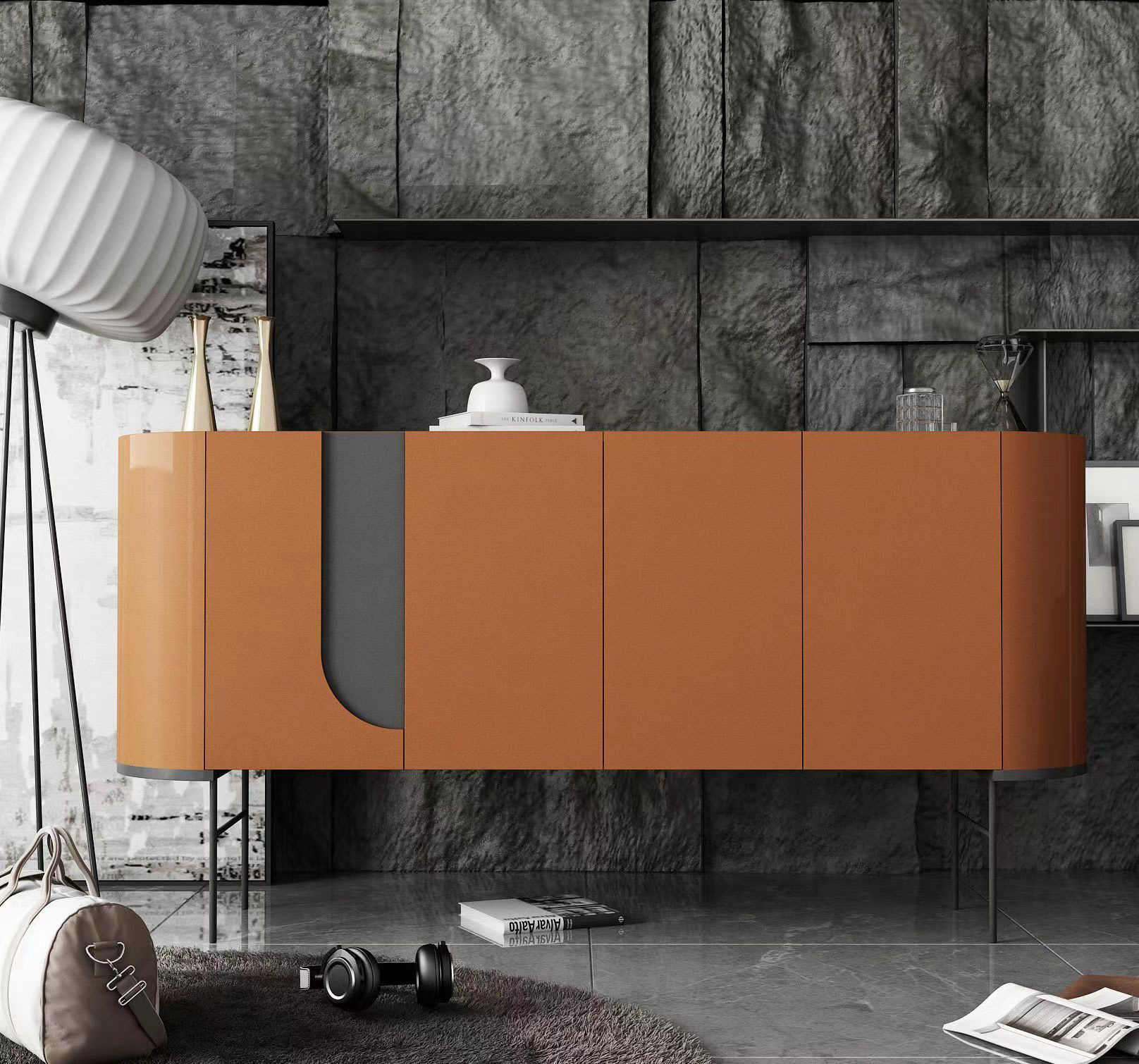 Bufetera fabricada en madera MDF y madera sólida con un sofisticado acabado en color terracota, complementada con detalles en metal negro. Este diseño moderno y funcional es ideal para cualquier comedor o sala de estar, ofreciendo amplio espacio de almacenamiento. Perfecta para añadir un toque de calidez y estilo contemporáneo a tu hogar, esta bufetera se convierte en una pieza central atractiva y práctica.