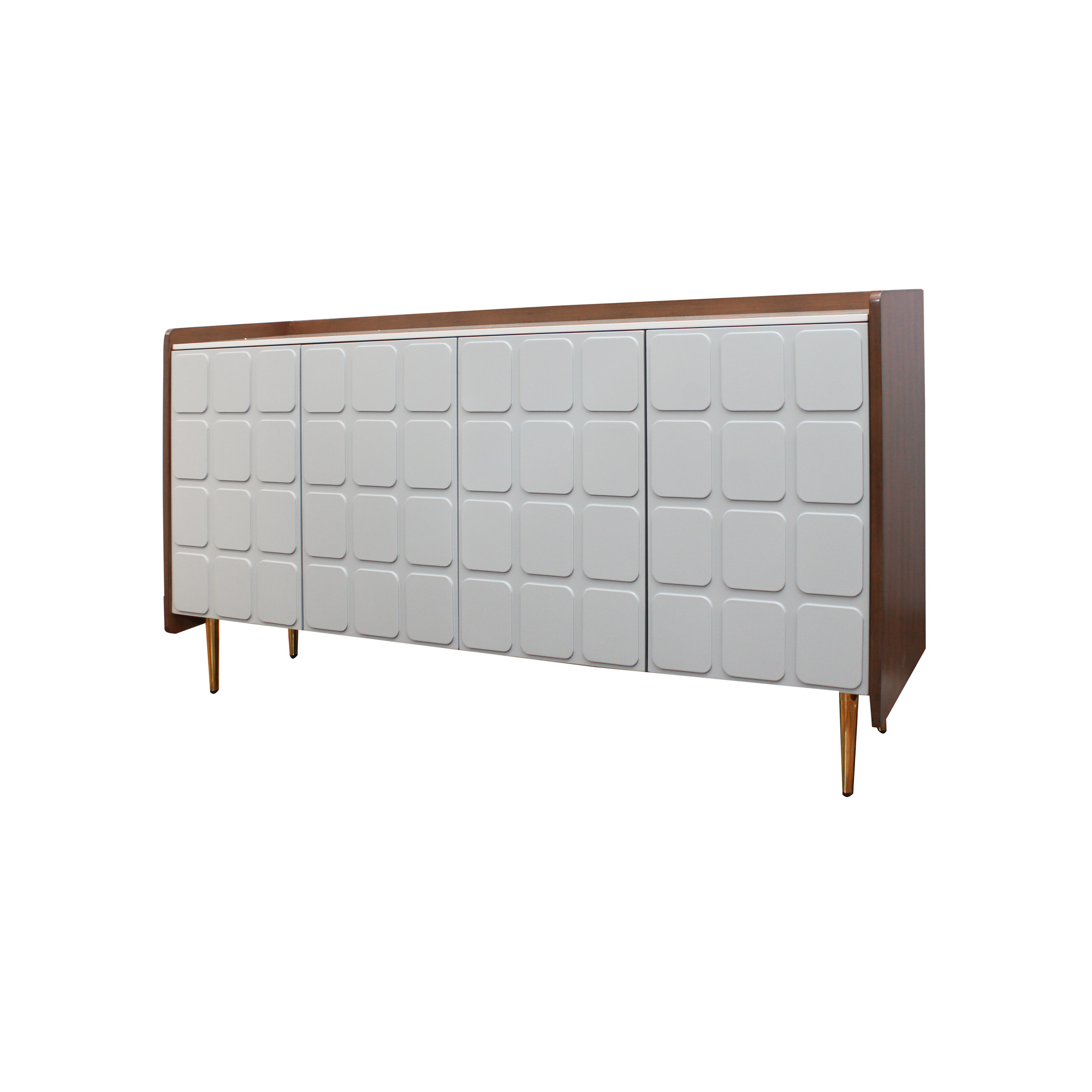 Bufetera fabricada en madera MDF con un elegante acabado en gris claro y chocolate, complementada con un sofisticado sobre de piedra crema claro y robustas patas de metal. Este diseño moderno y funcional es ideal para cualquier comedor o sala de estar, ofreciendo amplio espacio de almacenamiento y un toque de estilo contemporáneo. Perfecta para añadir un toque de elegancia y sofisticación a tu hogar.