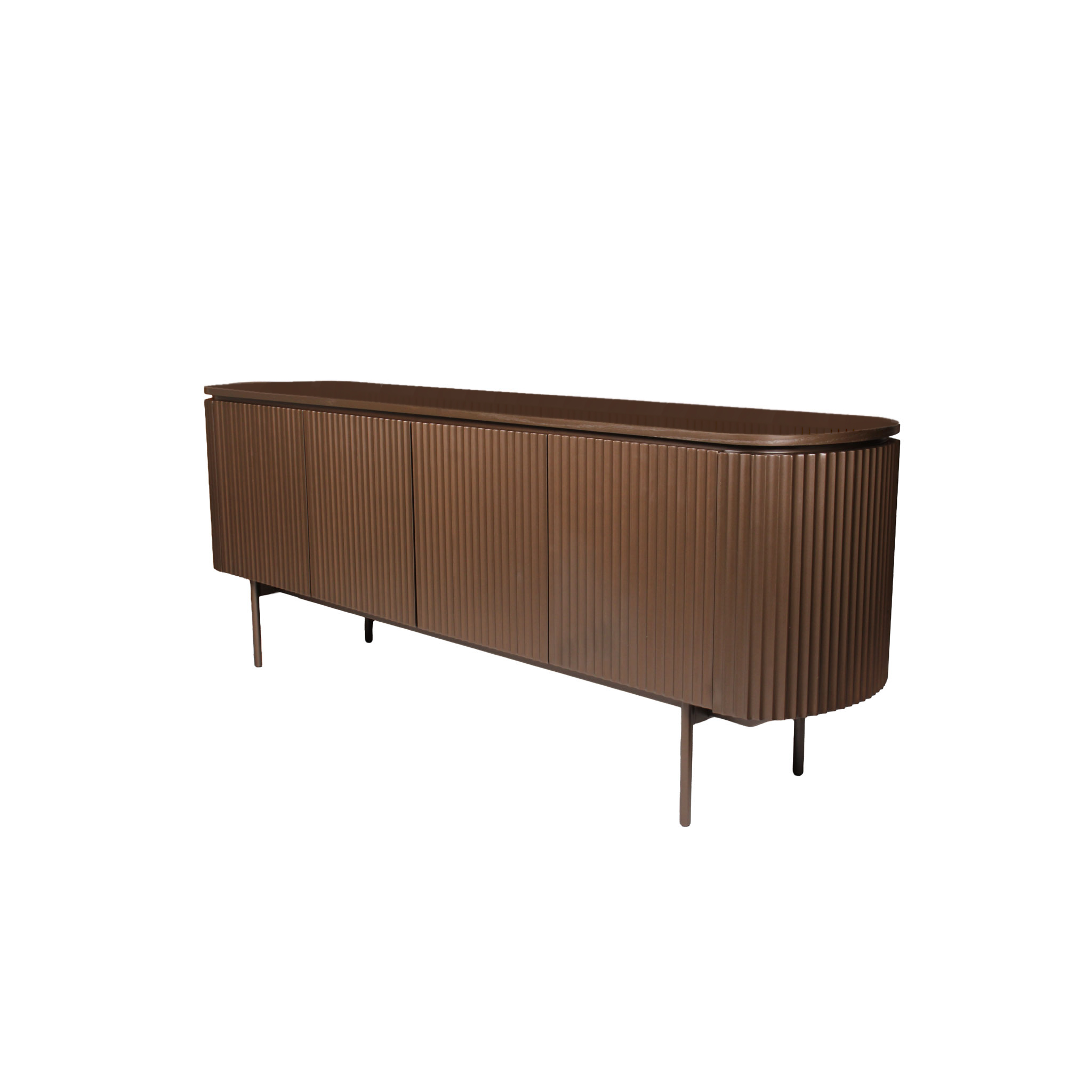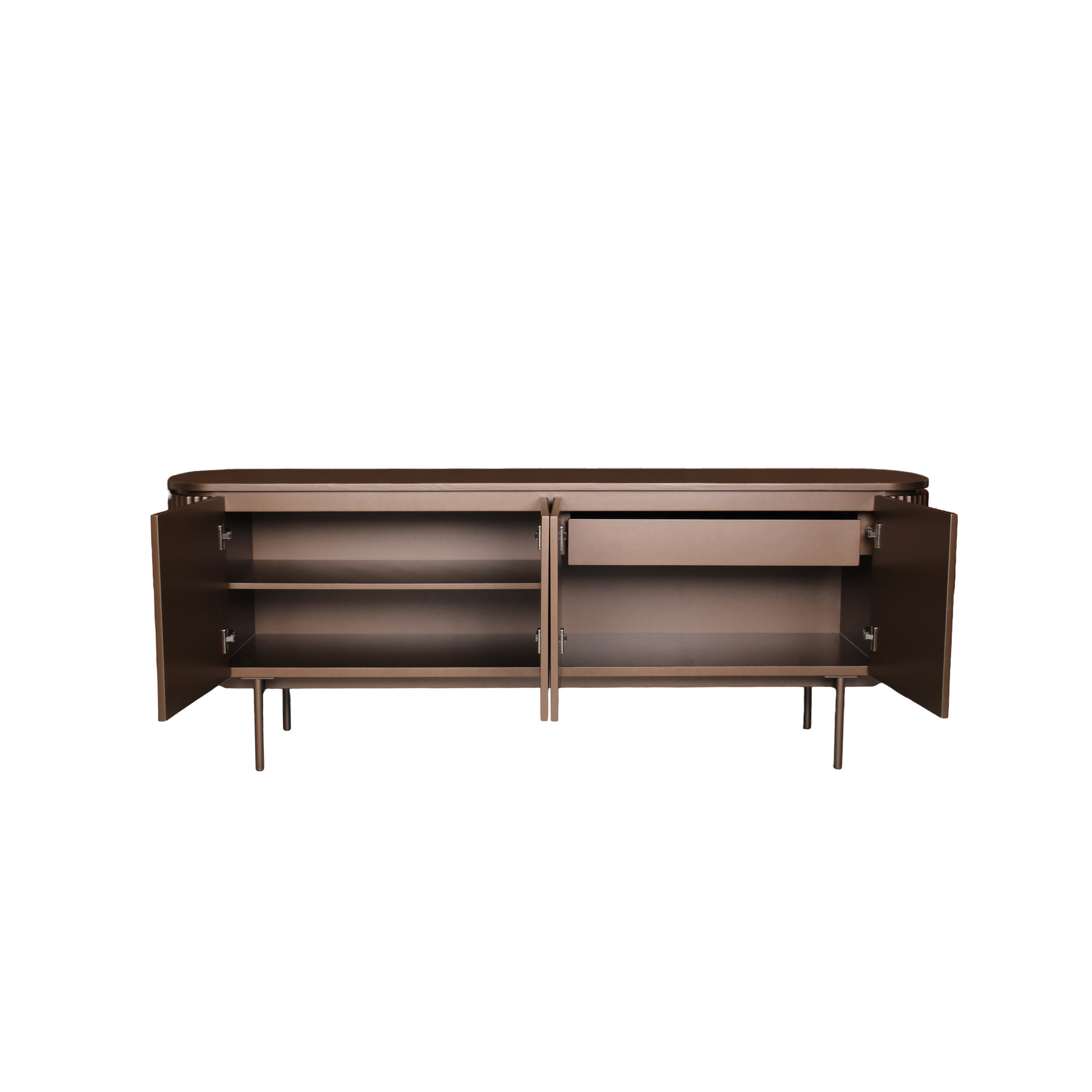Diseño monocromático con carácter profundo. La bufetera Michigan en esta versión combina madera y estructura metálica en tono chocolate, creando una pieza elegante, sobria y envolvente. El acabado oscuro le da presencia visual sin ser estridente, ideal para espacios contemporáneos, masculinos o con paletas neutras profundas. Funcional y sofisticada, es perfecta como complemento de comedores, livings o espacios de transición con diseño definido.