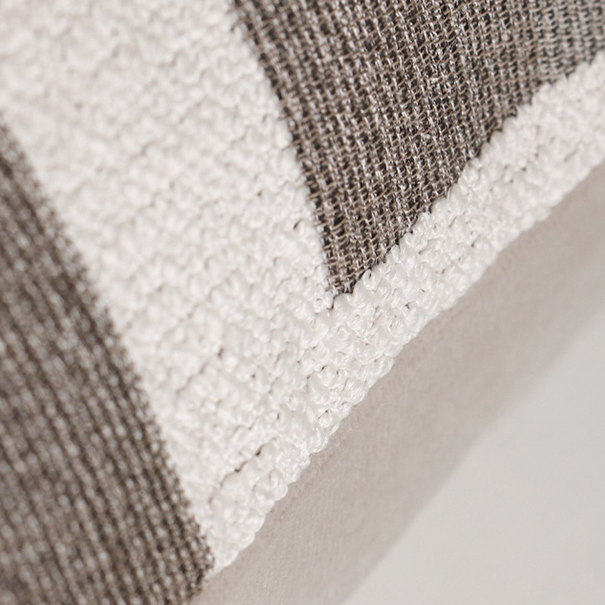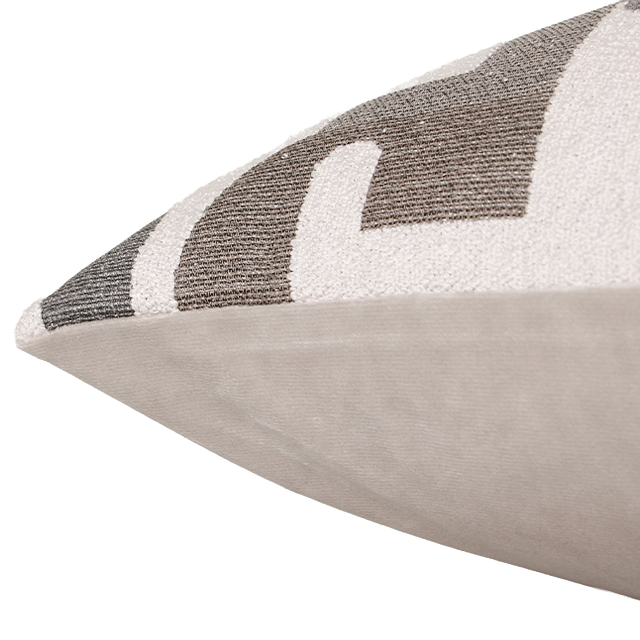 Un cojín de tela gris con un diseño moderno y sofisticado. Su estilo versátil añade un toque de elegancia y armonía, perfecto para complementar cualquier espacio contemporáneo.