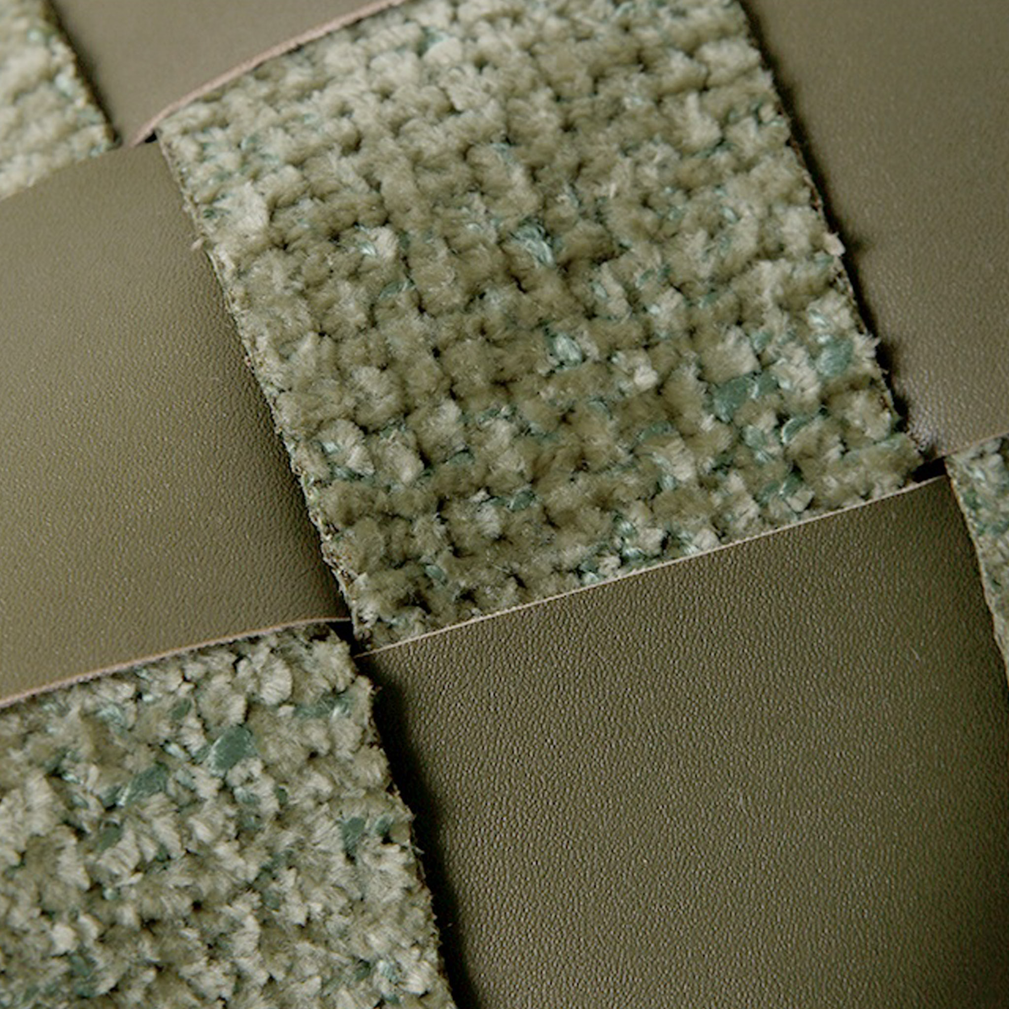 Un cojín moderno y dinámico, tapizado en tela verde con un diseño de checkers en tonos verdes. Su patrón sutil aporta textura y estilo, ideal para añadir un toque fresco y sofisticado a cualquier espacio.