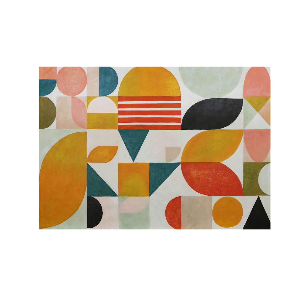 Revitaliza tu decoración con este vibrante cuadro horizontal de óleo multicolor. El marco negro enmarca el diseño colorido con elegancia, acentuando la intensidad y el dinamismo del óleo. Perfecto para añadir un toque audaz y contemporáneo a tu espacio.