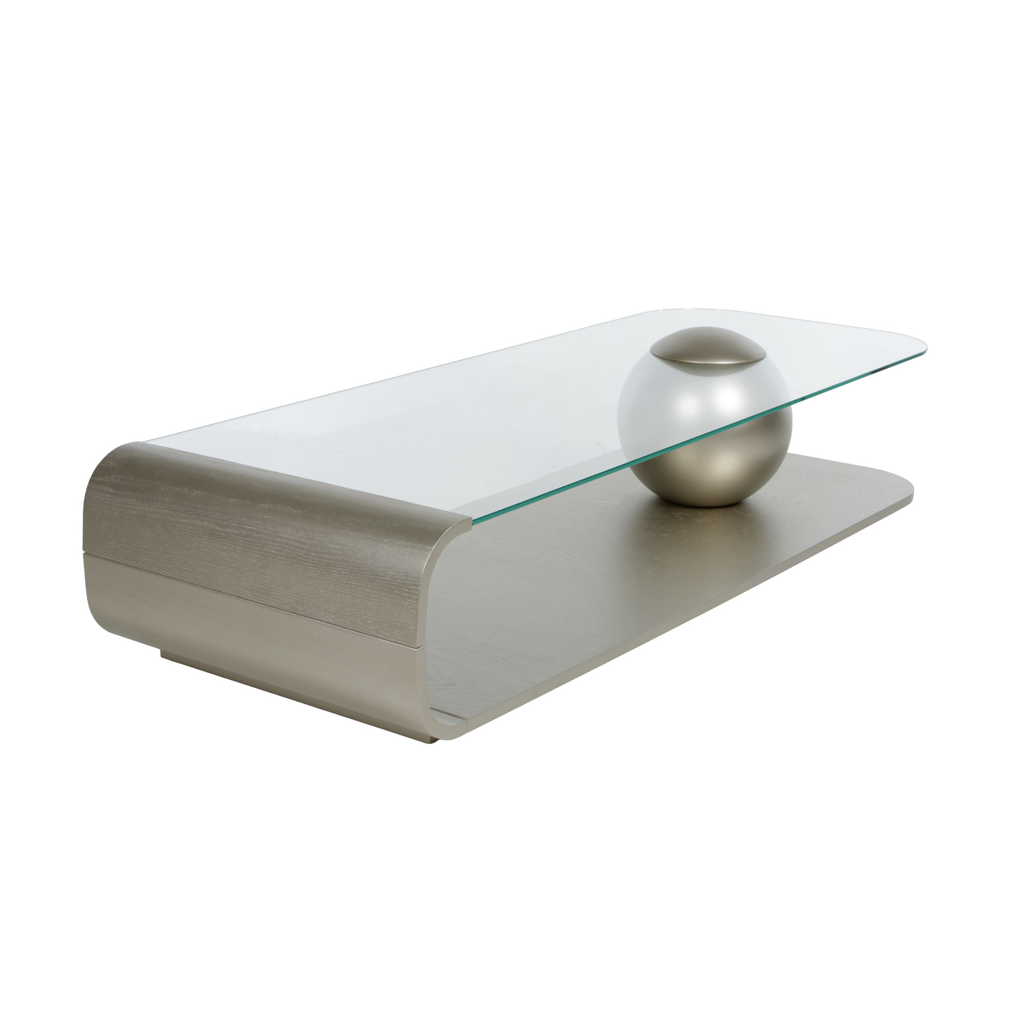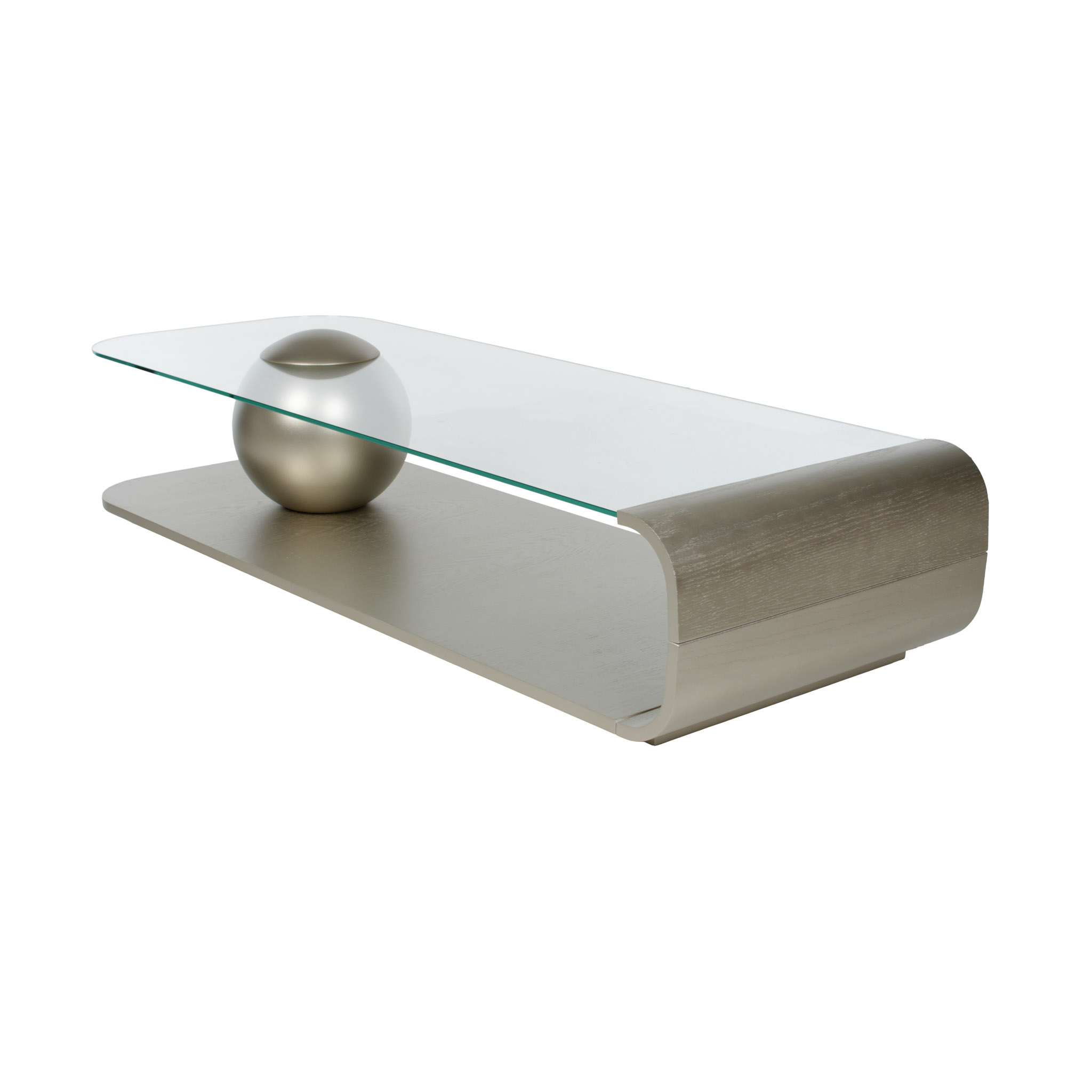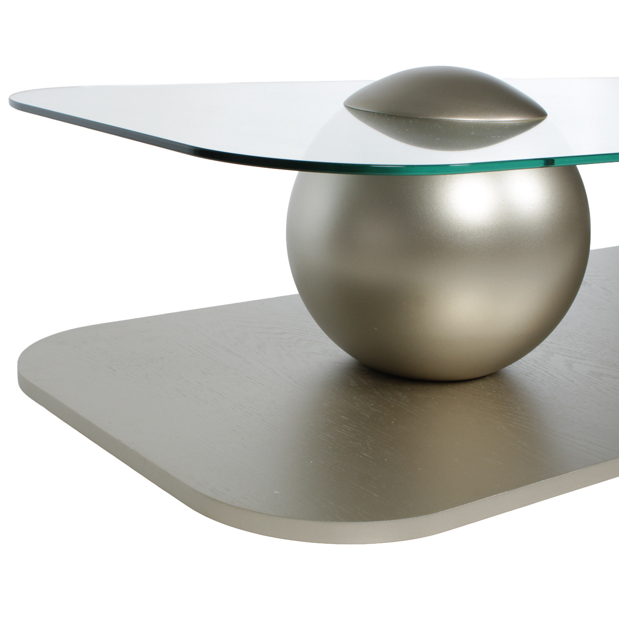 Diseño moderno y refinado. La base de roble con acabado champaña metalizado transforma esta mesa en una pieza focal sofisticada. El sobre de vidrio aporta ligereza visual, perfecta para ambientes con decoración elegante y aireada.