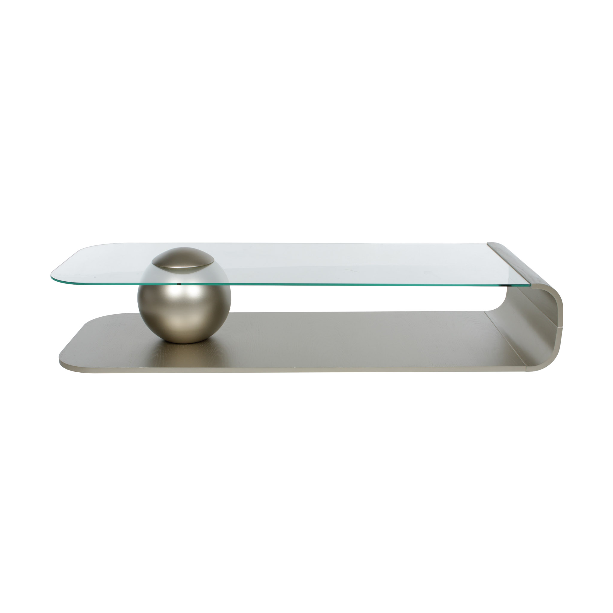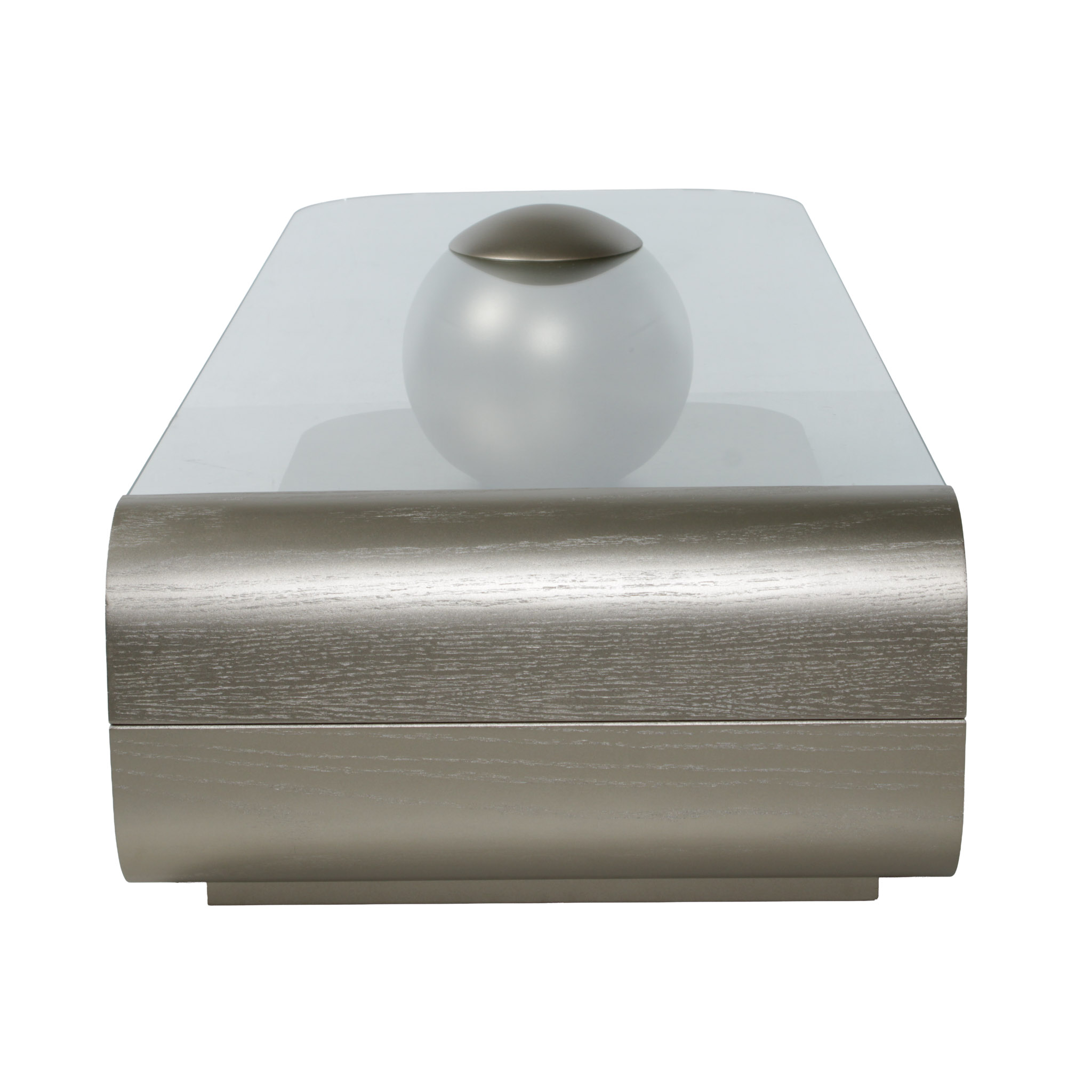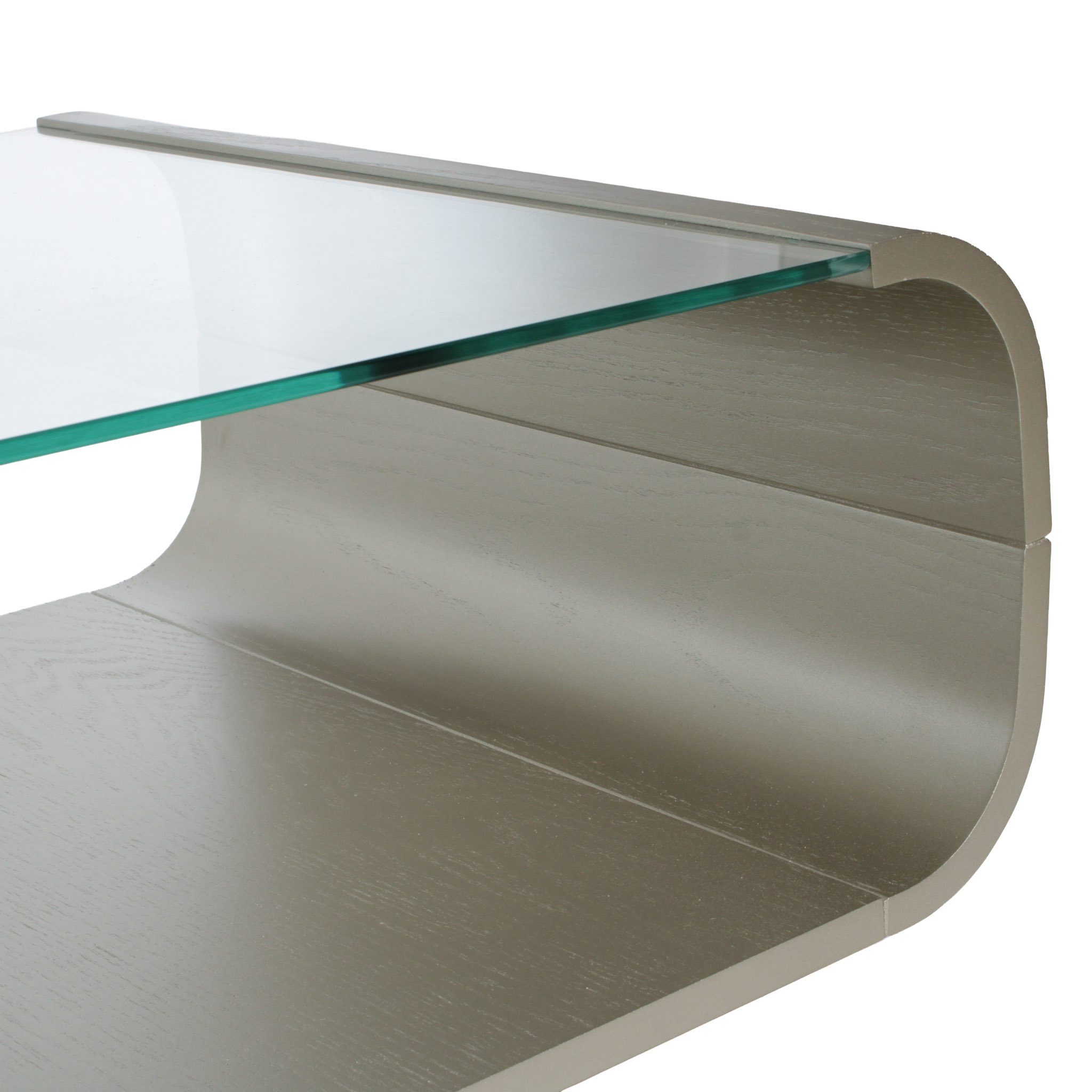 Diseño moderno y refinado. La base de roble con acabado champaña metalizado transforma esta mesa en una pieza focal sofisticada. El sobre de vidrio aporta ligereza visual, perfecta para ambientes con decoración elegante y aireada.
