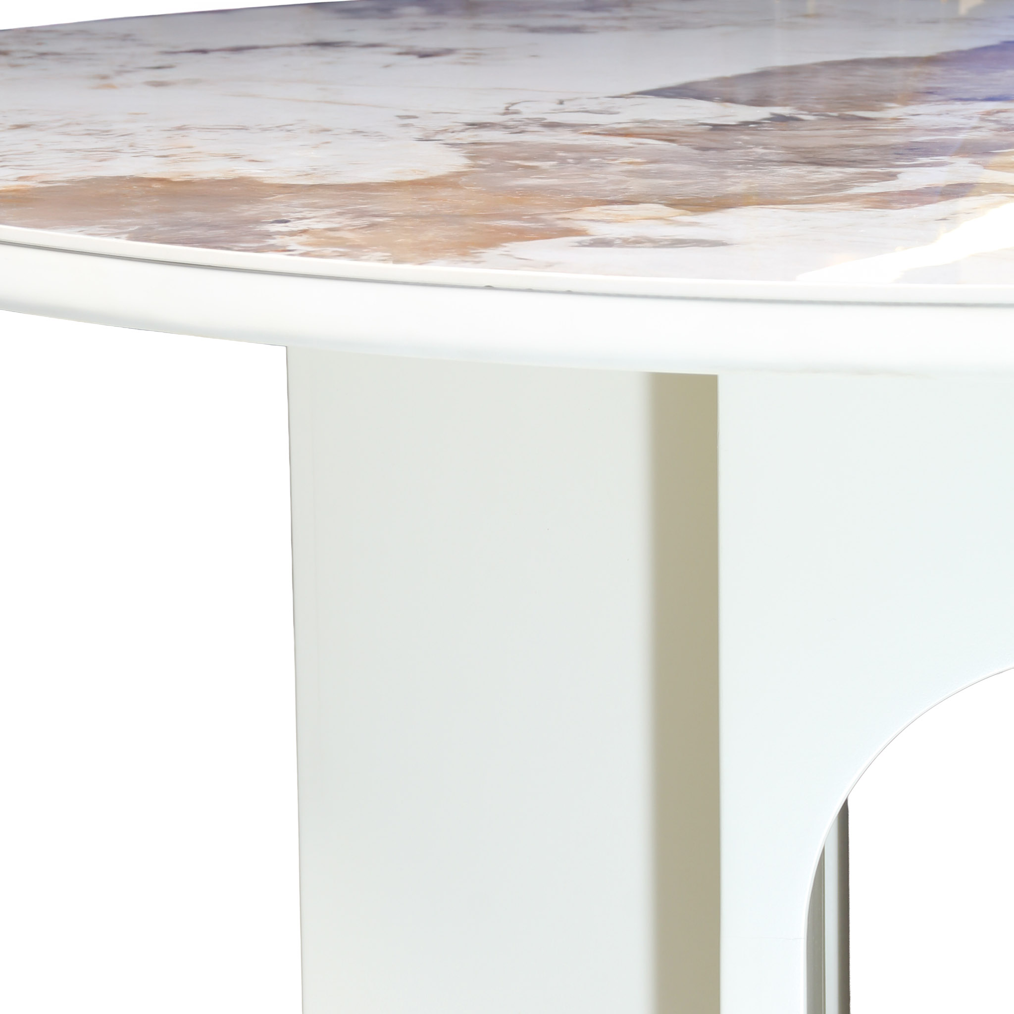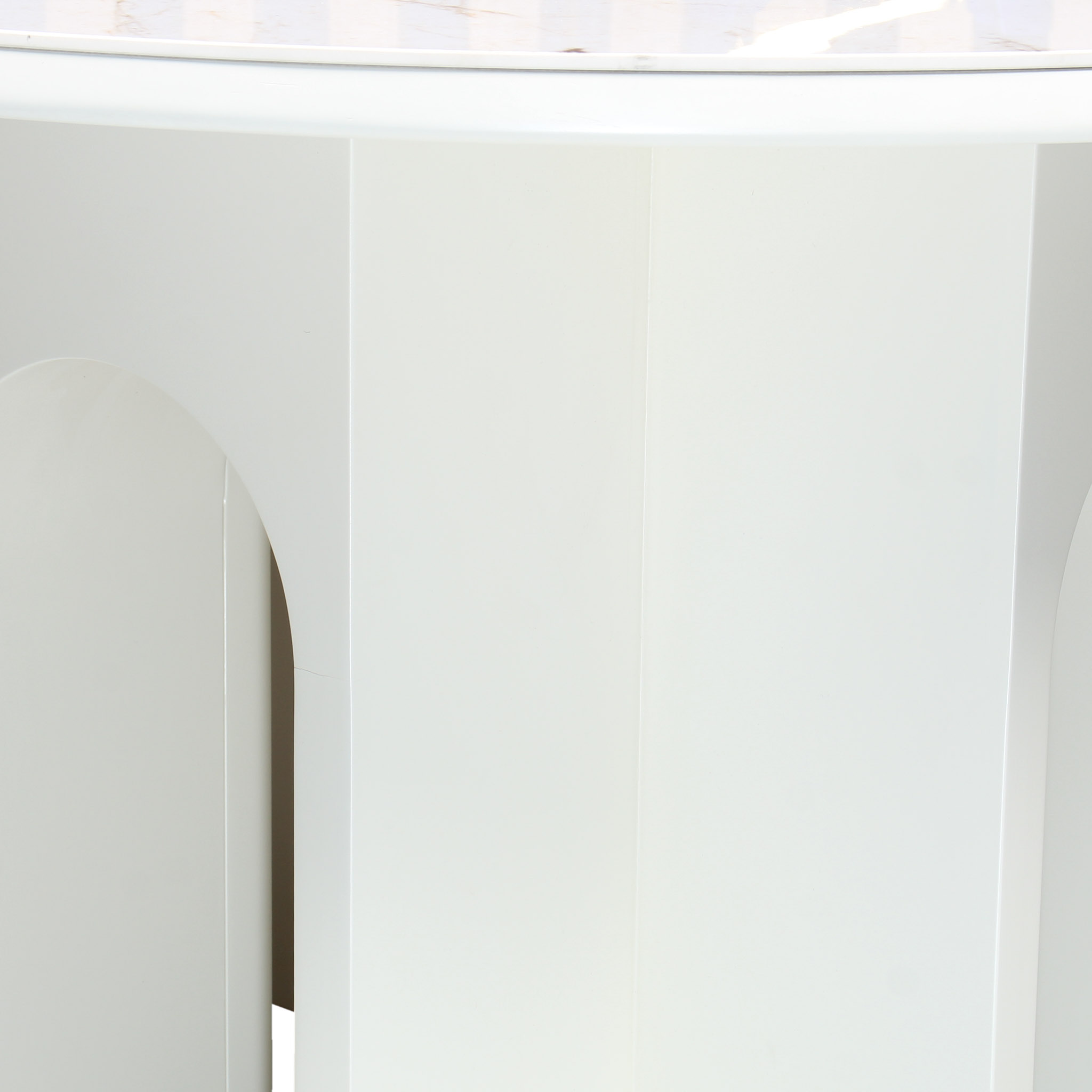 La Mesa de Comedor redonda Geena ofrece un diseño moderno y elegante. Su sobre de piedra sinterizada blanca le da un toque luminoso y sofisticado, mientras que la base de madera MDF asegura una estructura estable y robusta. Esta mesa es ideal para espacios contemporáneos que buscan un mobiliario elegante y funcional.