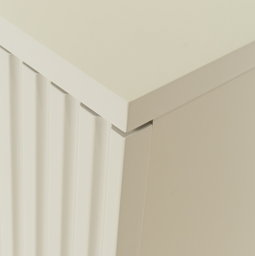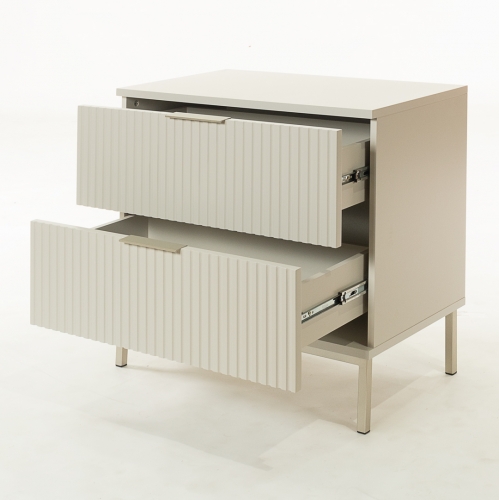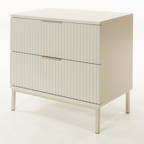 Esta mesa de noche combina el encanto del off white con patas de metal en tono champán. El cajón ofrece espacio para guardar objetos personales, y su diseño sofisticado se adapta a diferentes estilos decorativos.
