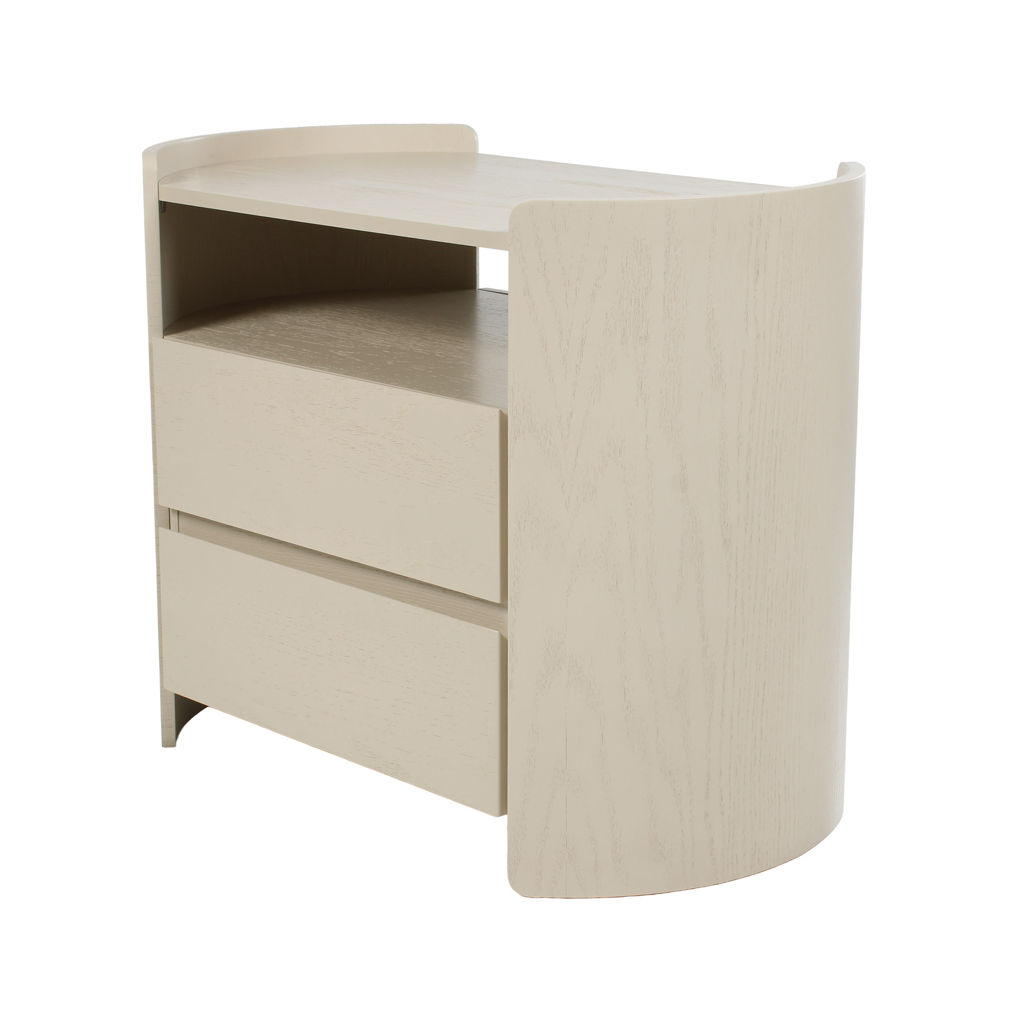 Una opción sobria y sofisticada con doble capacidad de almacenamiento. El acabado carvalho marfil aporta claridad visual al espacio, mientras las dos gavetas amplias ofrecen funcionalidad sin perder el encanto moderno.