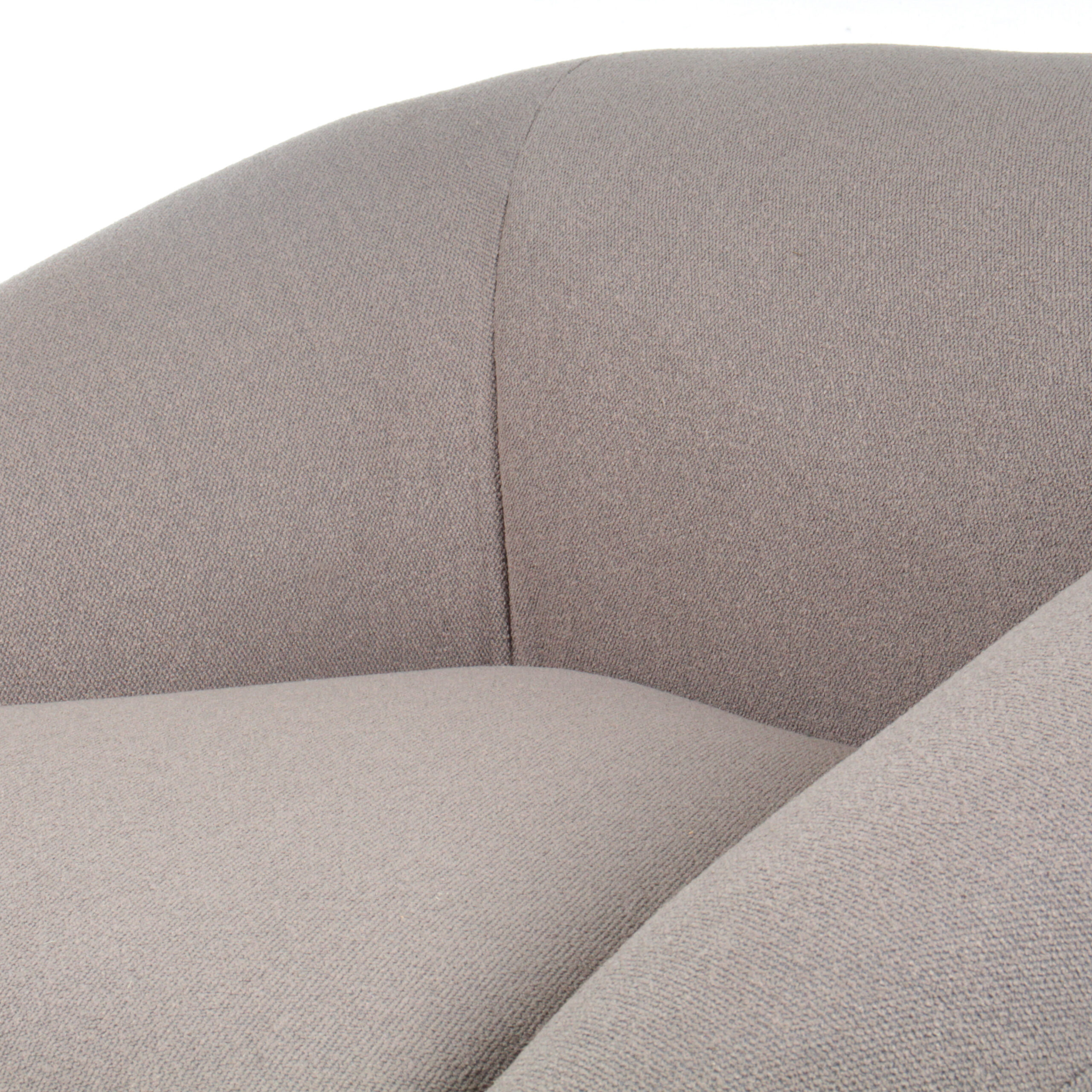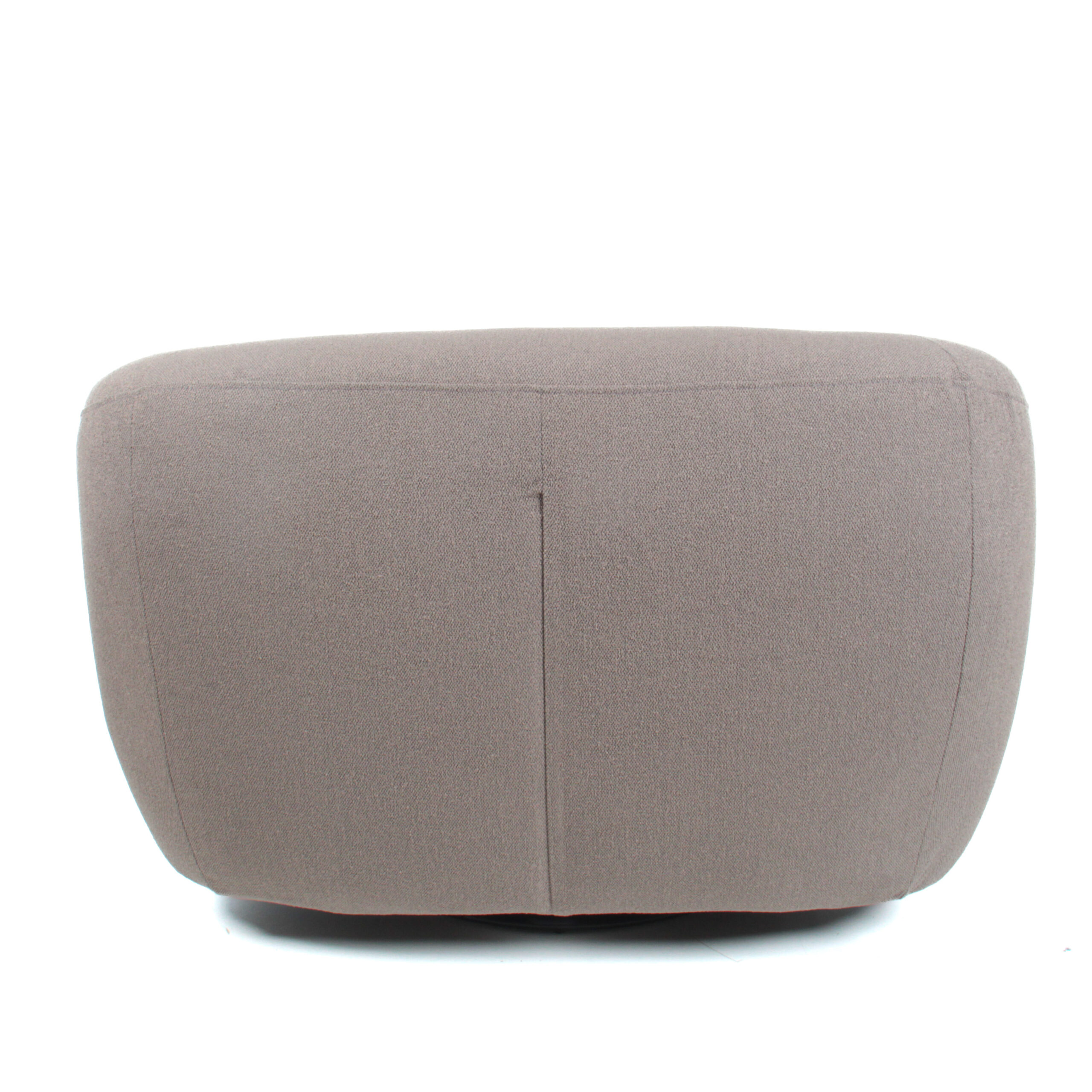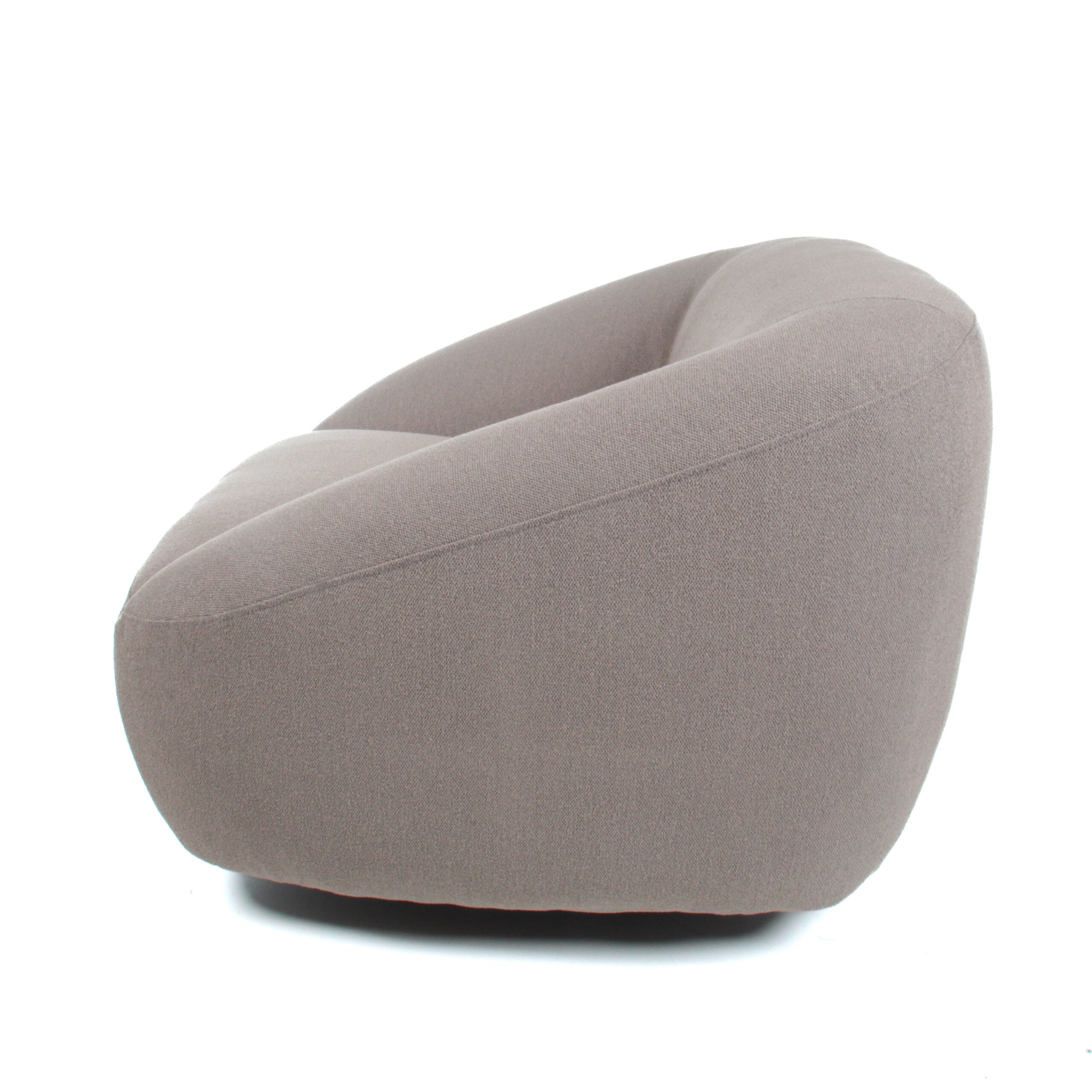 Poltrona de tela con base giratoria de metal, con un diseño robusto y cómodo. Su forma acogedora y moderna la convierte en una pieza ideal para cualquier espacio que busque confort y estilo.