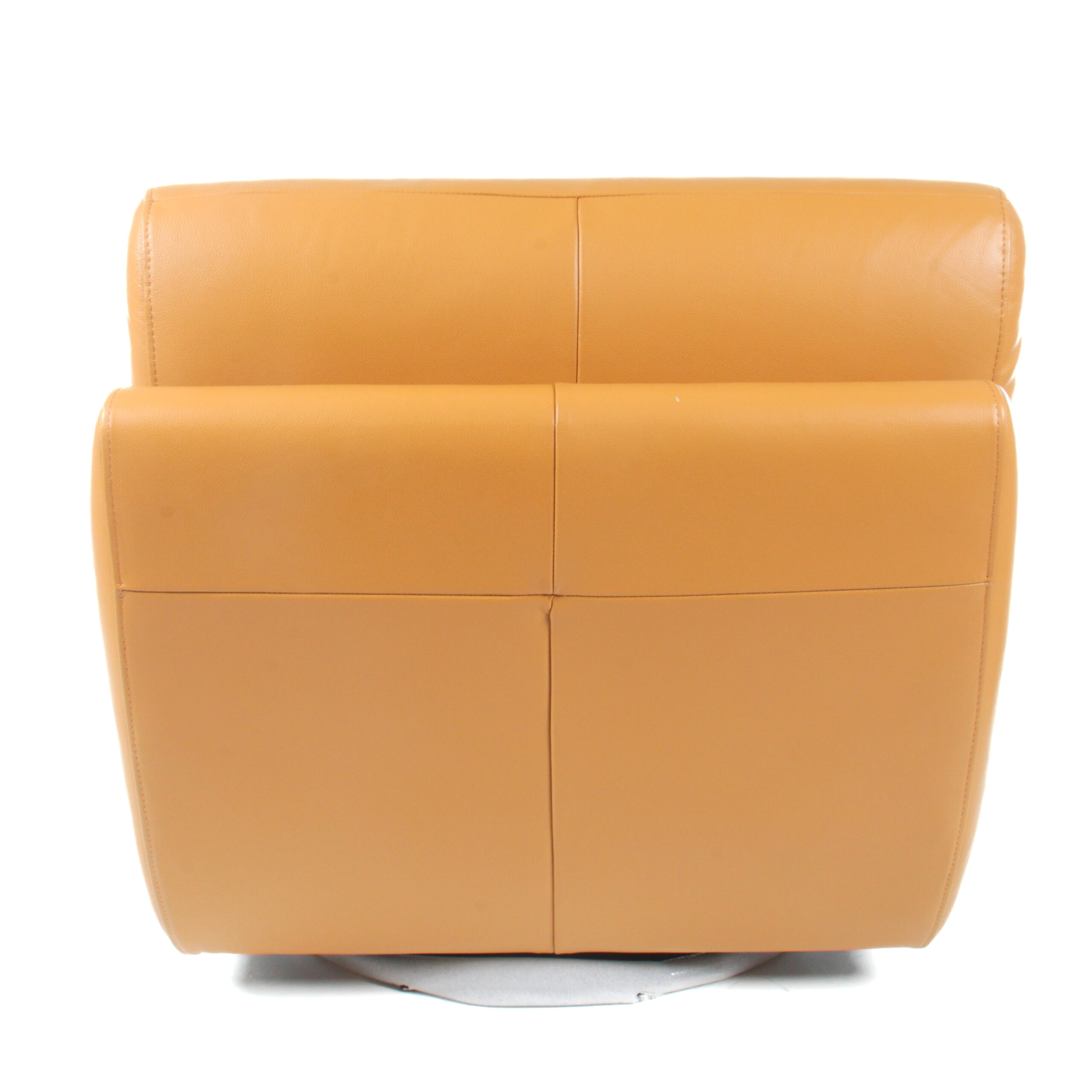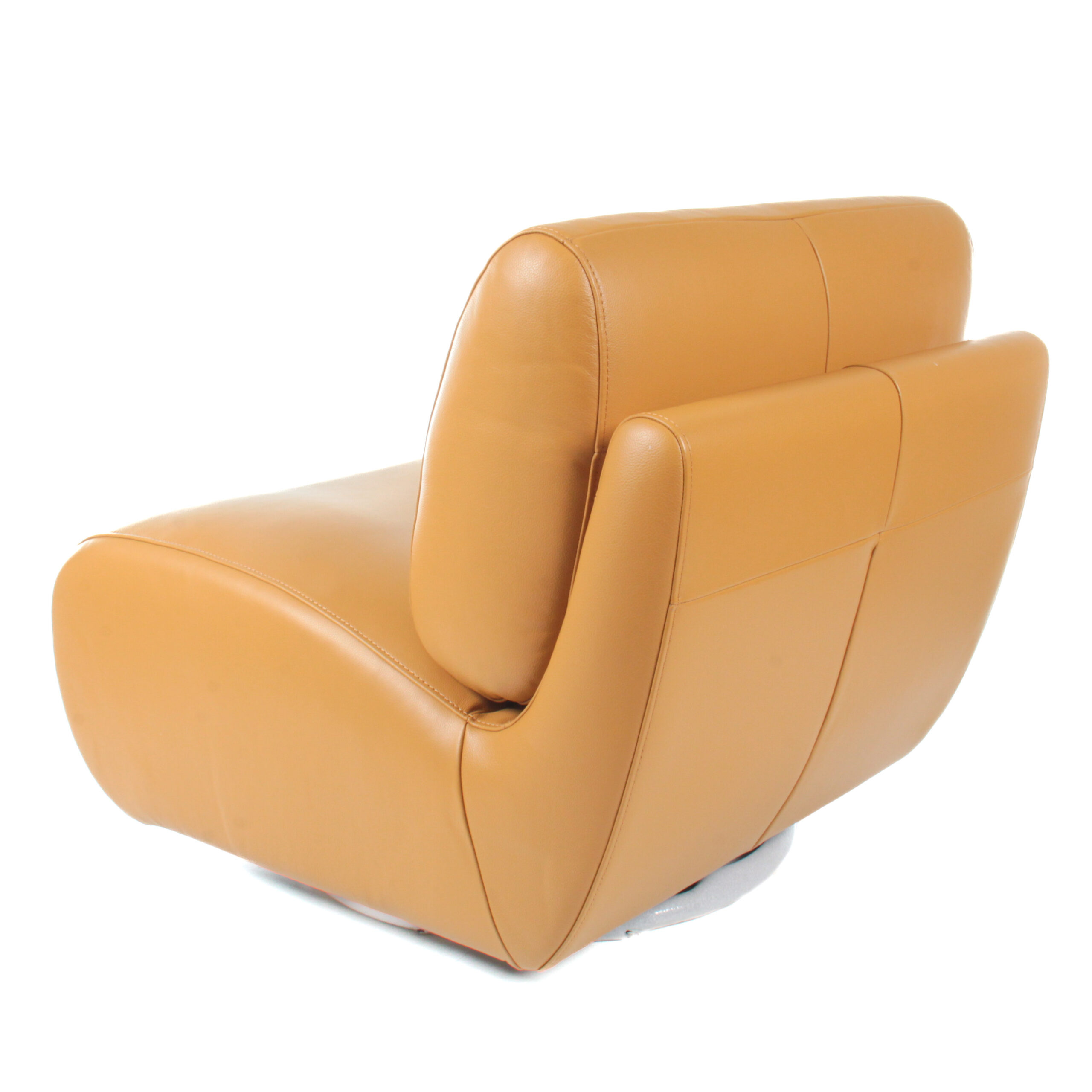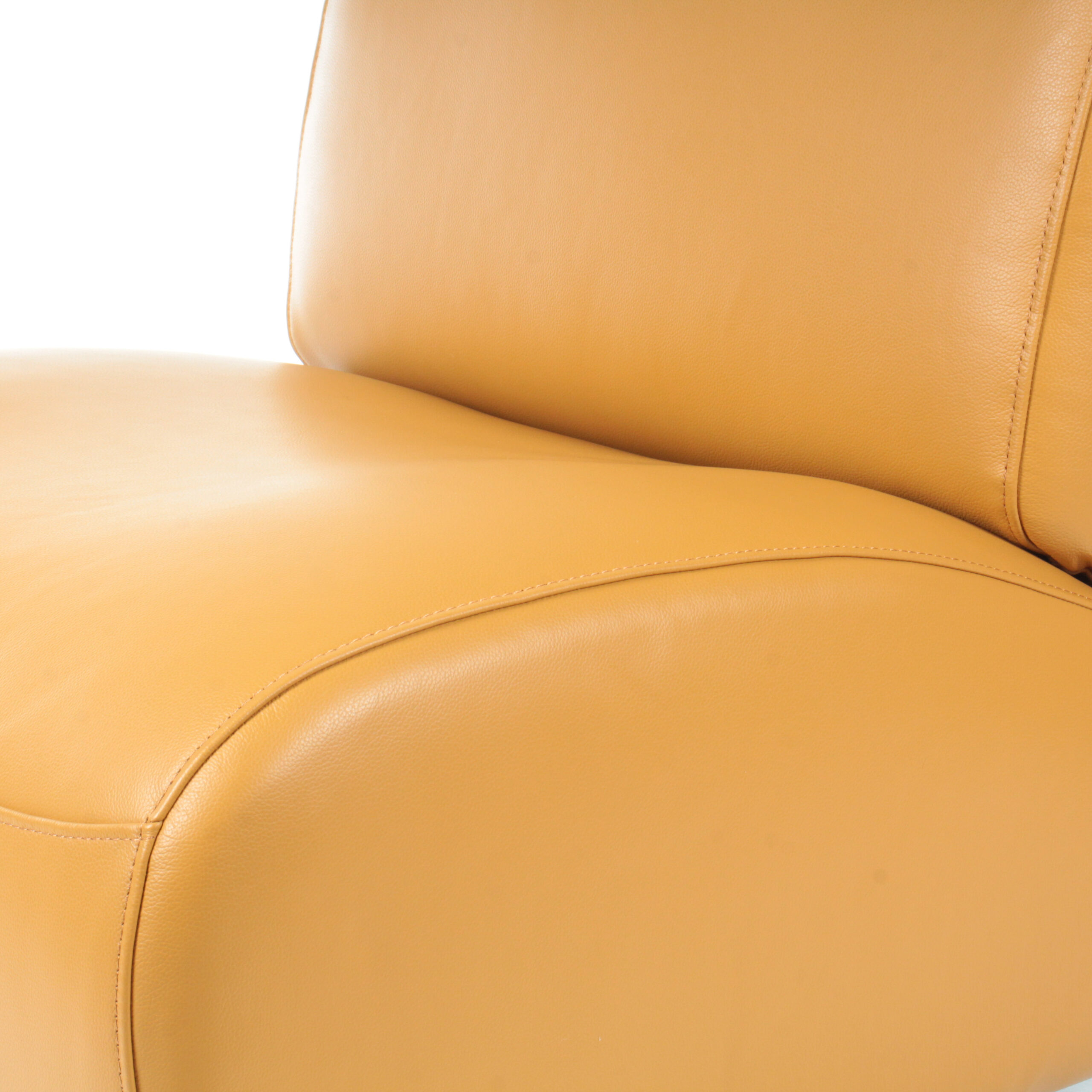 Poltrona giratoria de cuero con tapiz en color dorado. Su diseño elegante y moderno combina funcionalidad y estilo, ideal para añadir un toque sofisticado a cualquier ambiente.
