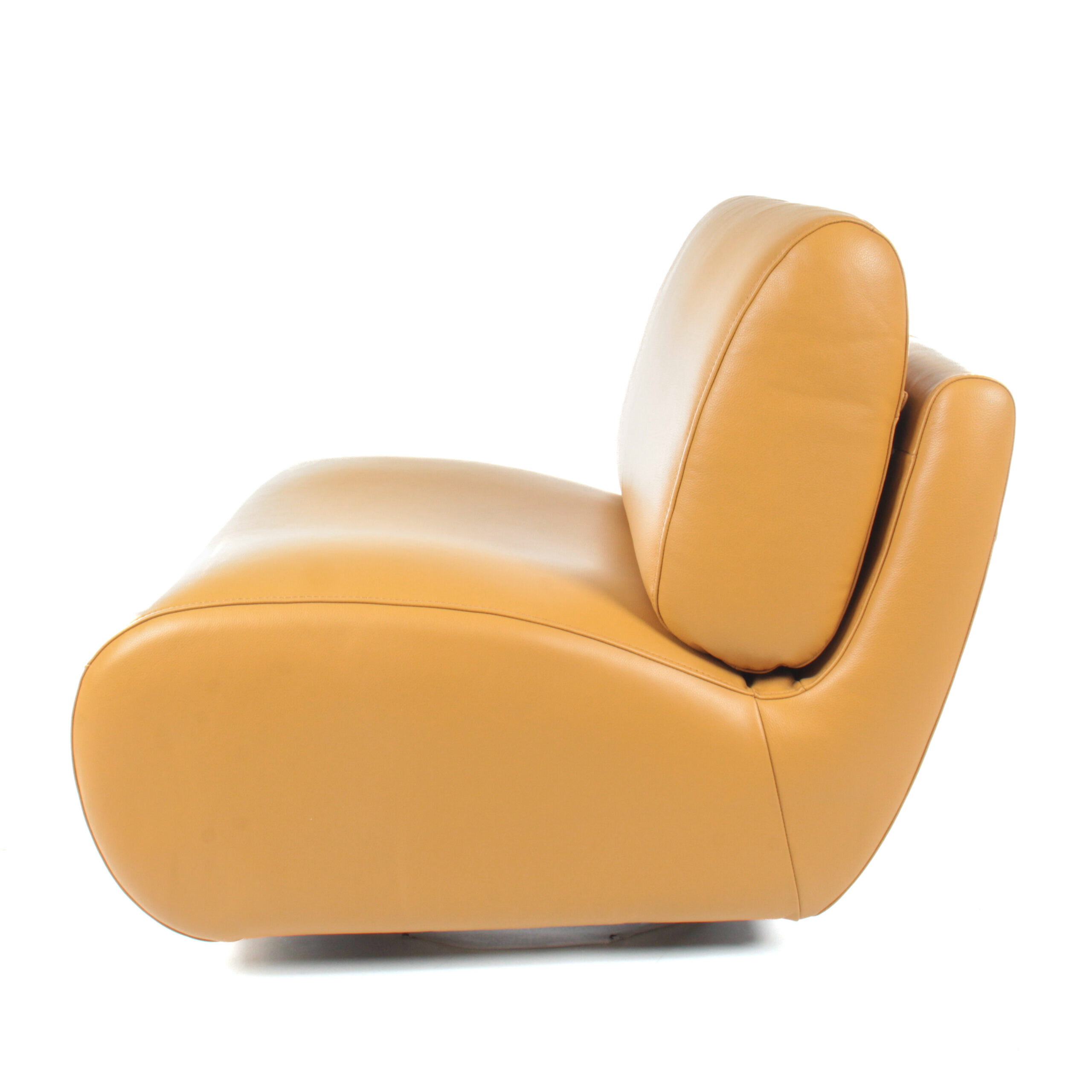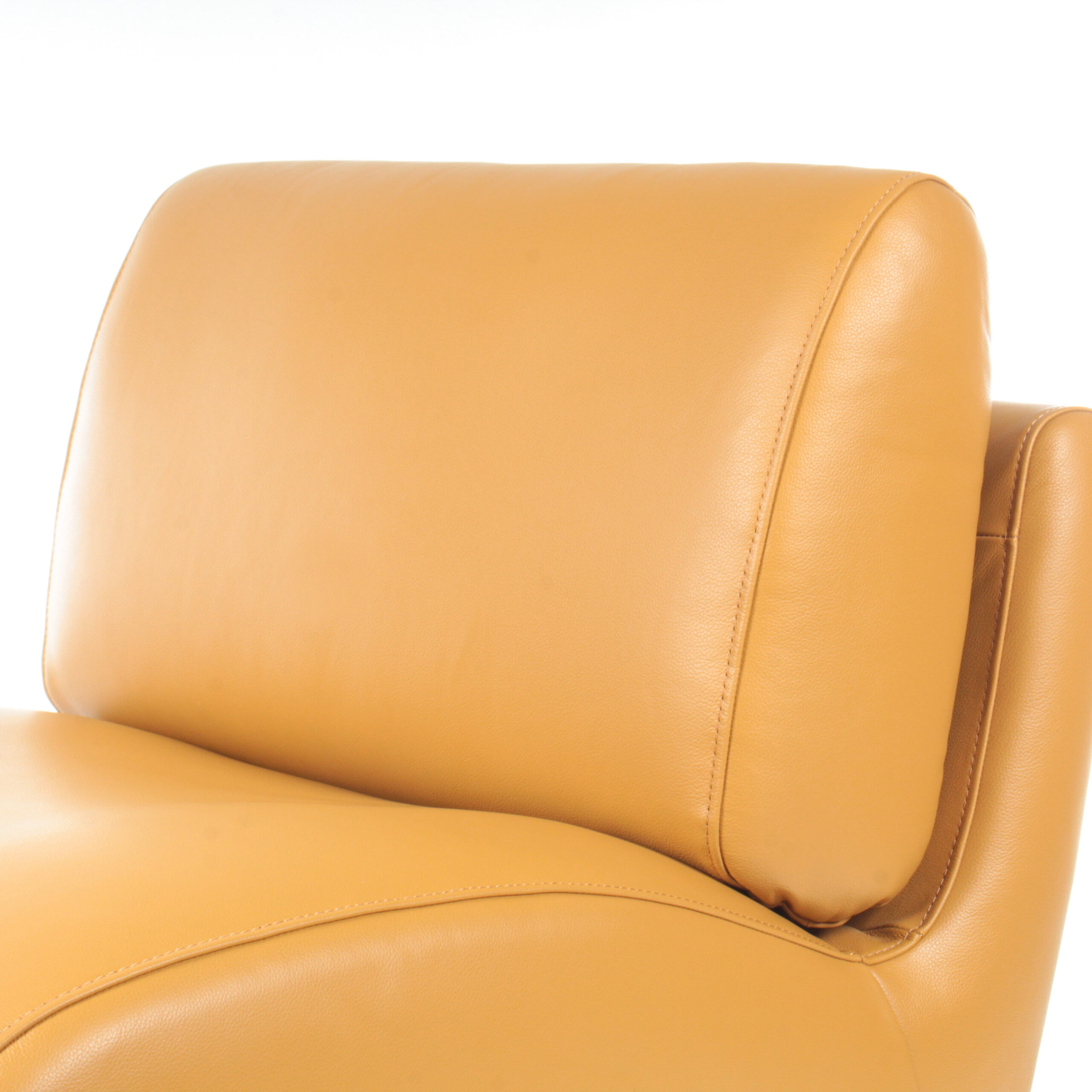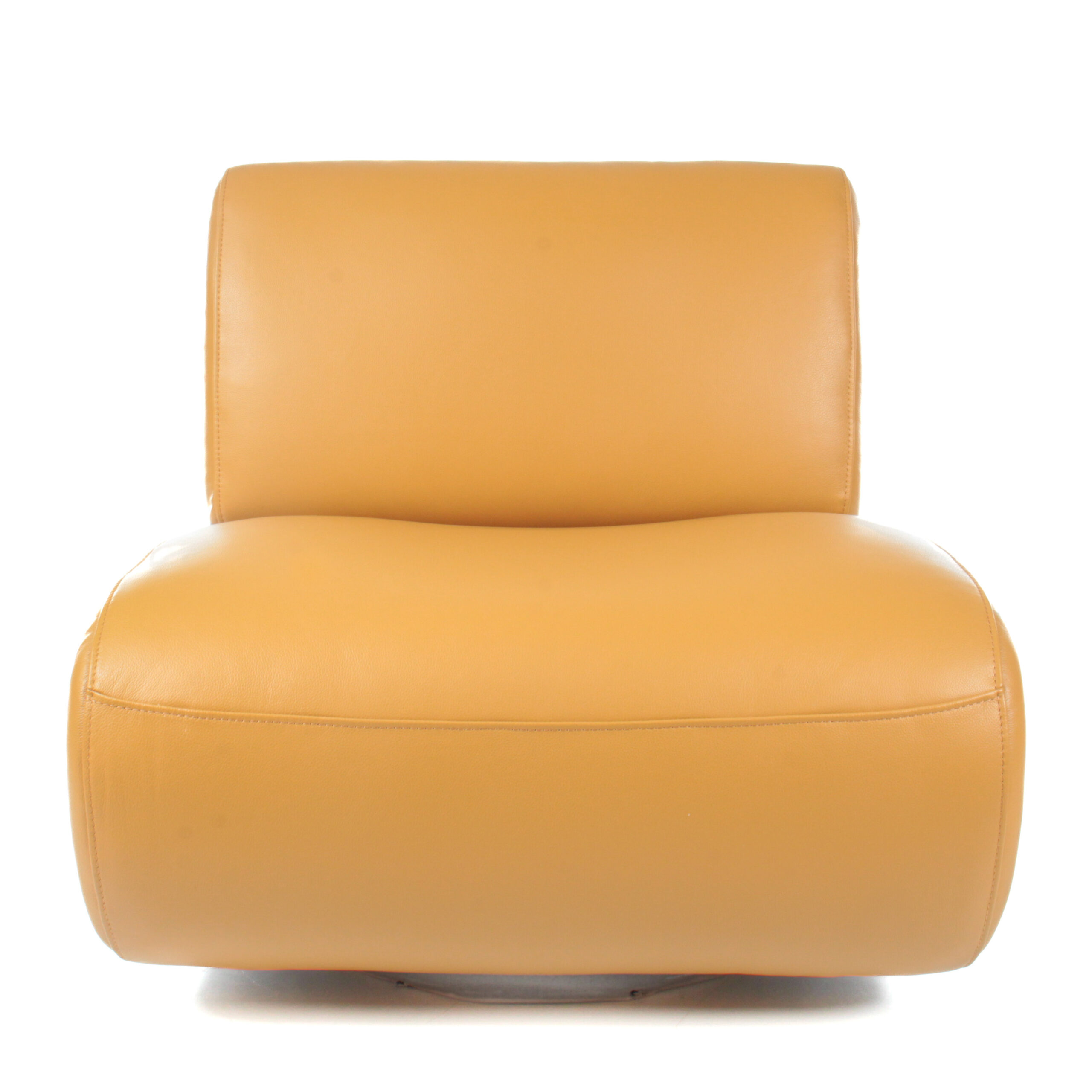 Poltrona giratoria de cuero con tapiz en color dorado. Su diseño elegante y moderno combina funcionalidad y estilo, ideal para añadir un toque sofisticado a cualquier ambiente.