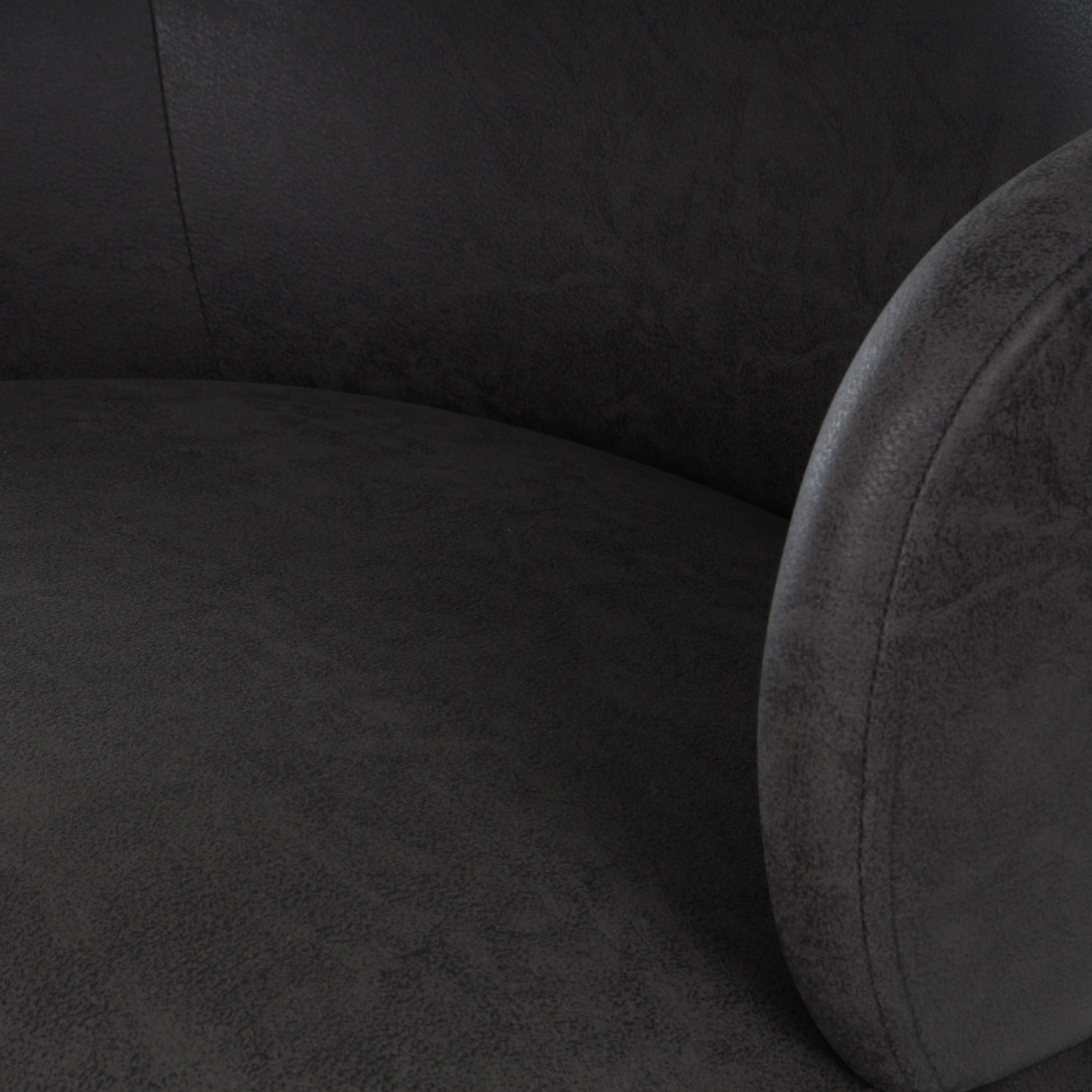 Esta poltrona giratoria aporta estilo en un diseño contemporáneo. Su color oscuro profundo crea un ambiente acogedor y fácil de combinar. Una pieza cómoda y versátil, ideal para salas modernas o clásicas.