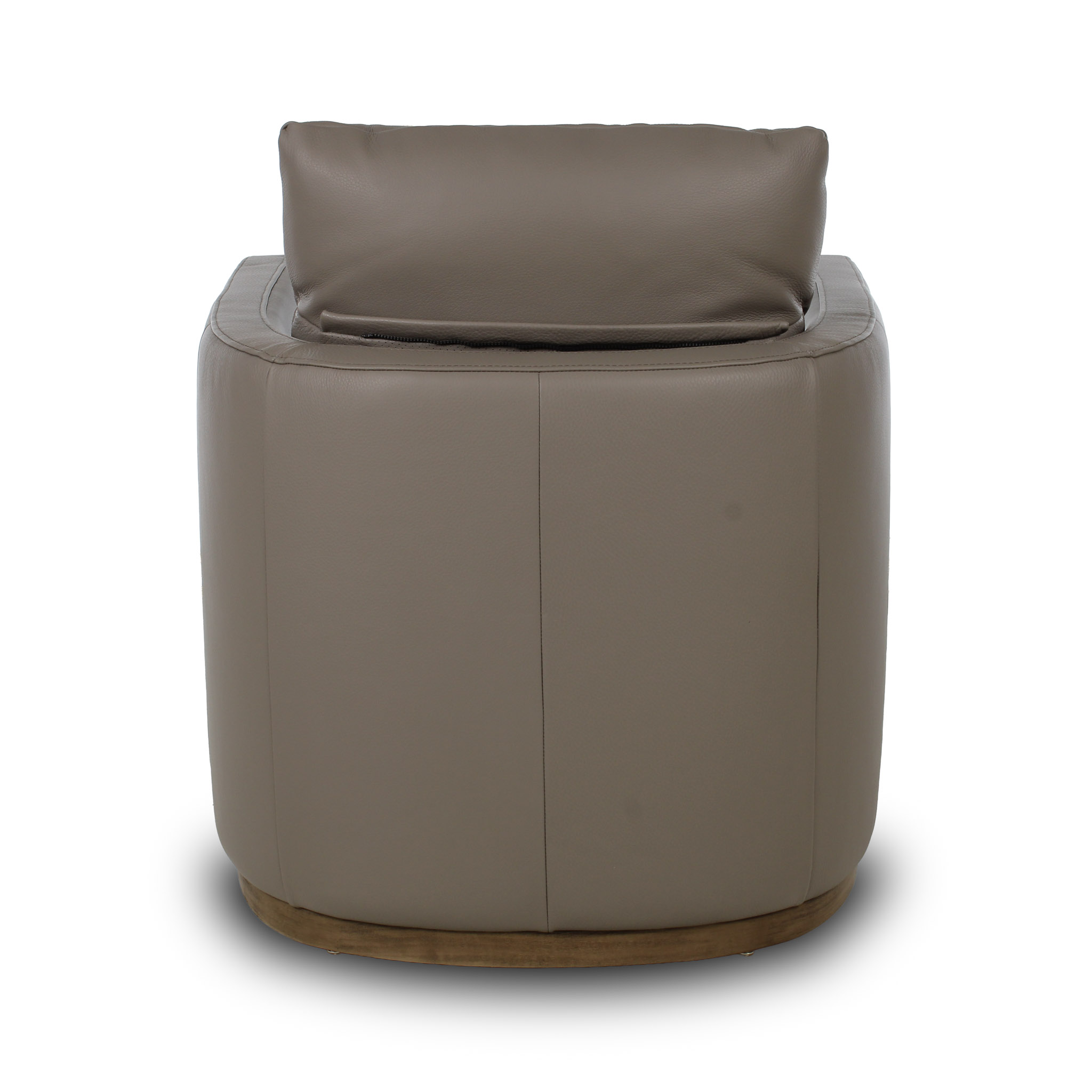 Una pieza sofisticada que une lo clásico y lo contemporáneo. Tapizada en cuero gris oscuro de acabado elegante, esta poltrona cuenta con una base de madera que le da calidez al diseño. Su giro suave y estructura ergonómica la convierten en una opción perfecta para espacios ejecutivos o salas modernas.