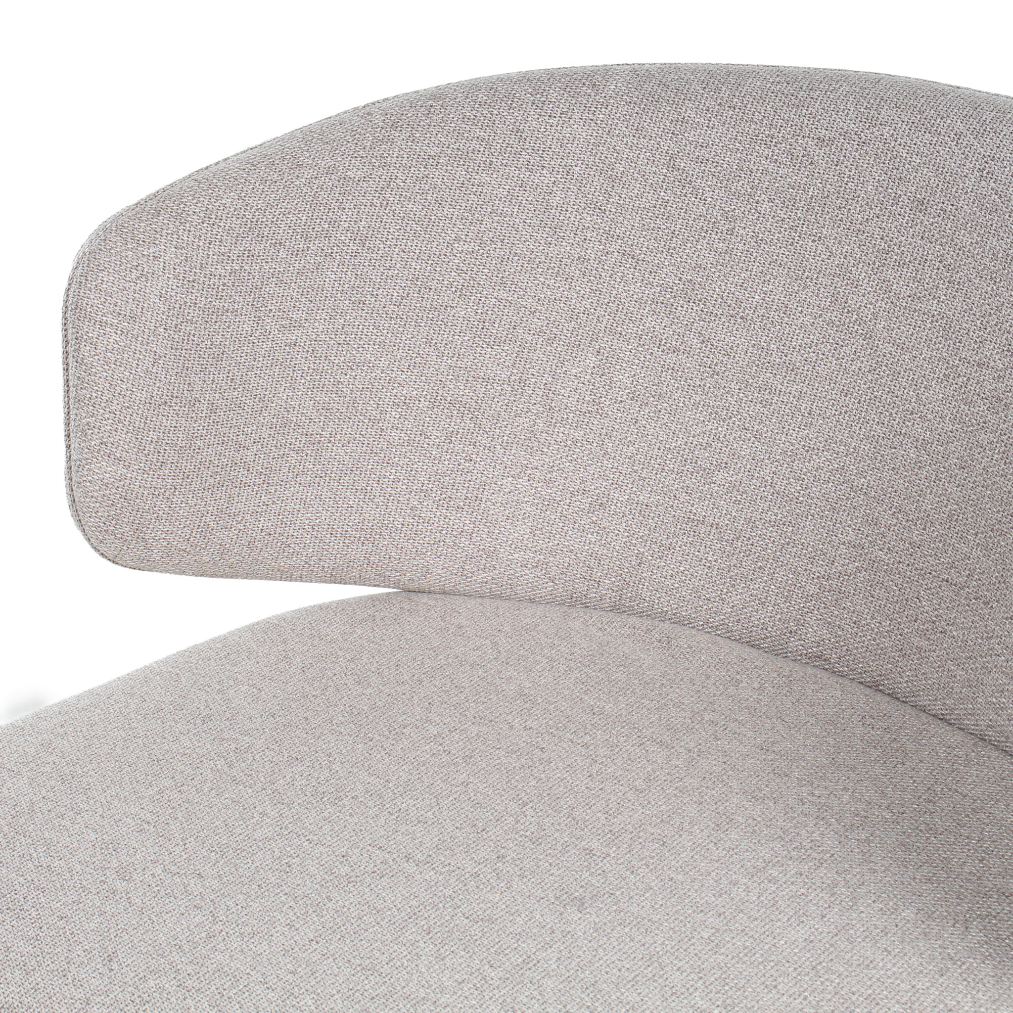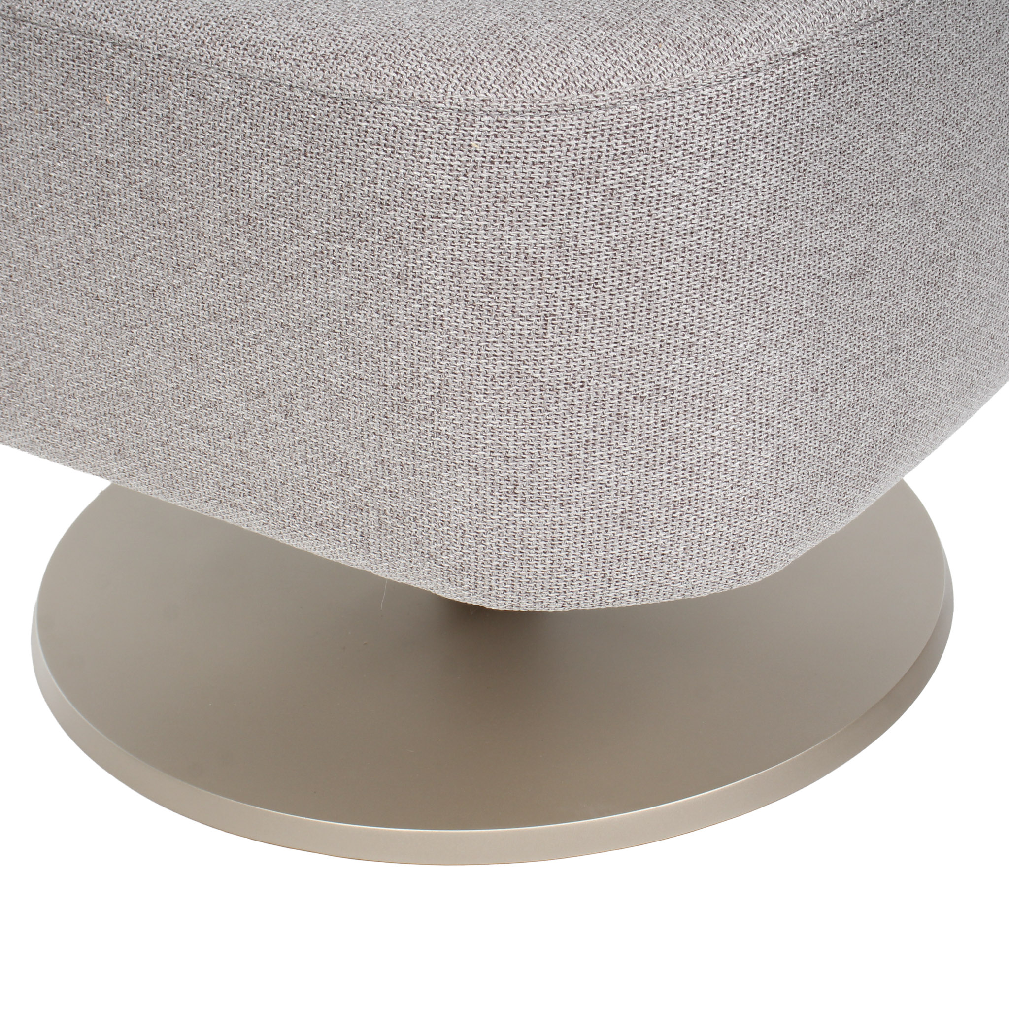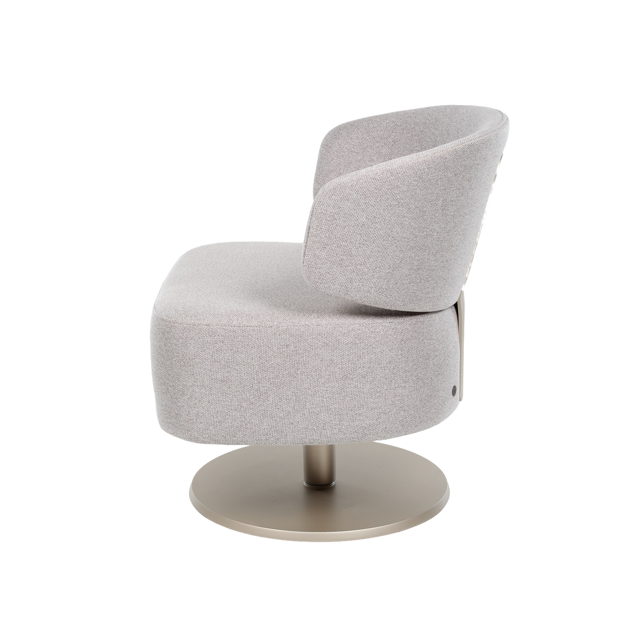La poltrona modelo Lourdes combina el confort de su tapizado en tela con la funcionalidad de su base giratoria en metal color champaña. Su diseño elegante aporta un toque sofisticado y contemporáneo al espacio. Ideal para crear rincones acogedores con estilo.
