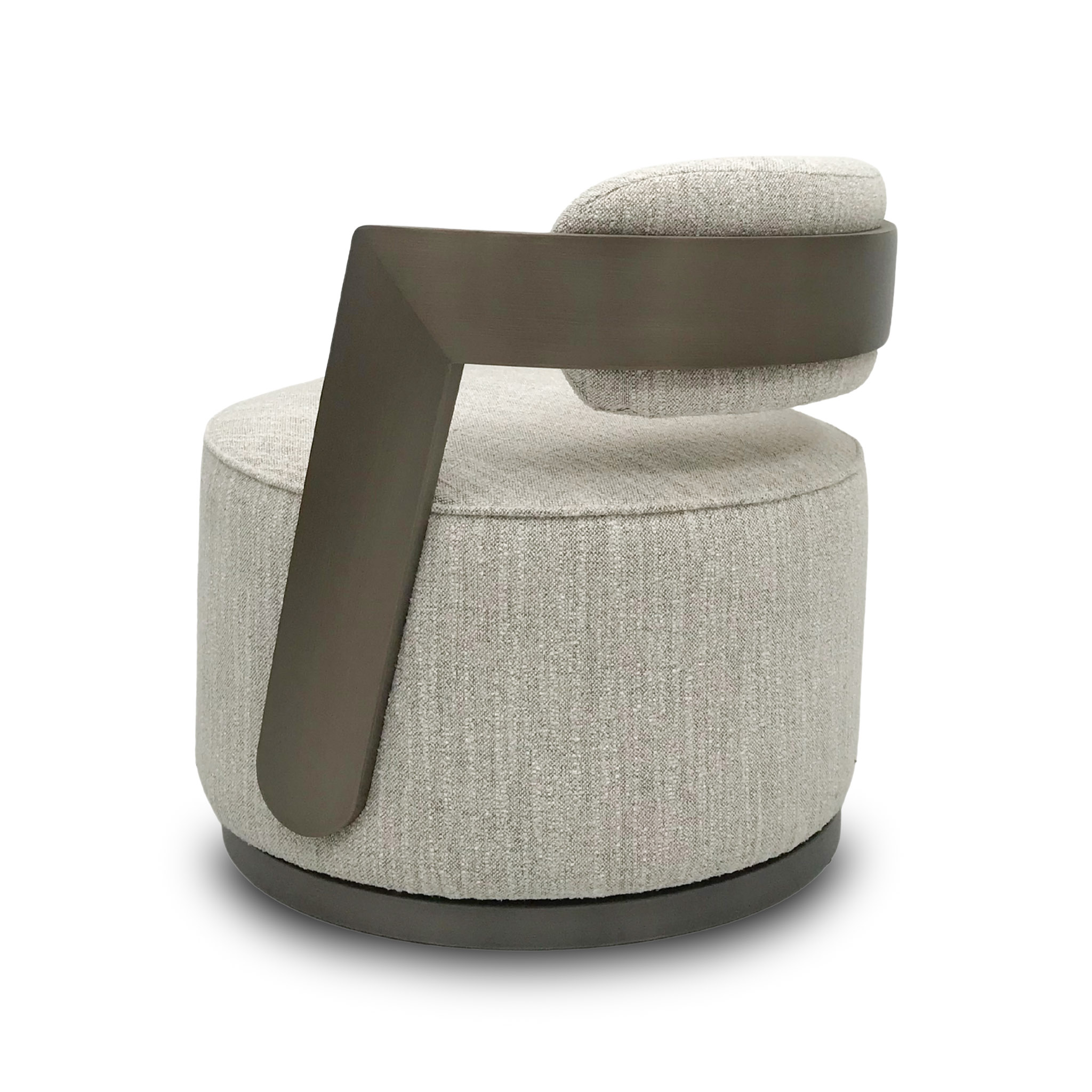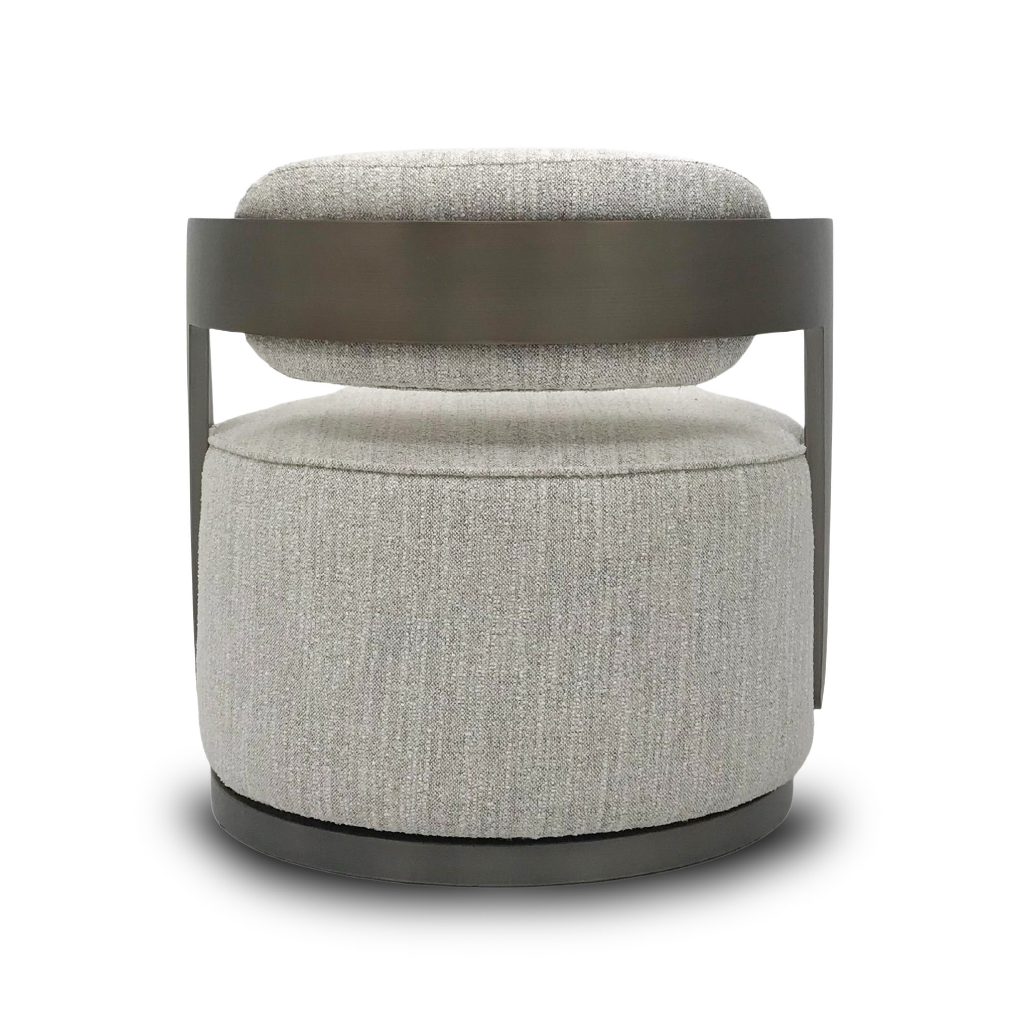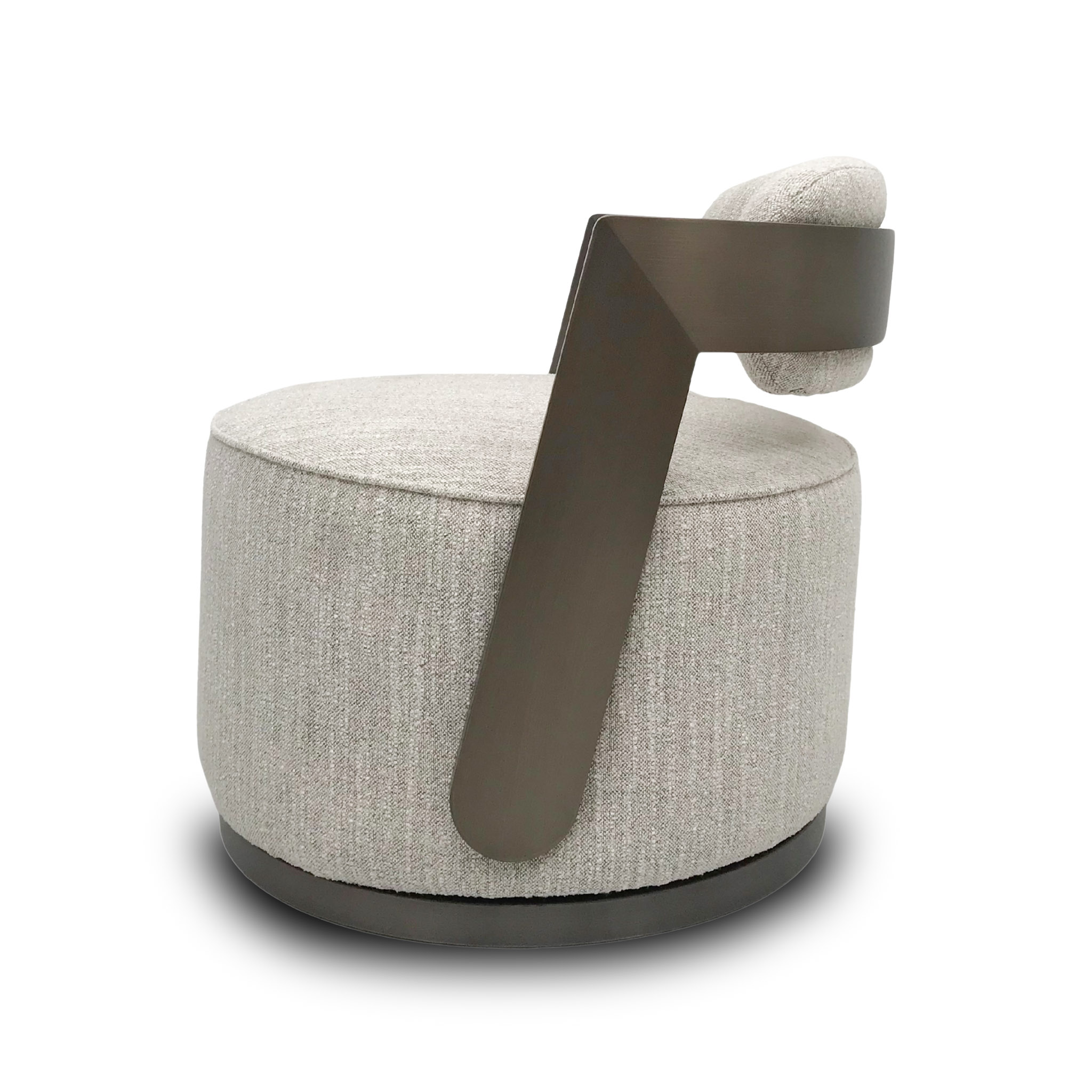 Diseño envolvente con una estética cálida. Esta versión en tono sand se combina con una base metálica bronce y brazos integrados que aportan estabilidad y elegancia. Perfecta para espacios que buscan distinción sin sacrificar confort.