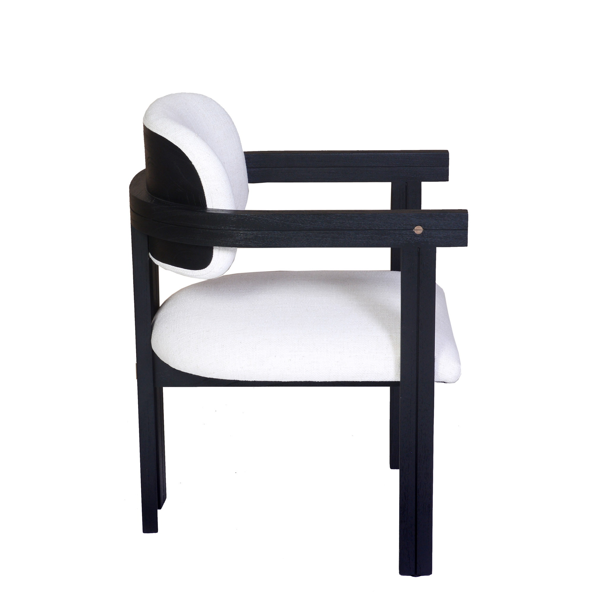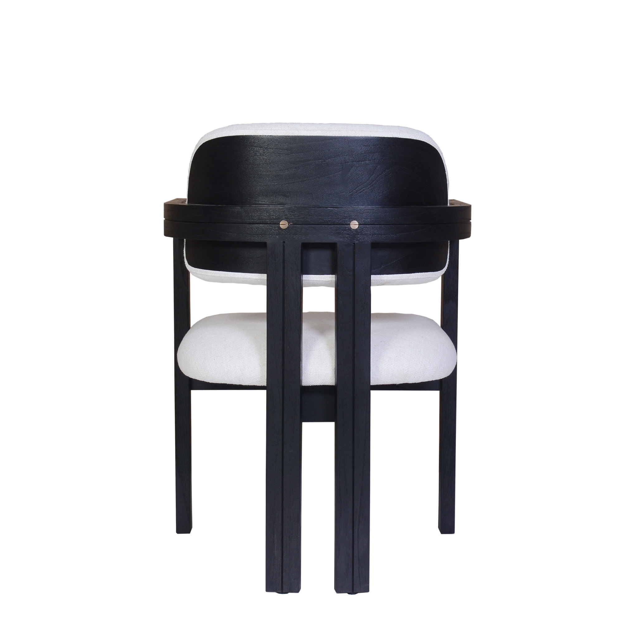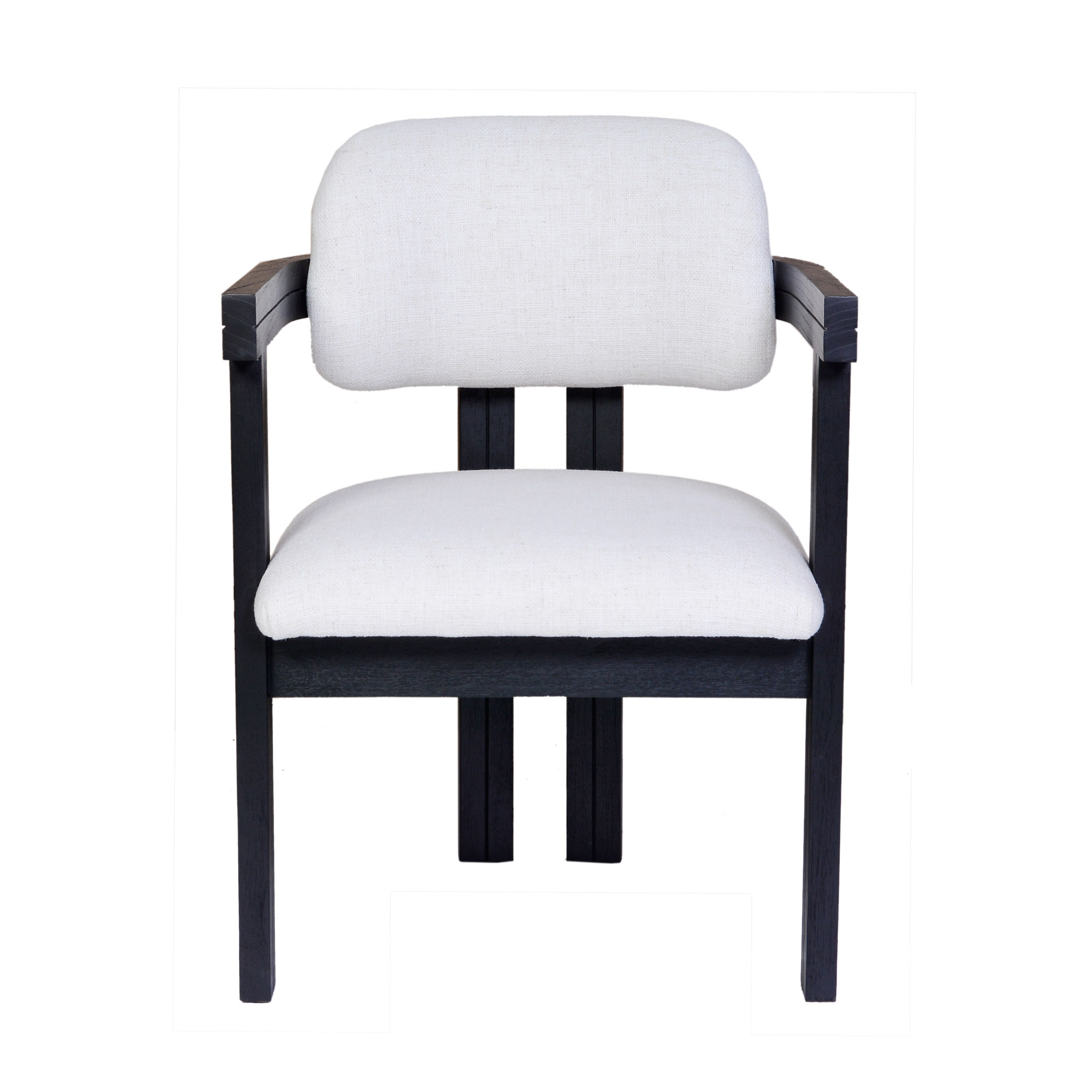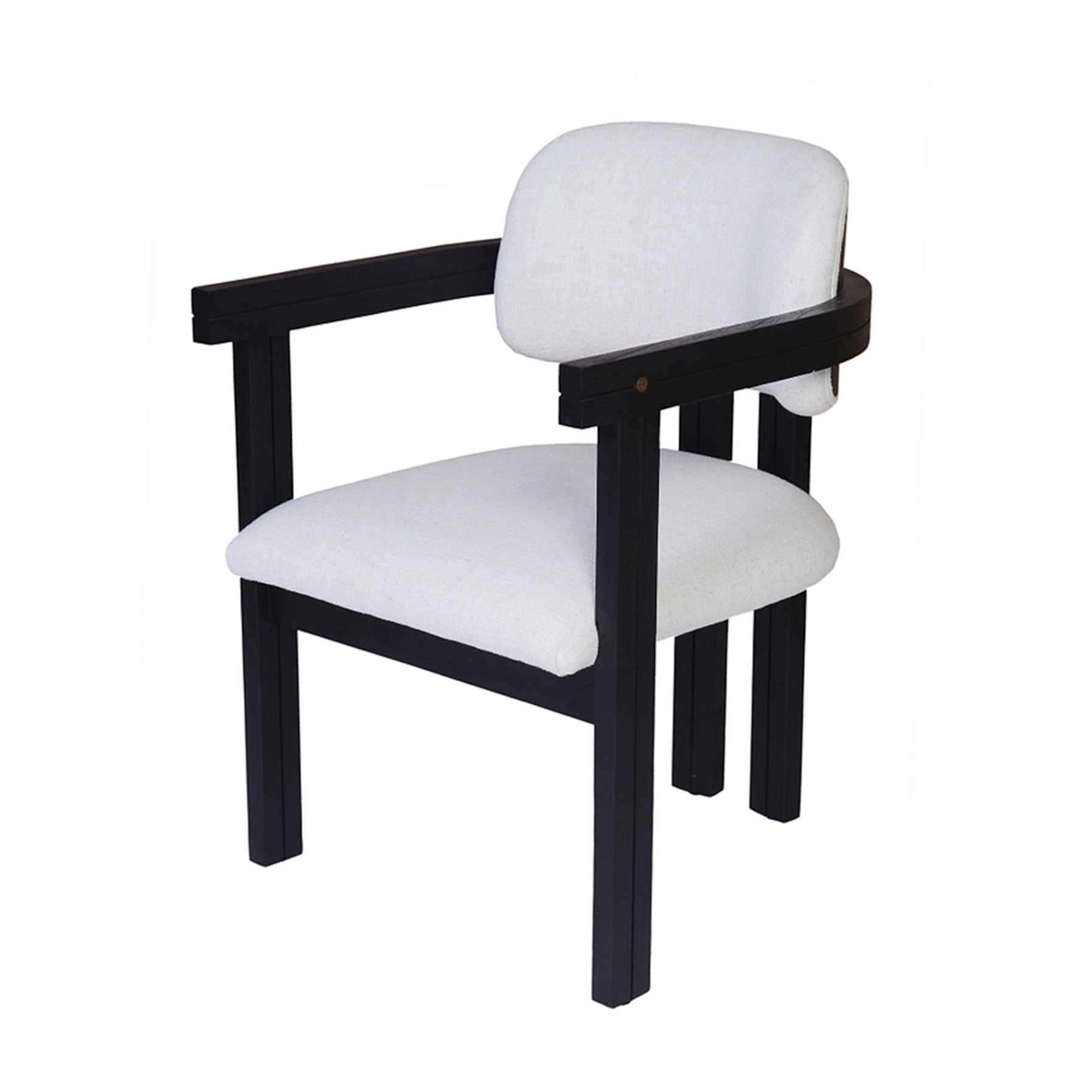 Esta poltrona combina un tapizado en tela suave con una estructura de madera negra, ofreciendo un diseño elegante y cómodo. Su estilo sencillo y sofisticado se adapta perfectamente a cualquier espacio, brindando un toque cálido y acogedor a tu salón o área de descanso.