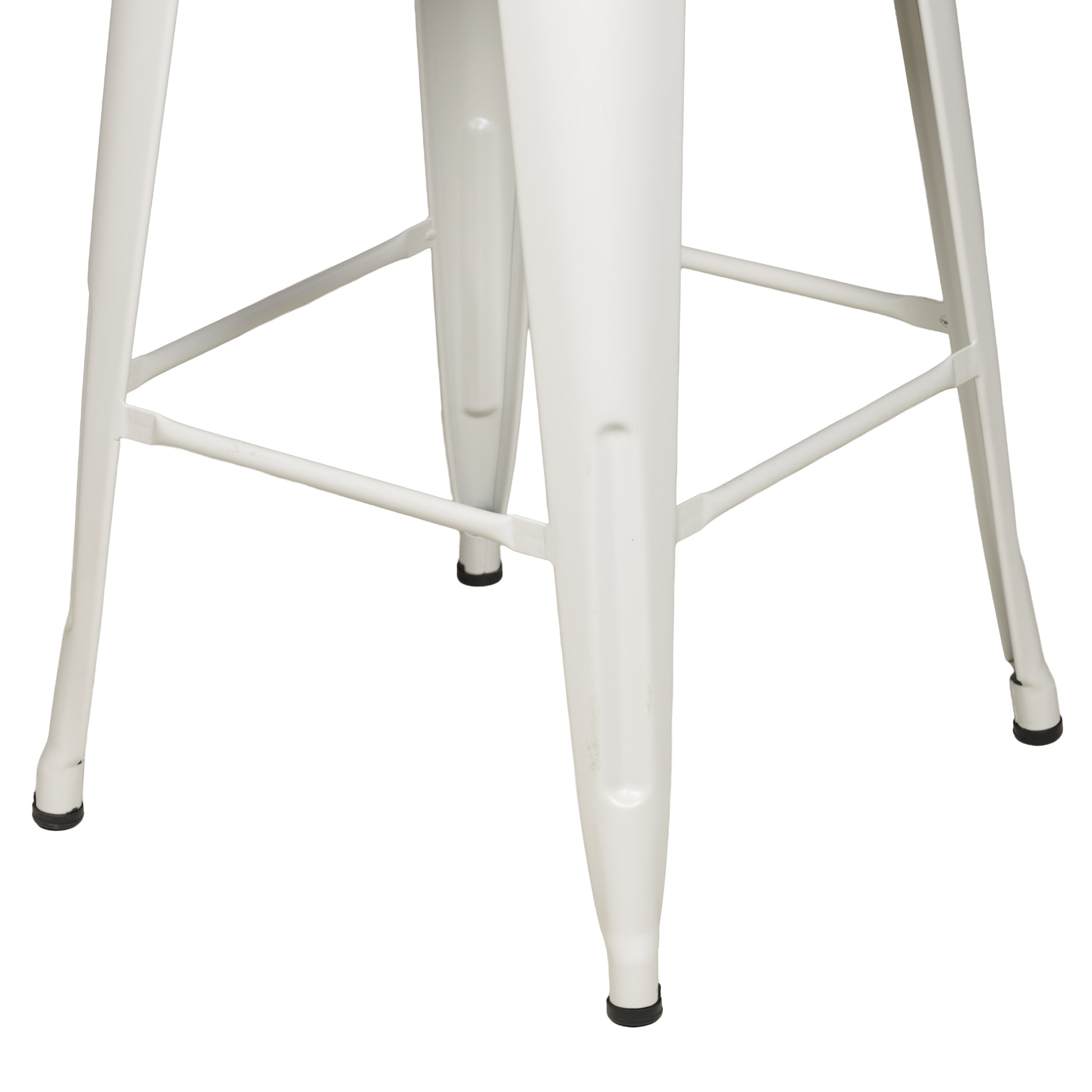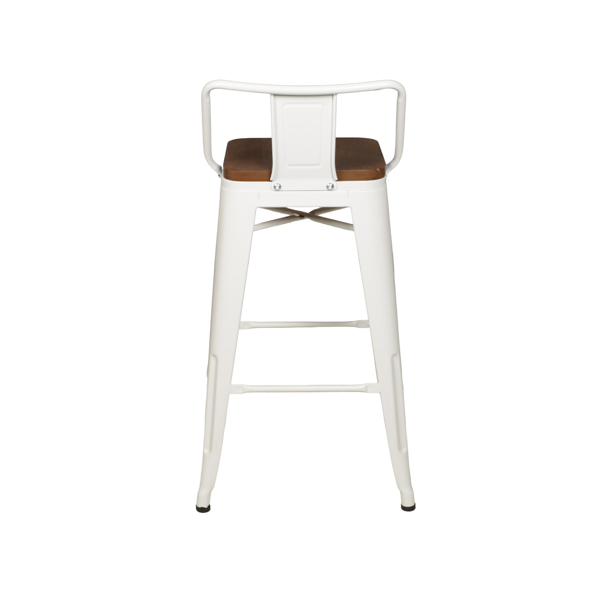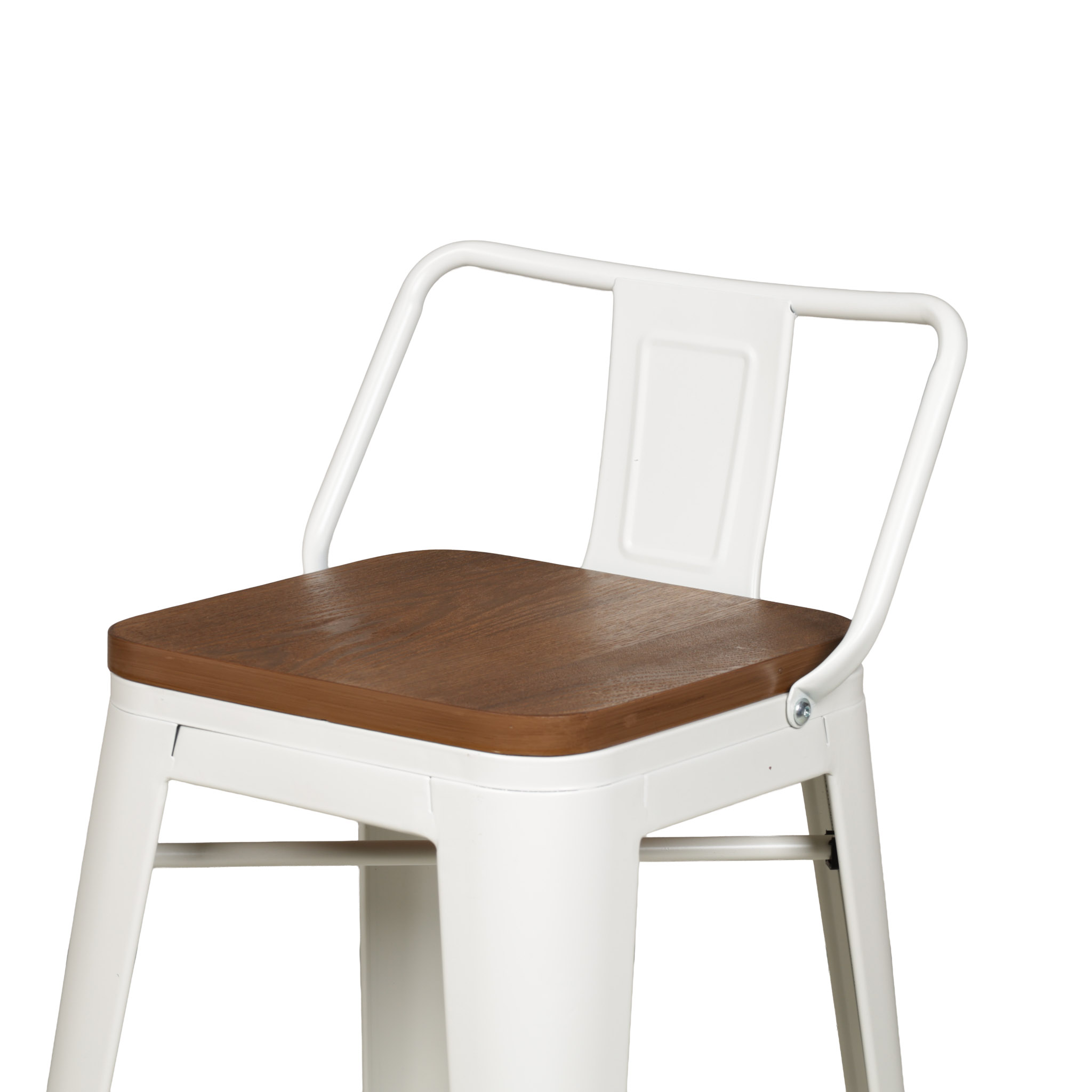 Silla alta para counter / bar de metal blanco, con asiento de madera chocolate.
