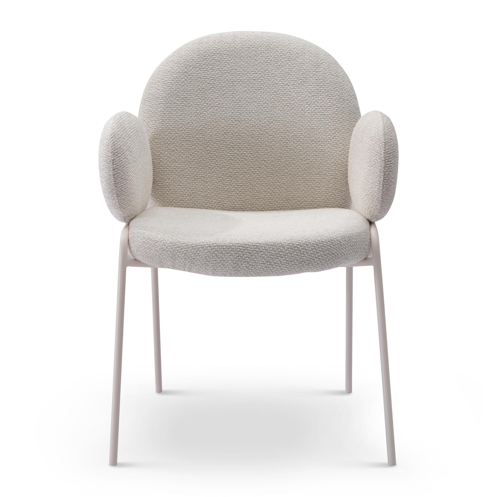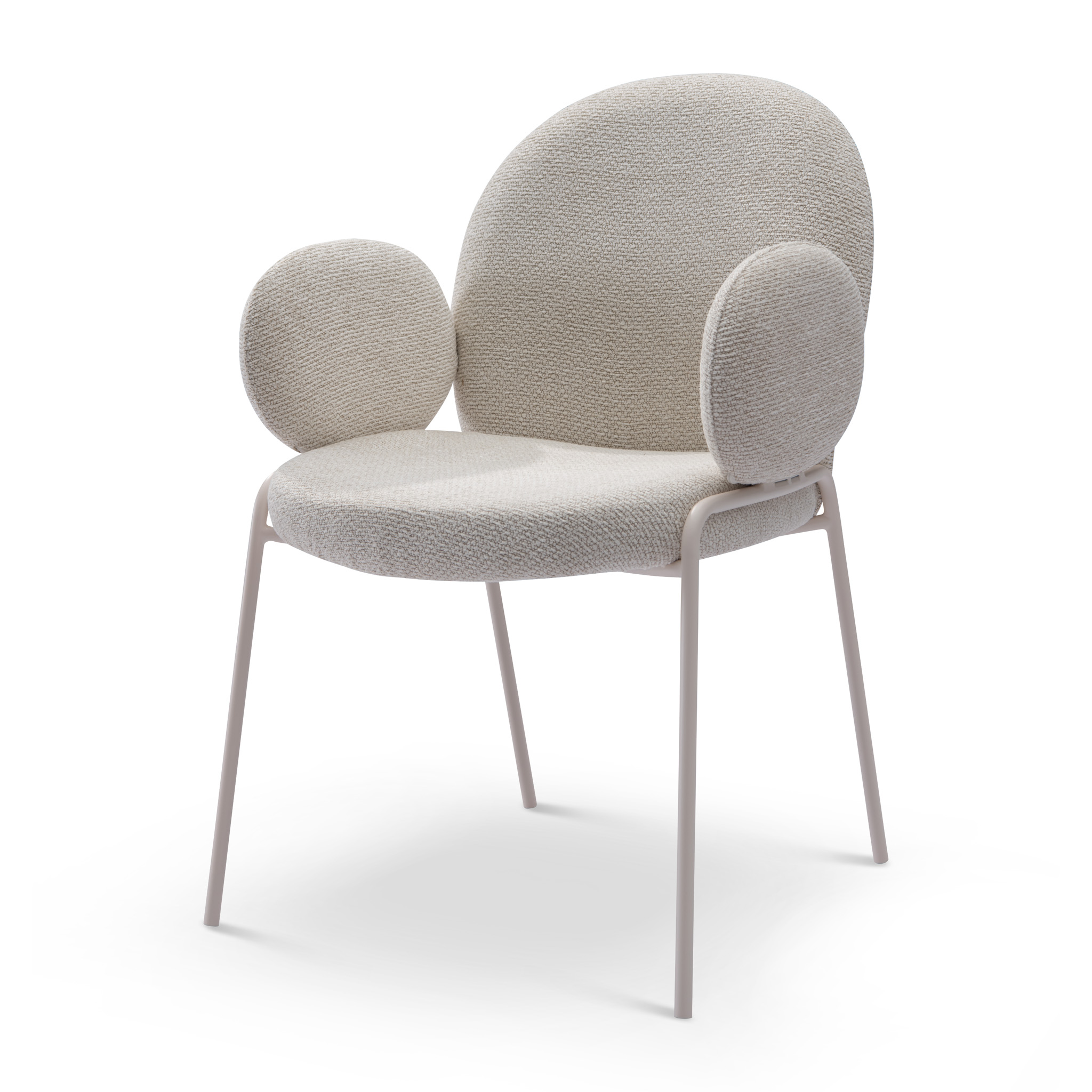 La silla de comedor de tela blanca con patas de metal en color crema es una opción elegante y moderna para tu mesa de comedor. El blanco de la tela brinda un aspecto limpio y luminoso, mientras que las patas de metal en tono crema añaden un toque de contraste y sofisticación al diseño de la silla.