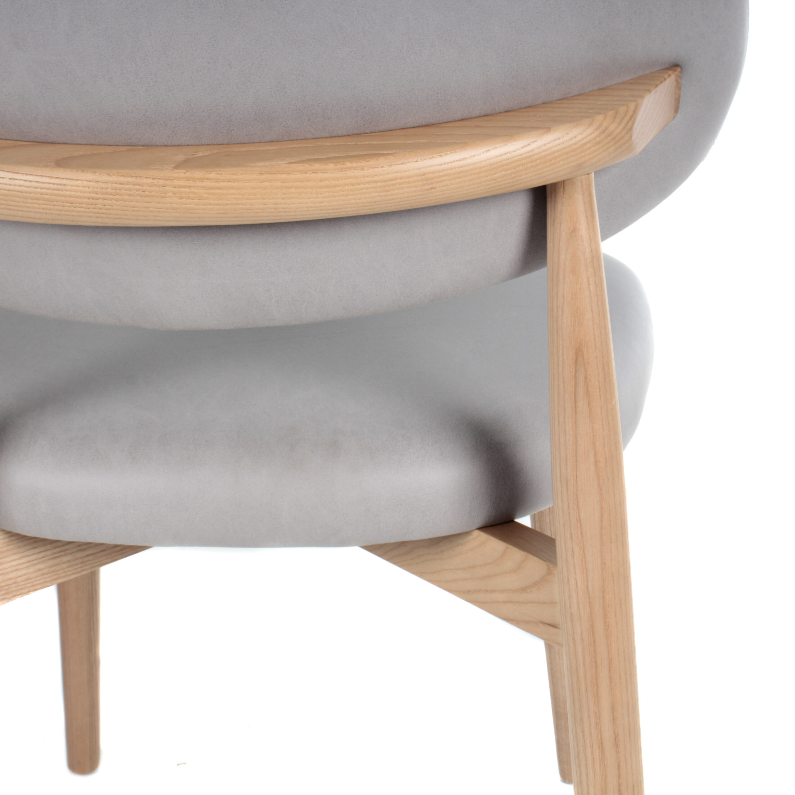 Sofisticada y acogedora, esta silla de comedor cuenta con un tapizado en tela que ofrece suavidad y elegancia, complementado por patas de madera clara que aportan calidez y estabilidad. Perfecta para espacios modernos y clásicos.