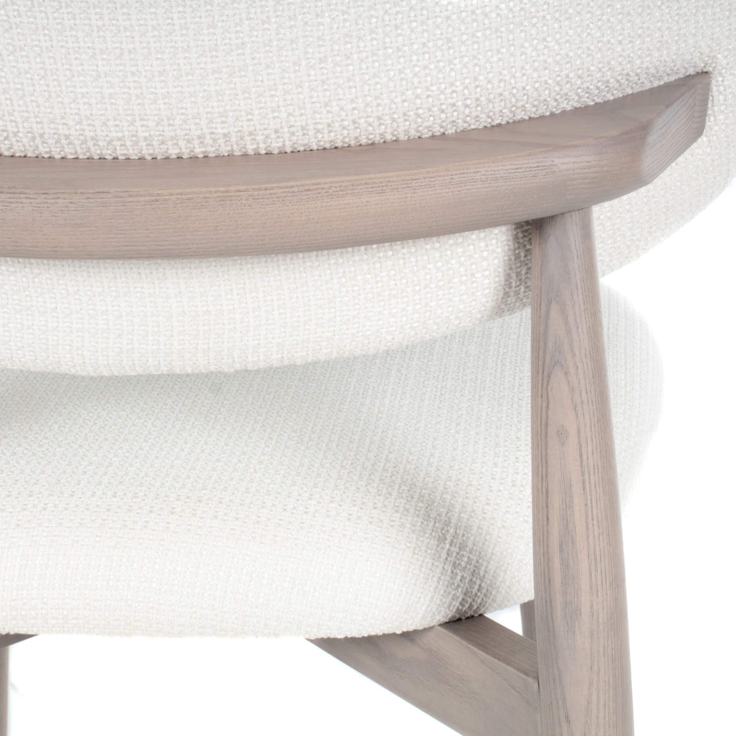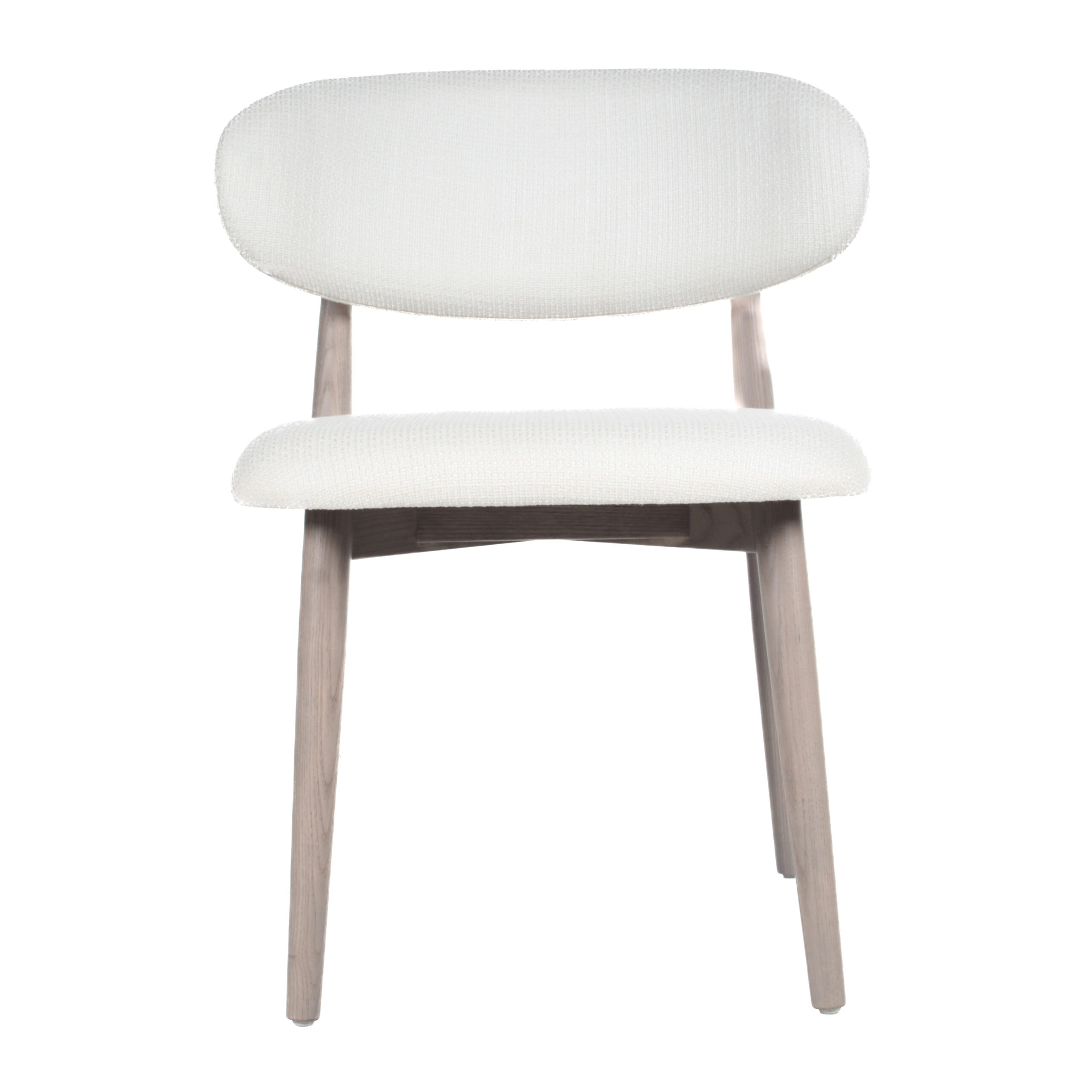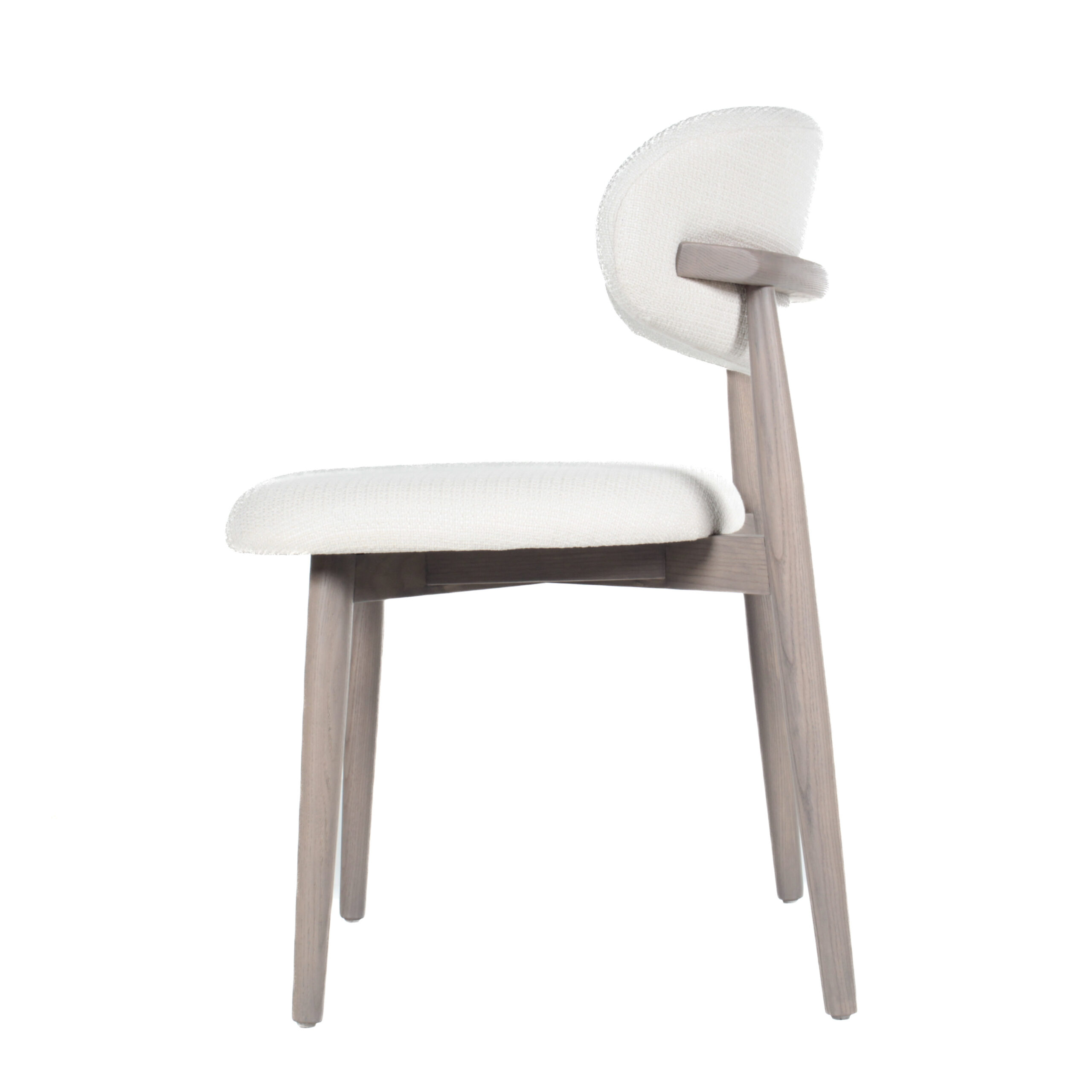 Moderna y versátil, esta silla de comedor presenta un tapizado en tela blanca que aporta elegancia y confort, combinado con patas de madera en tono crema con gris que ofrecen estabilidad y un toque cálido. Perfecta para comedores contemporáneos