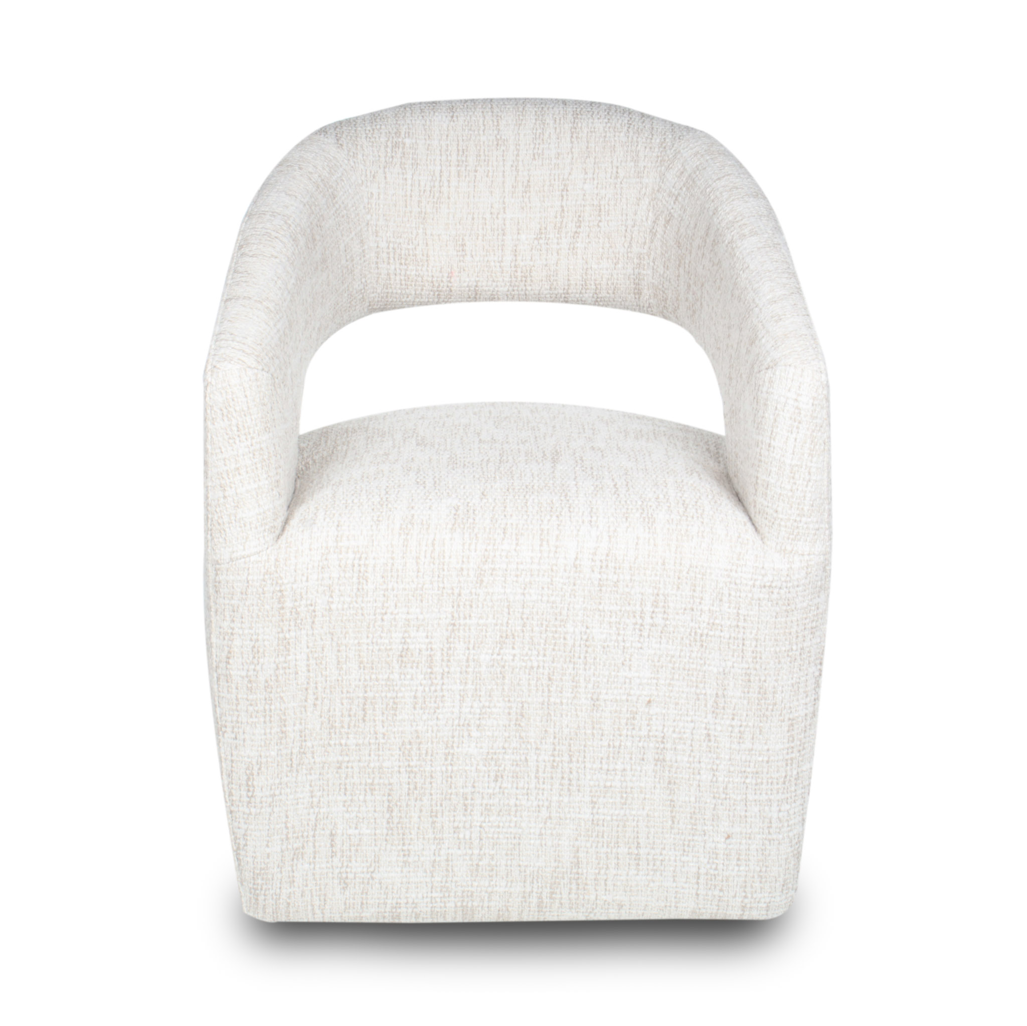 Suavidad y versatilidad en movimiento. Con un acabado ivory cálido, esta silla con ruedas es perfecta para acompañar mesas de comedor, home offices o salas de reuniones con estilo sutil y refinado.