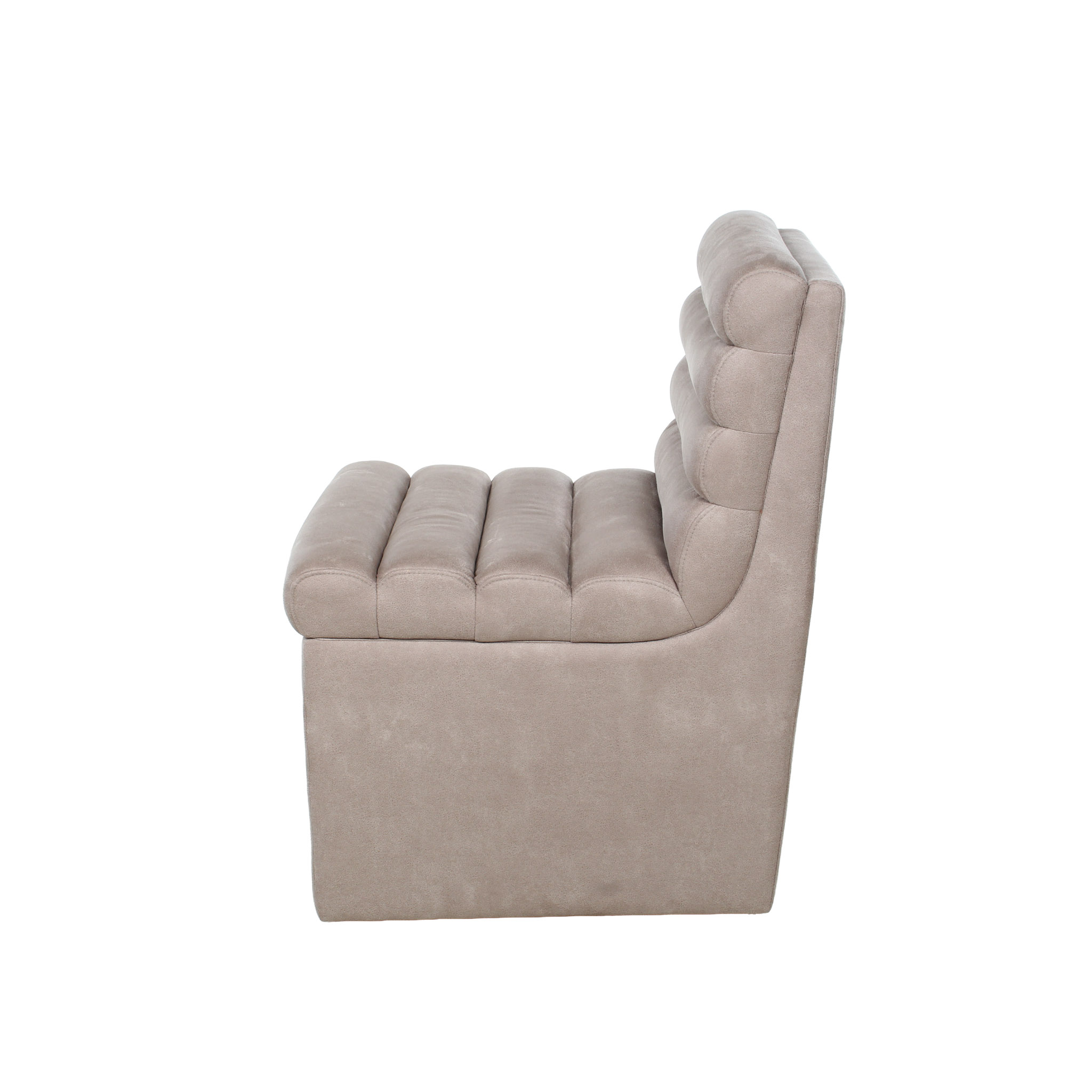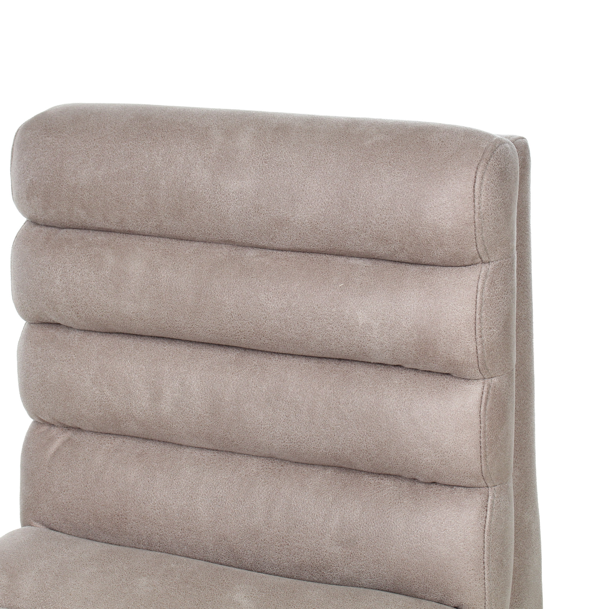 Silla de comedor tapizada en tela gris, con ruedas que ofrece movilidad y confort. Su diseño moderno y versátil se adapta con facilidad a distintos estilos de comedor, aportando suavidad visual y funcionalidad en una sola pieza.
