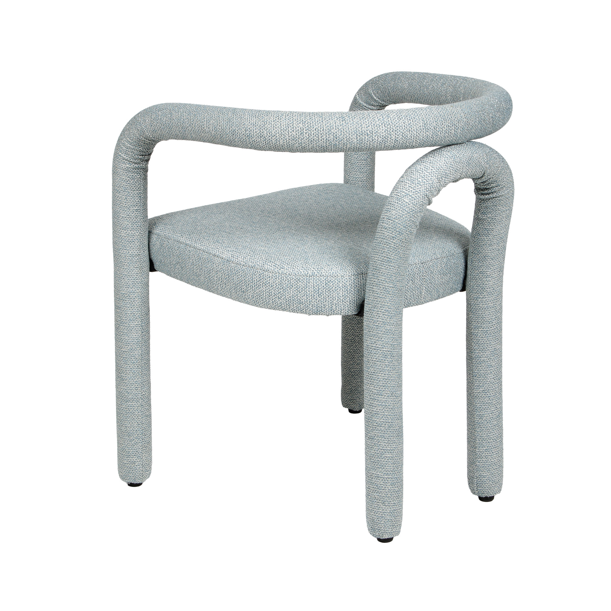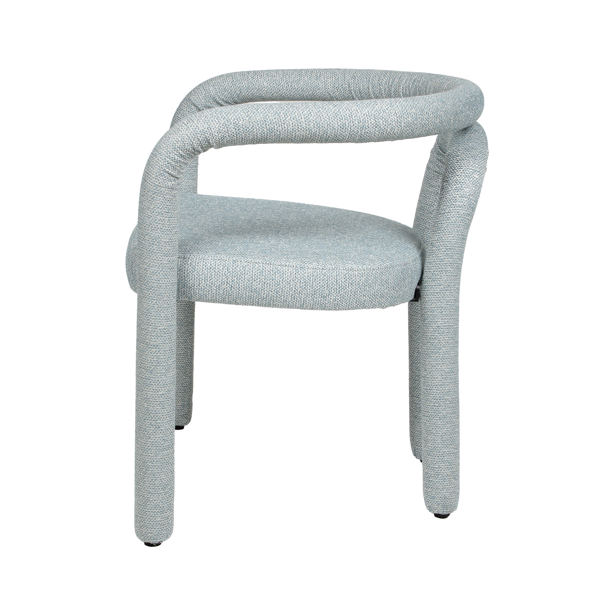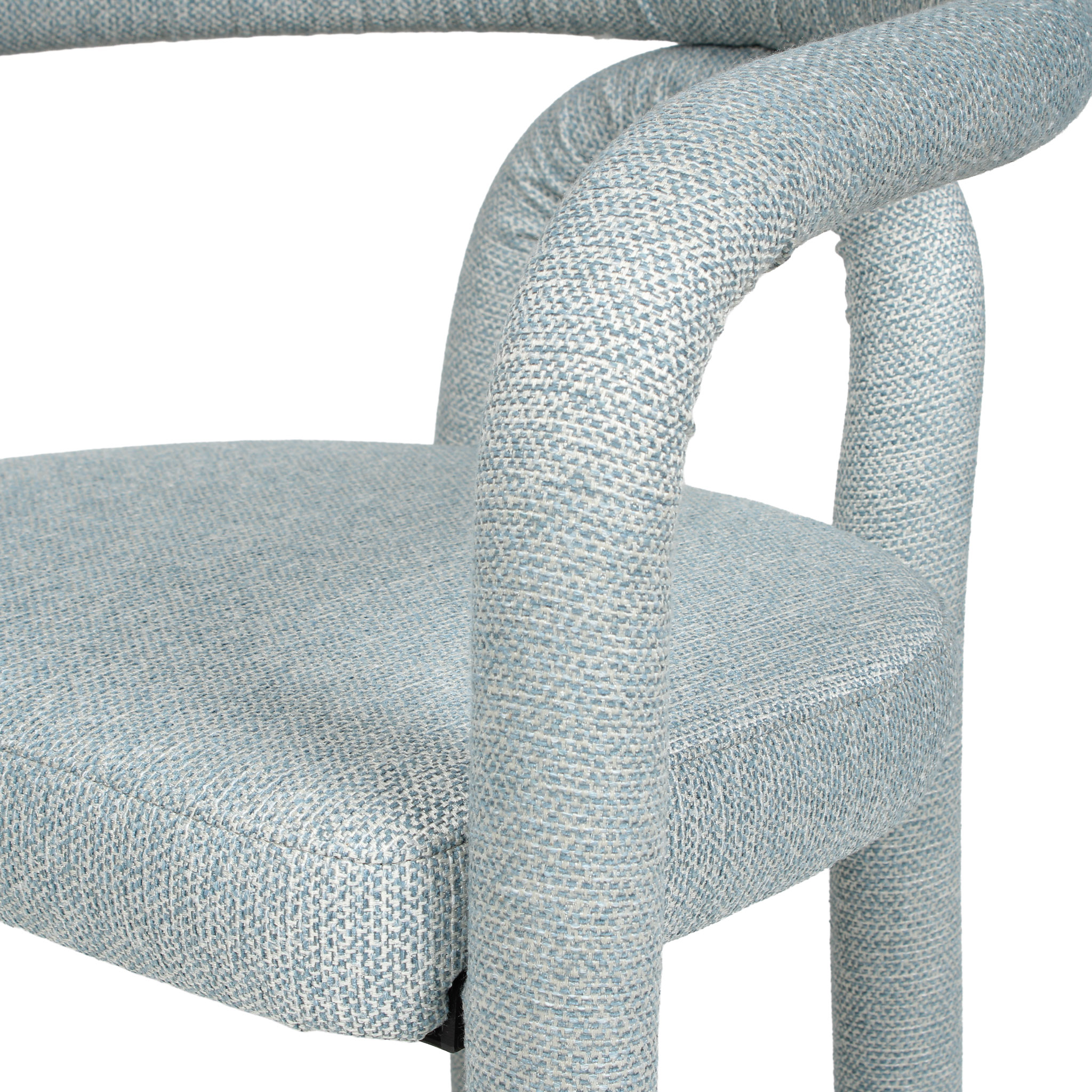Con un estilo fresco y moderno, esta silla revestida de tela celeste y estructura de metal y madera es perfecta para crear un ambiente acogedor en tu comedor. La combinación de materiales le da un toque contemporáneo y versátil.