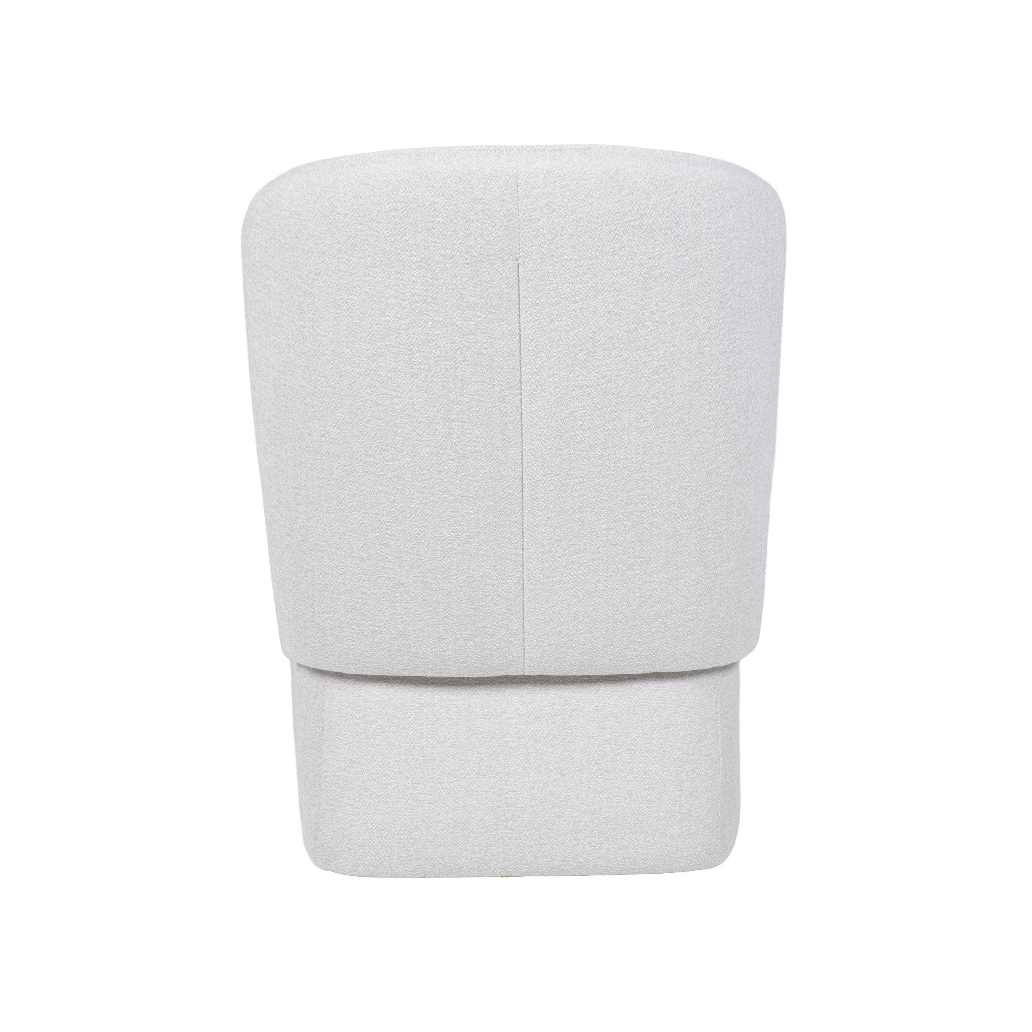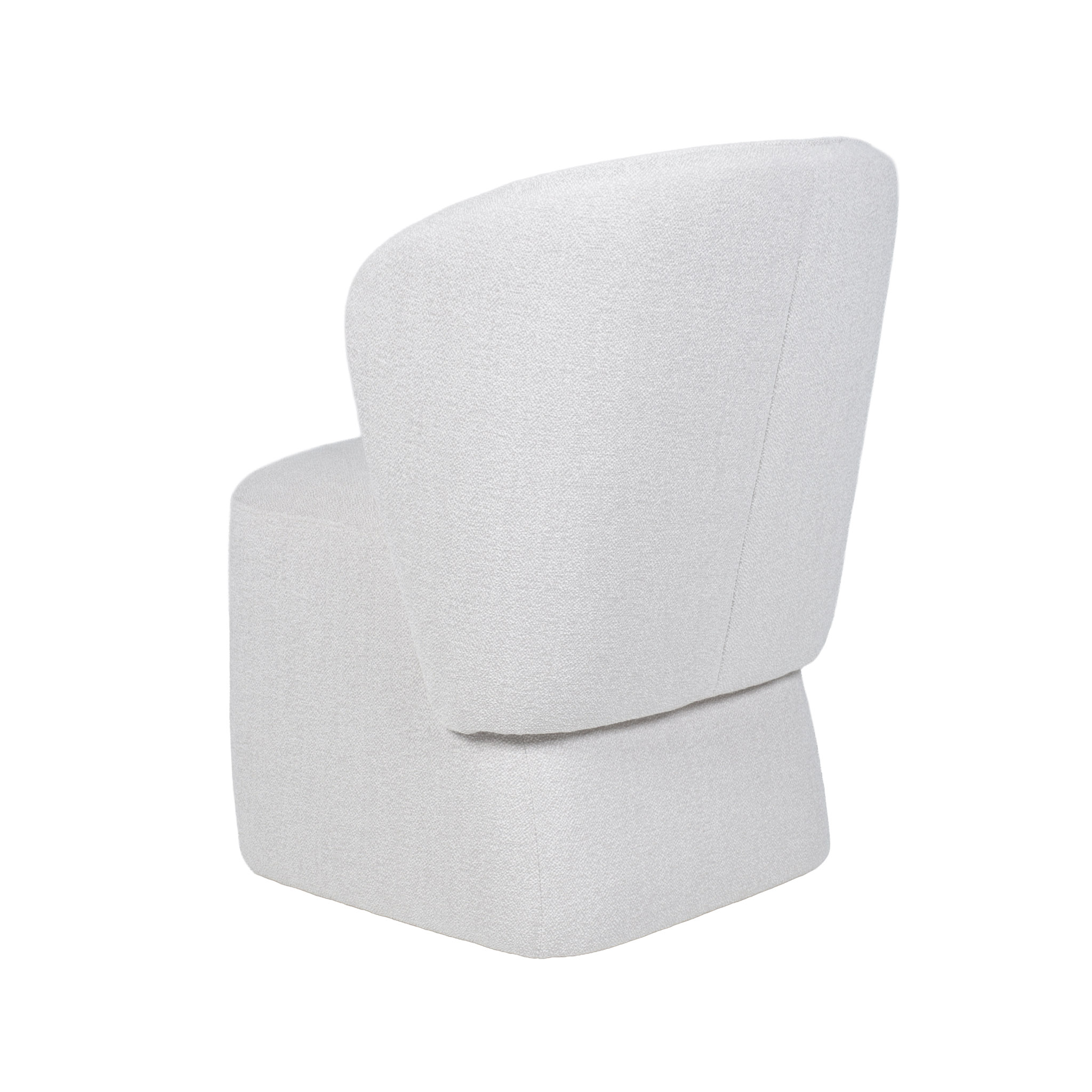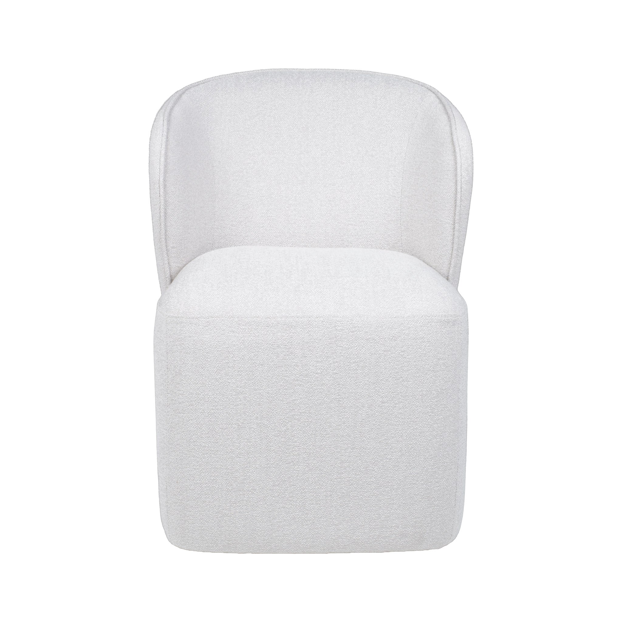 Silla de comedor de tela en tono crema claro con ruedas.