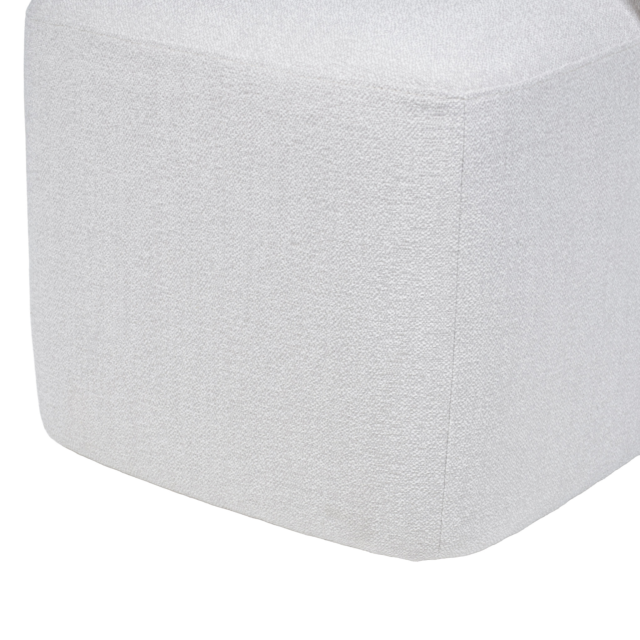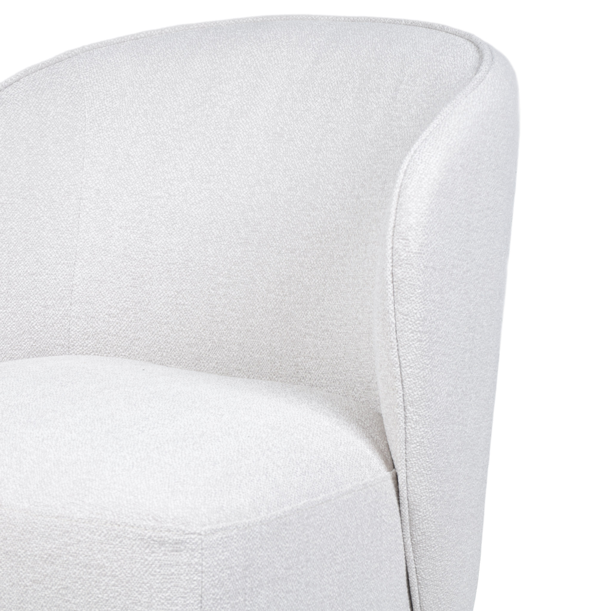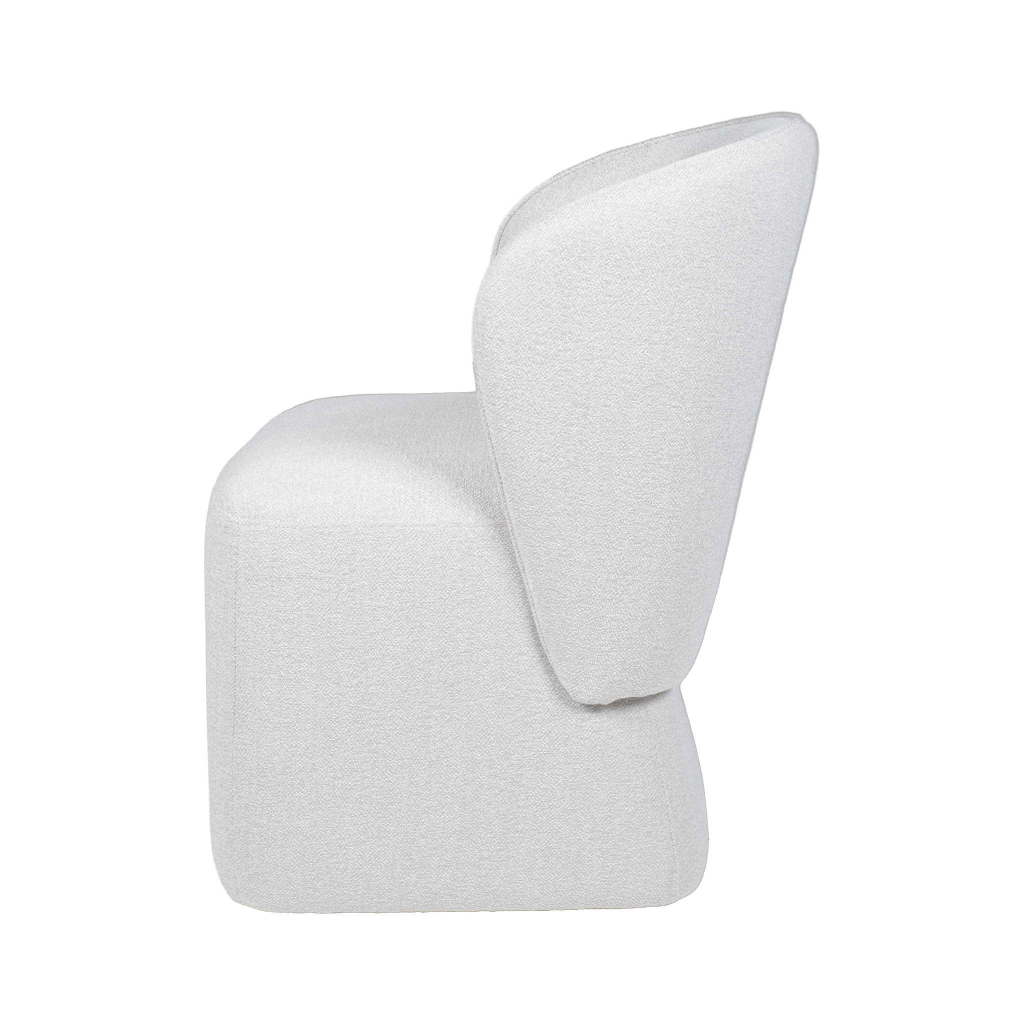 Silla de comedor de tela en tono crema claro con ruedas.