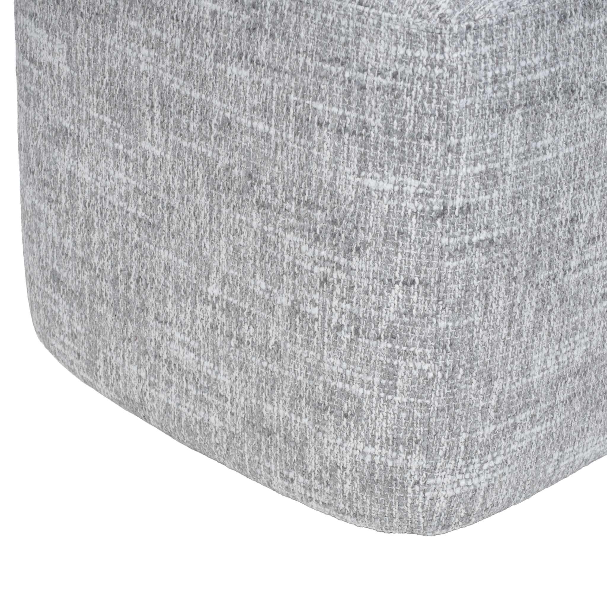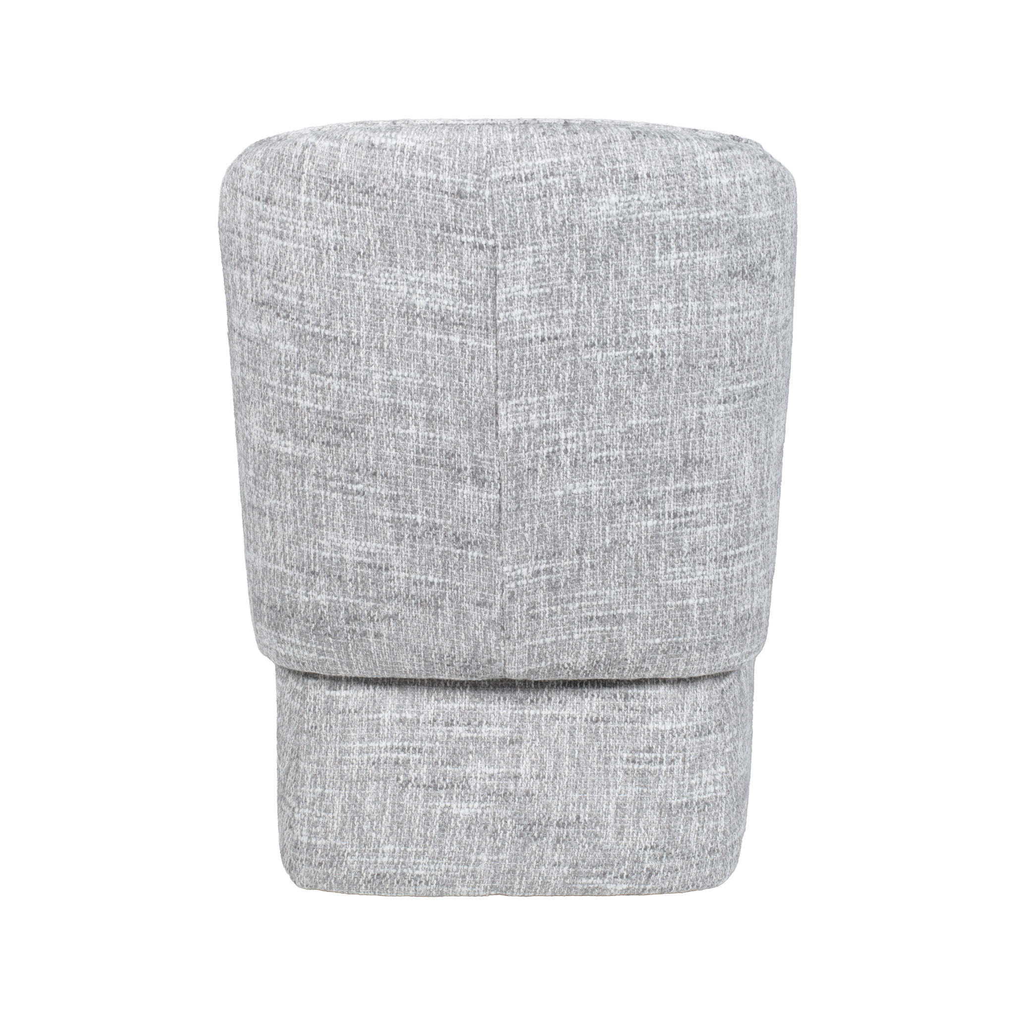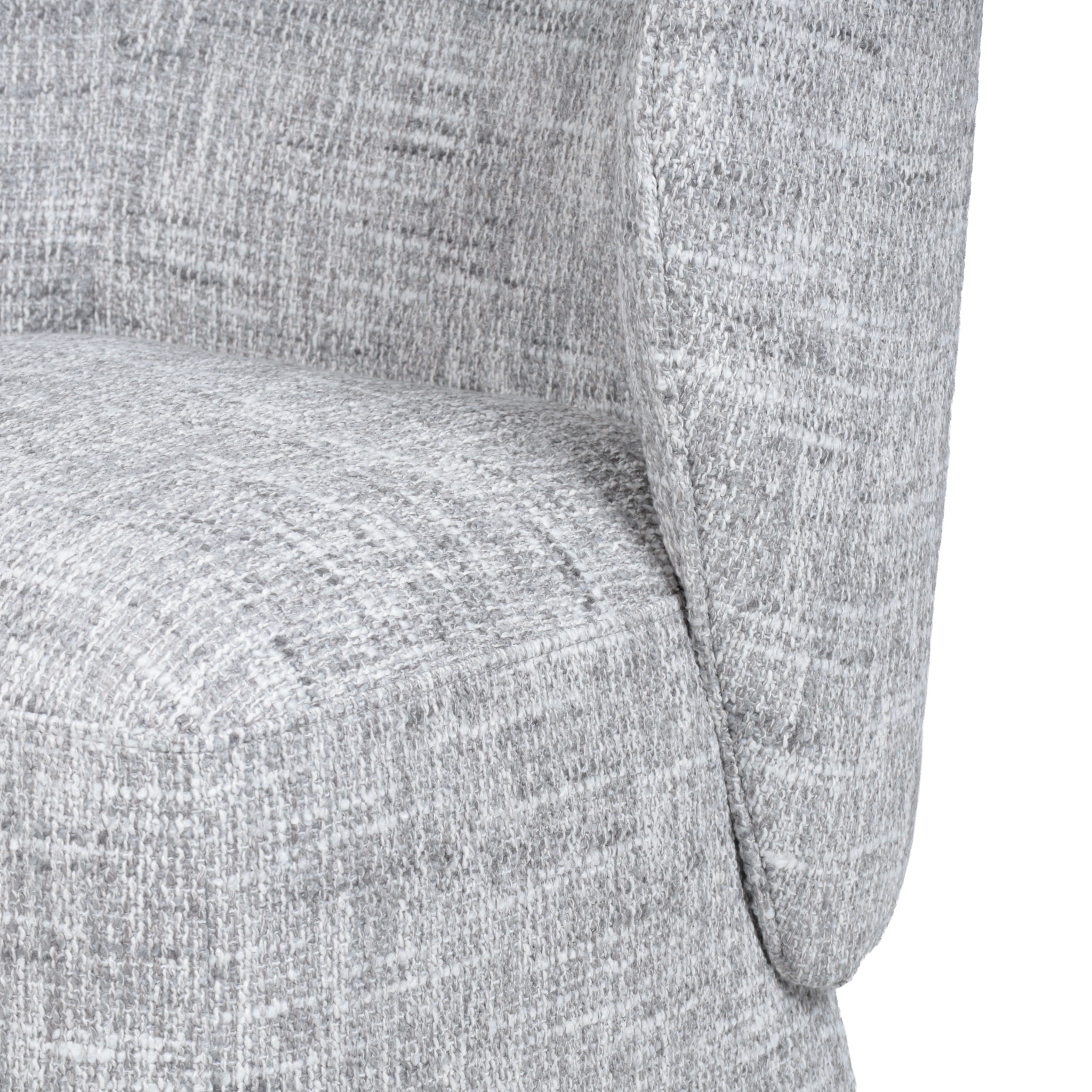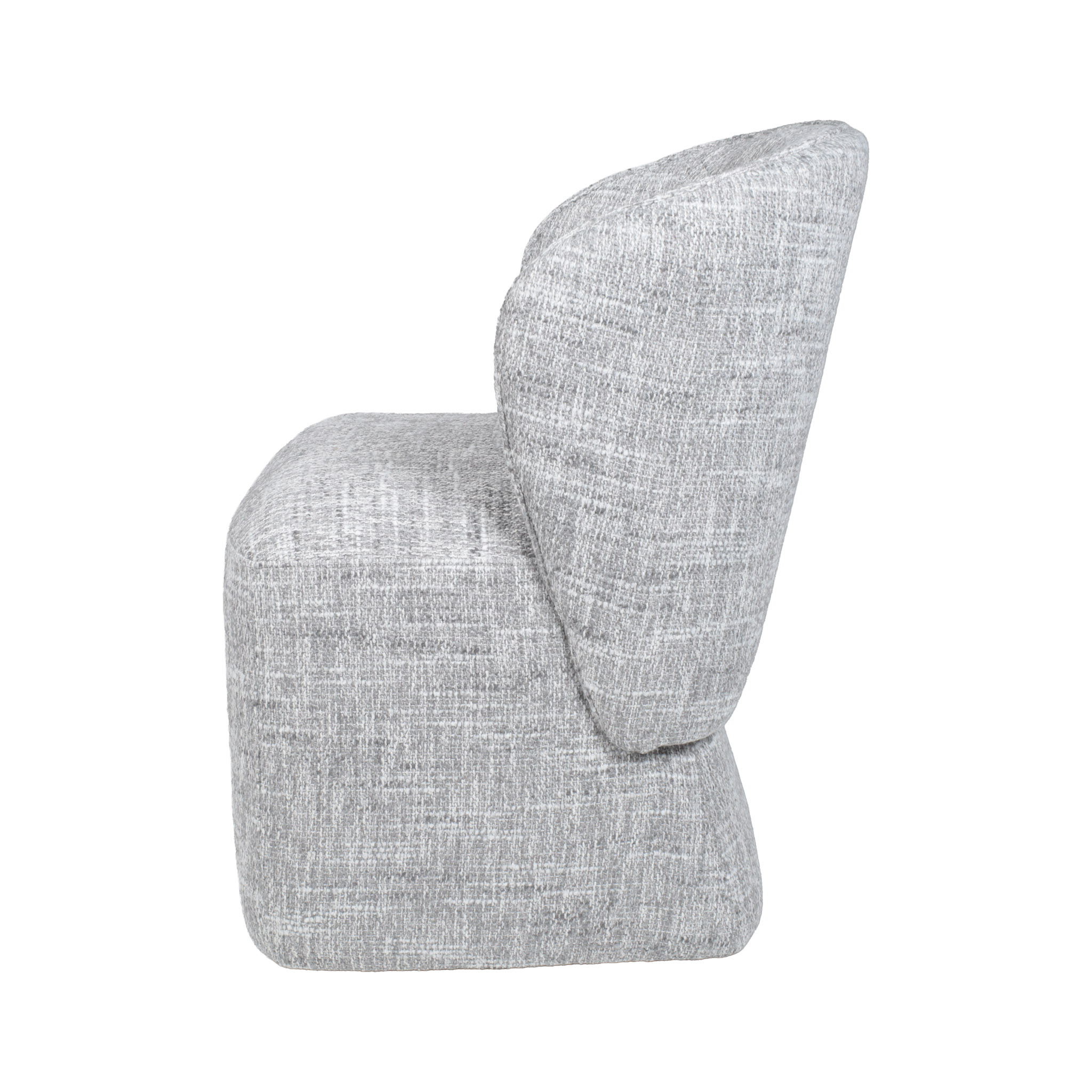 Funcional silla de comedor de tela texturizada en tono gris con blanco, y ruedas.
