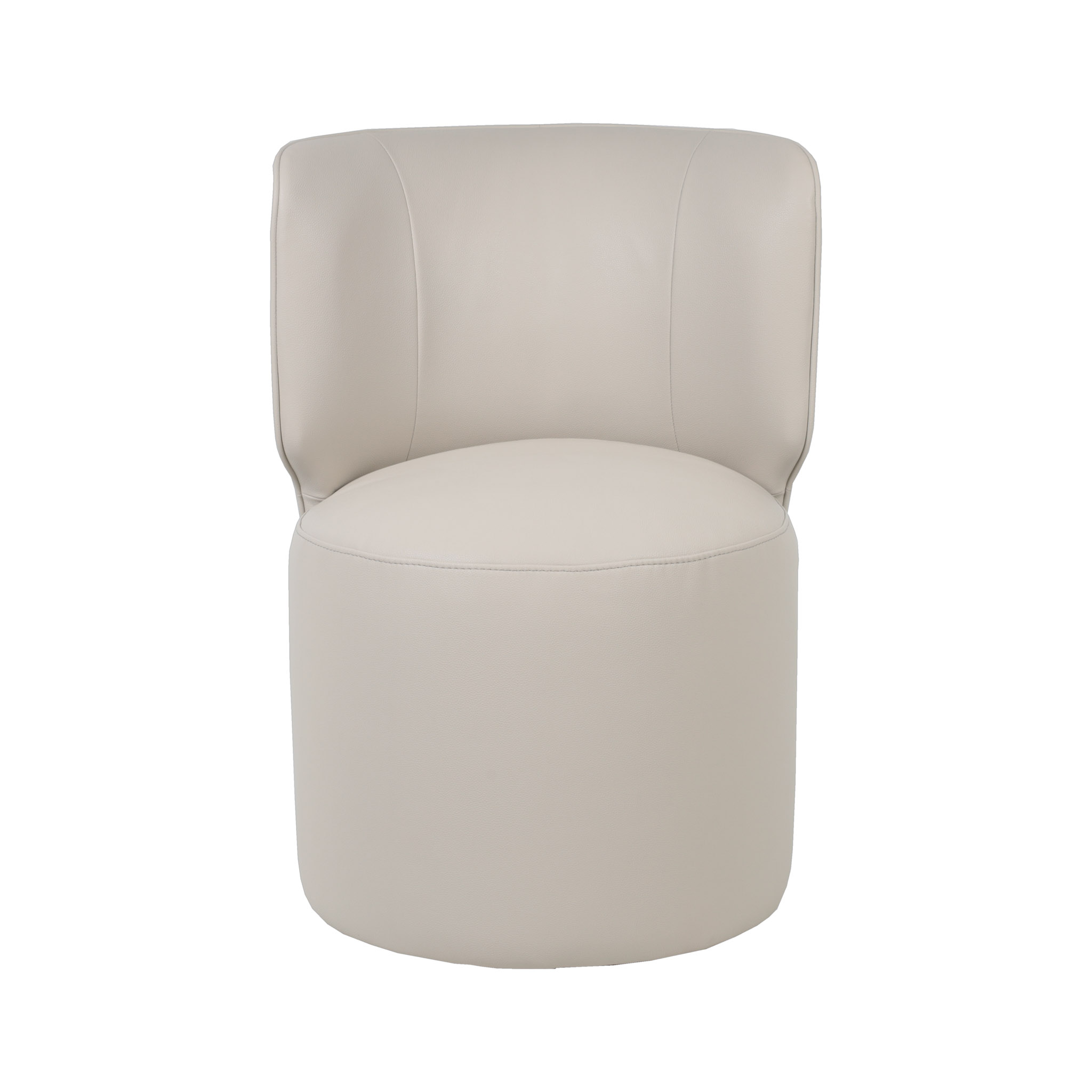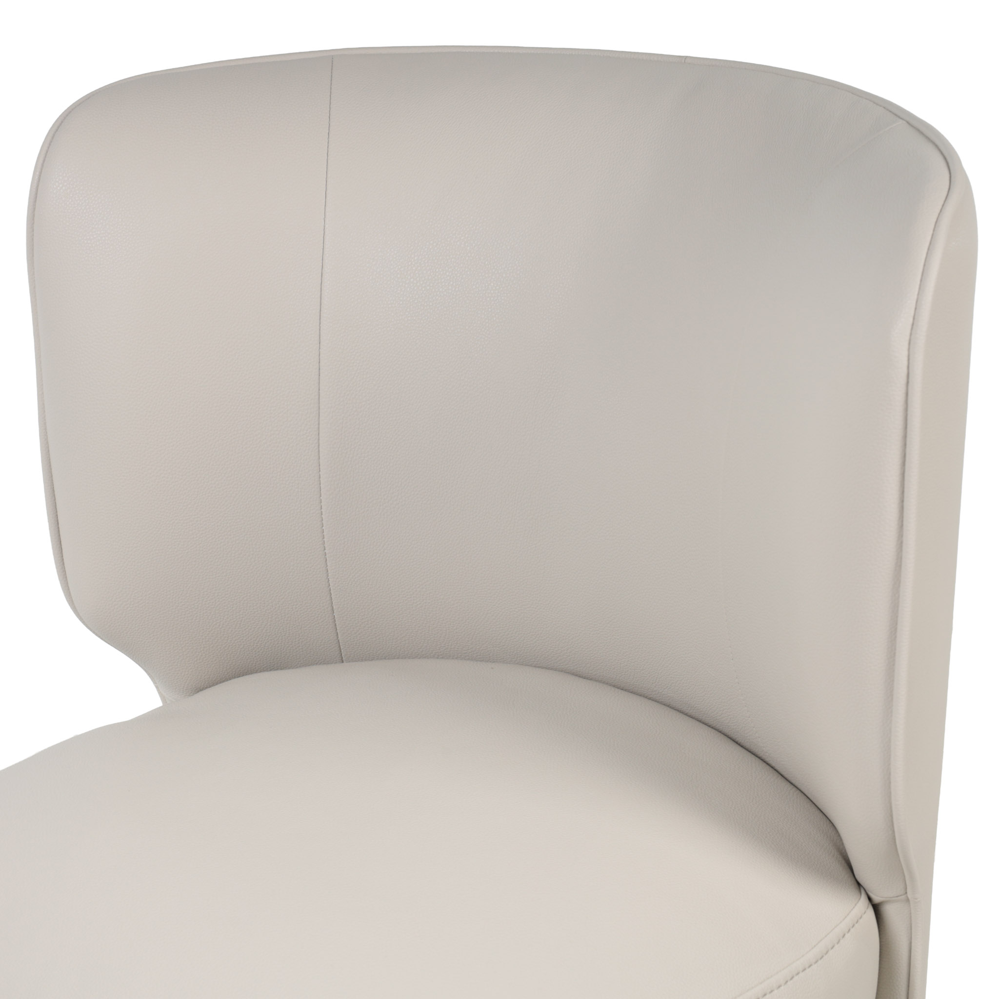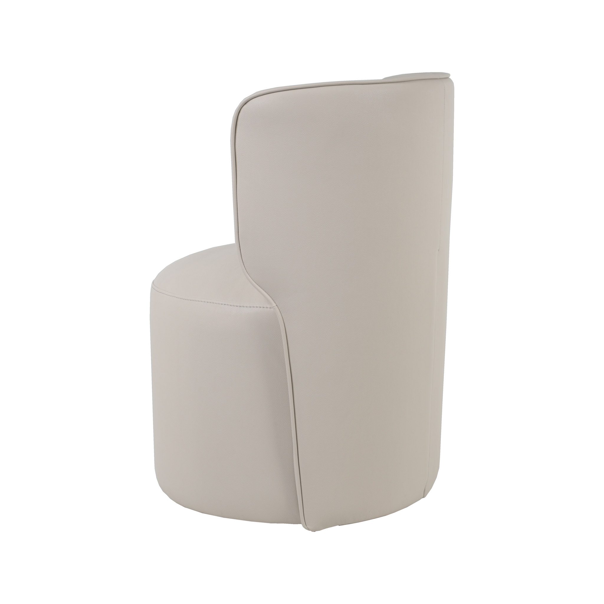 Moderna silla tapizada en cuerina color crema claro y con sistema giratorio.