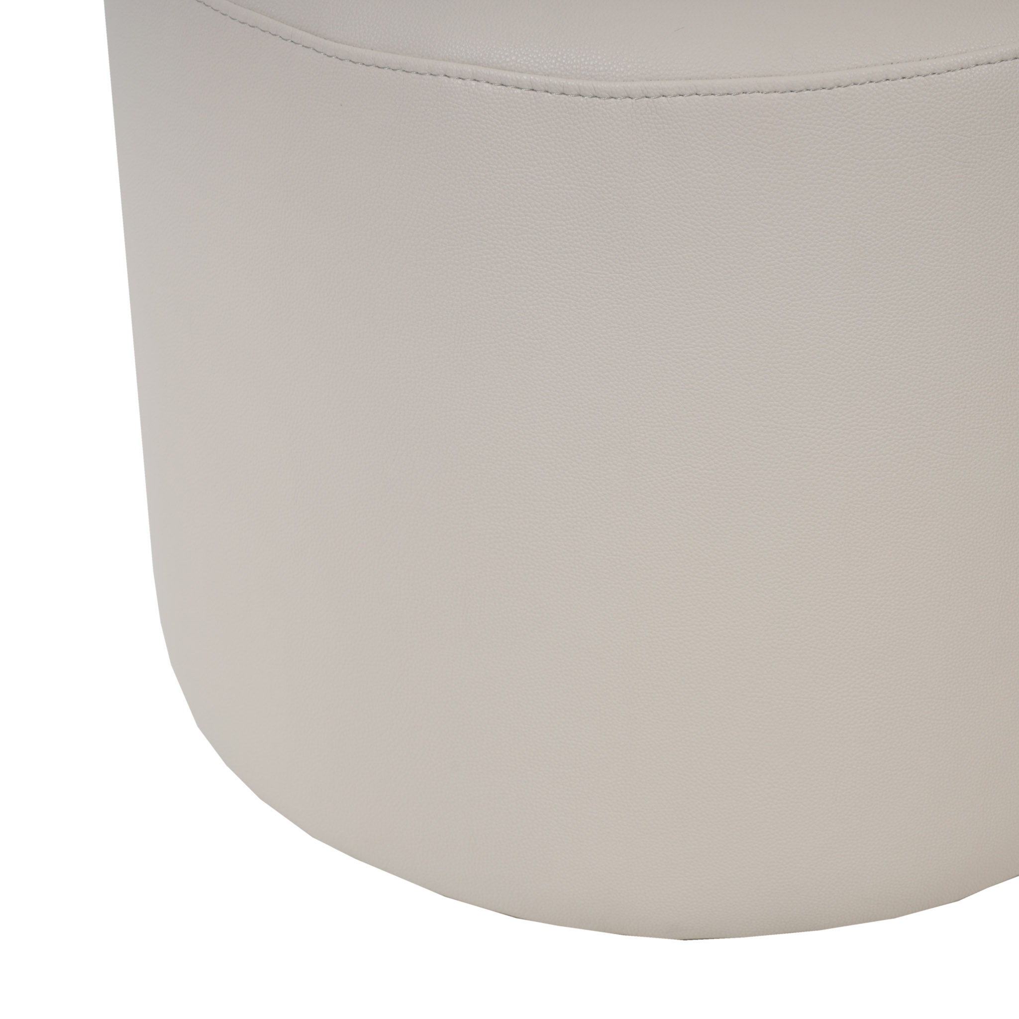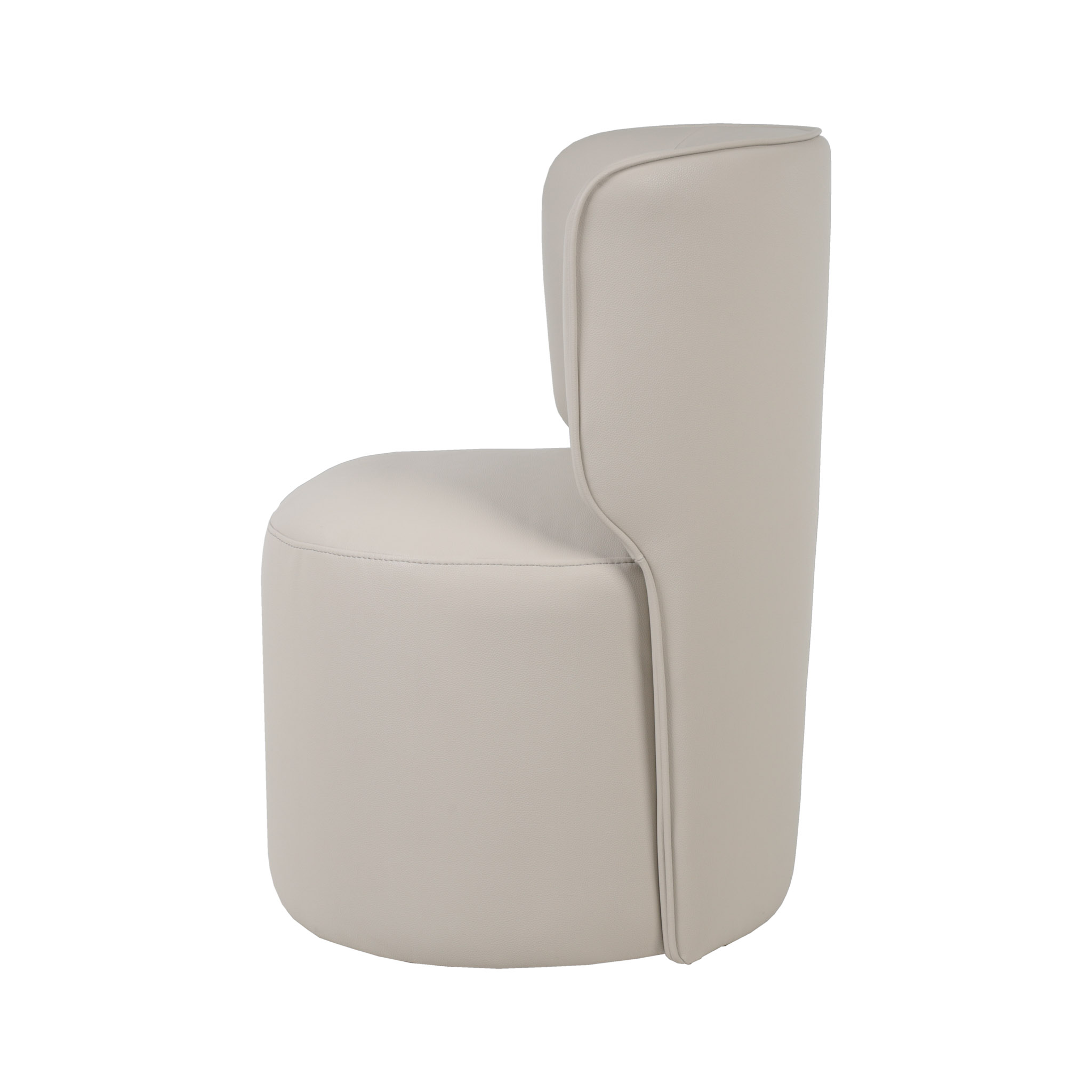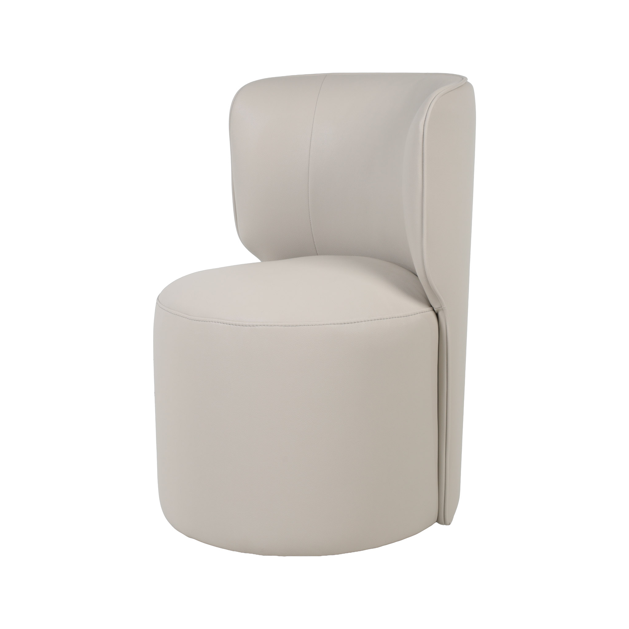 Moderna silla tapizada en cuerina color crema claro y con sistema giratorio.
