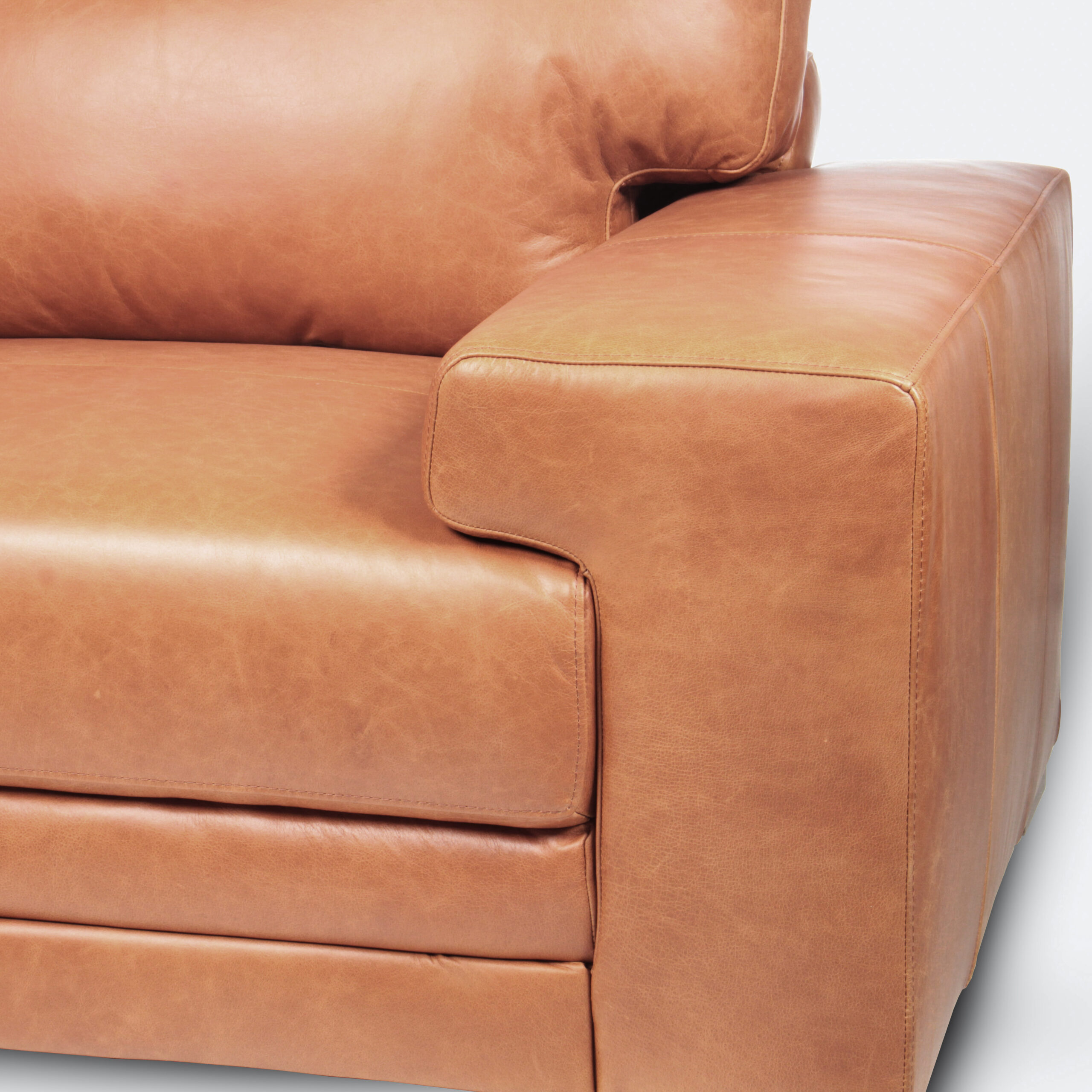 El sofá de tres puestos en cuero terracota es una pieza con carácter que aporta calidez y estilo al espacio. Su tono vibrante y diseño contemporáneo lo convierten en el punto focal perfecto para una sala moderna y acogedora.
