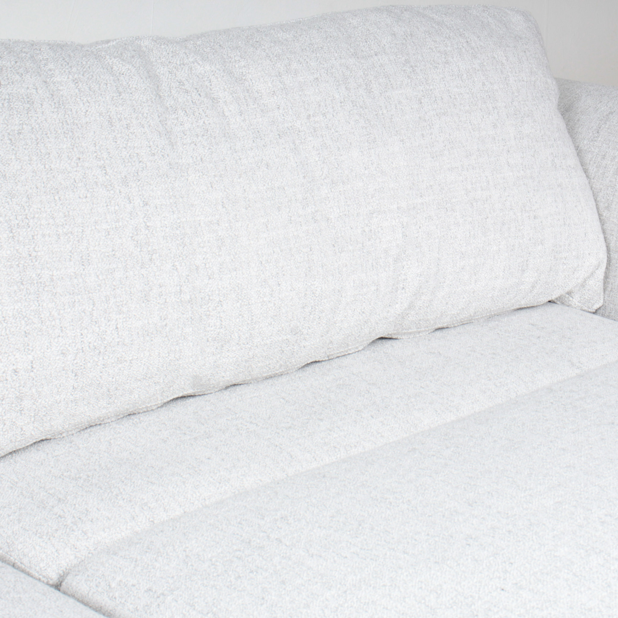 Diseñado con dos piezas expandibles, este sofá se adapta a tus necesidades diarias, brindando un espacio amplio para reuniones familiares o momentos de relax. Su acabado en tela blanca transmite frescura y amplitud, haciendo de este mueble una opción versátil tanto para interiores contemporáneos como clásicos.