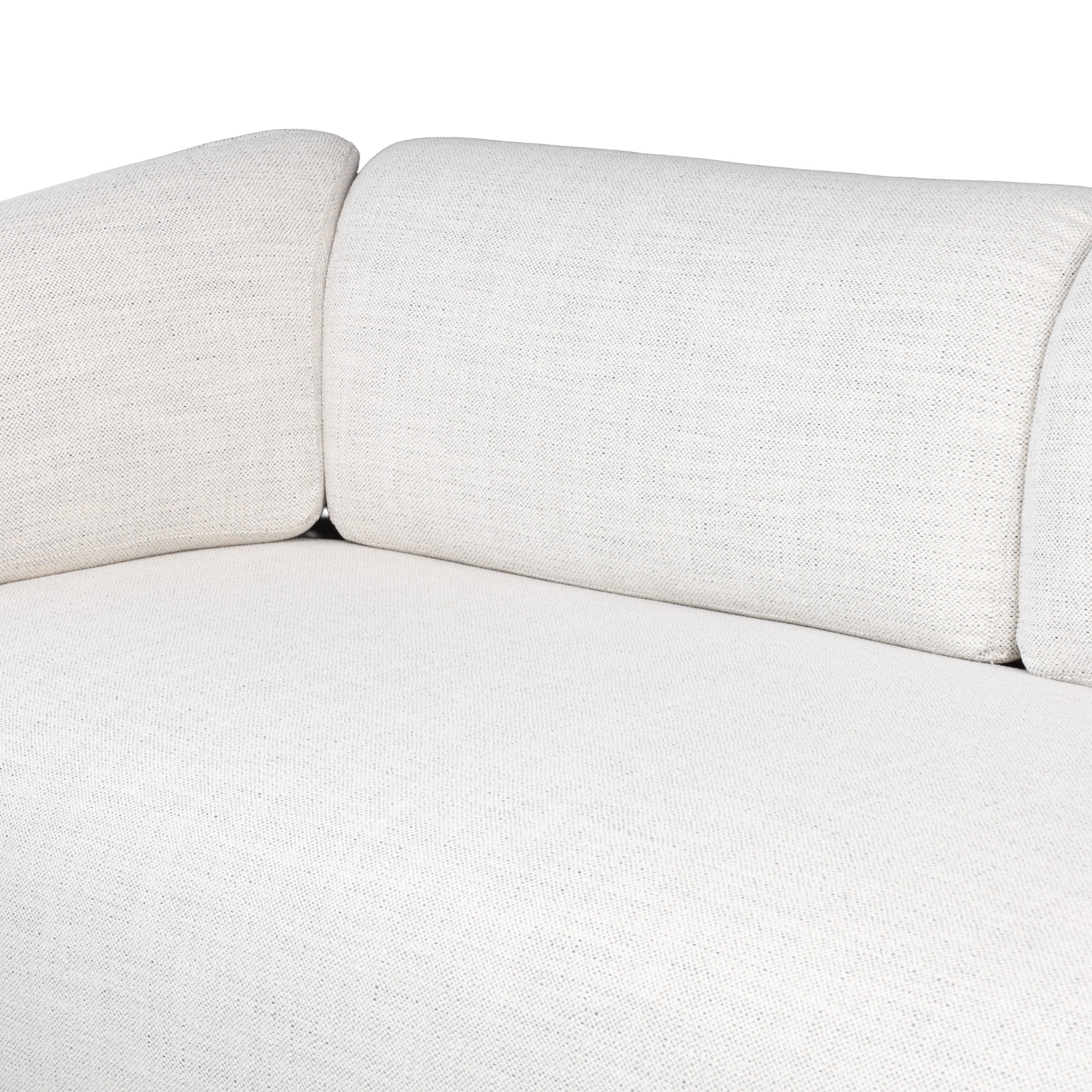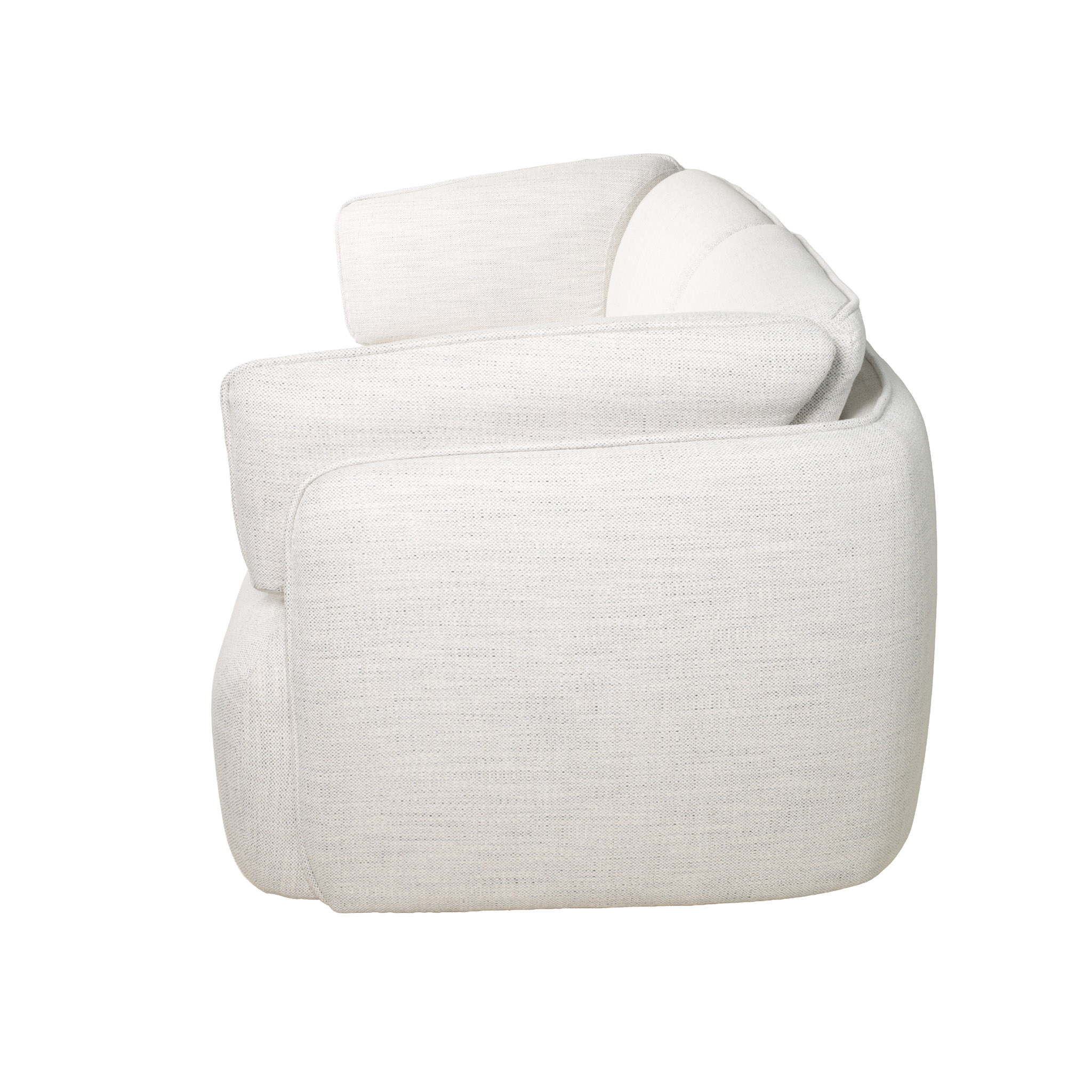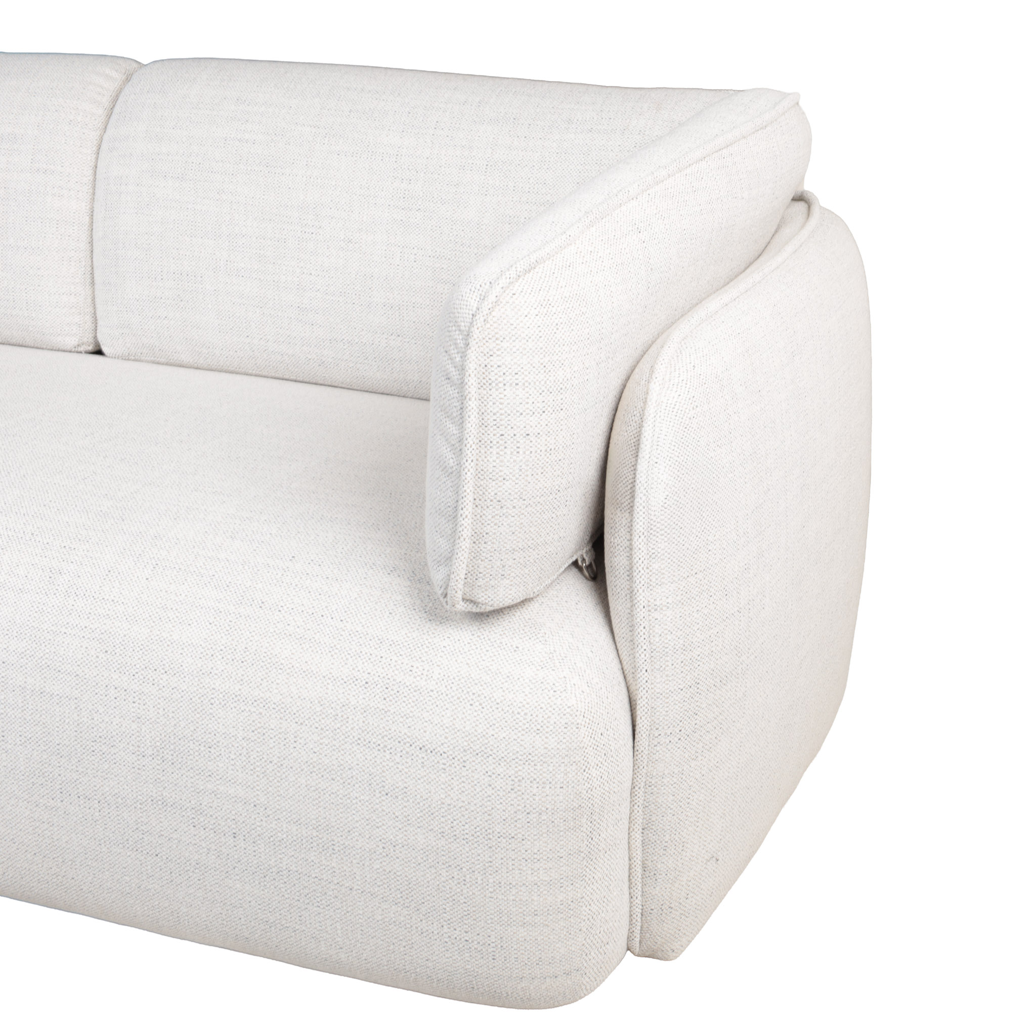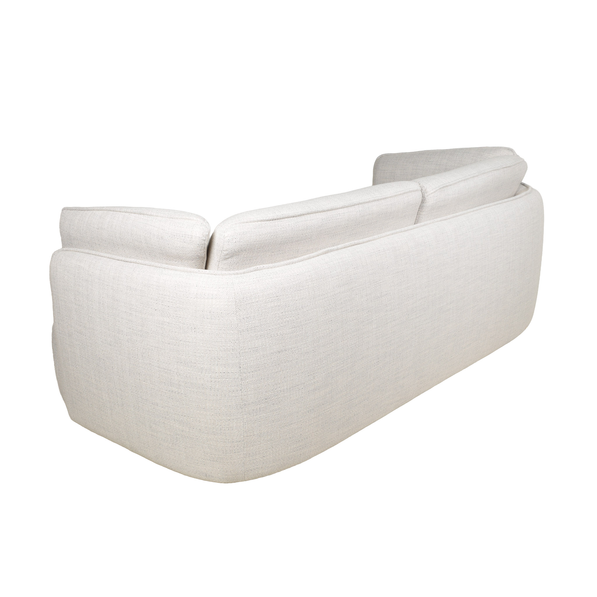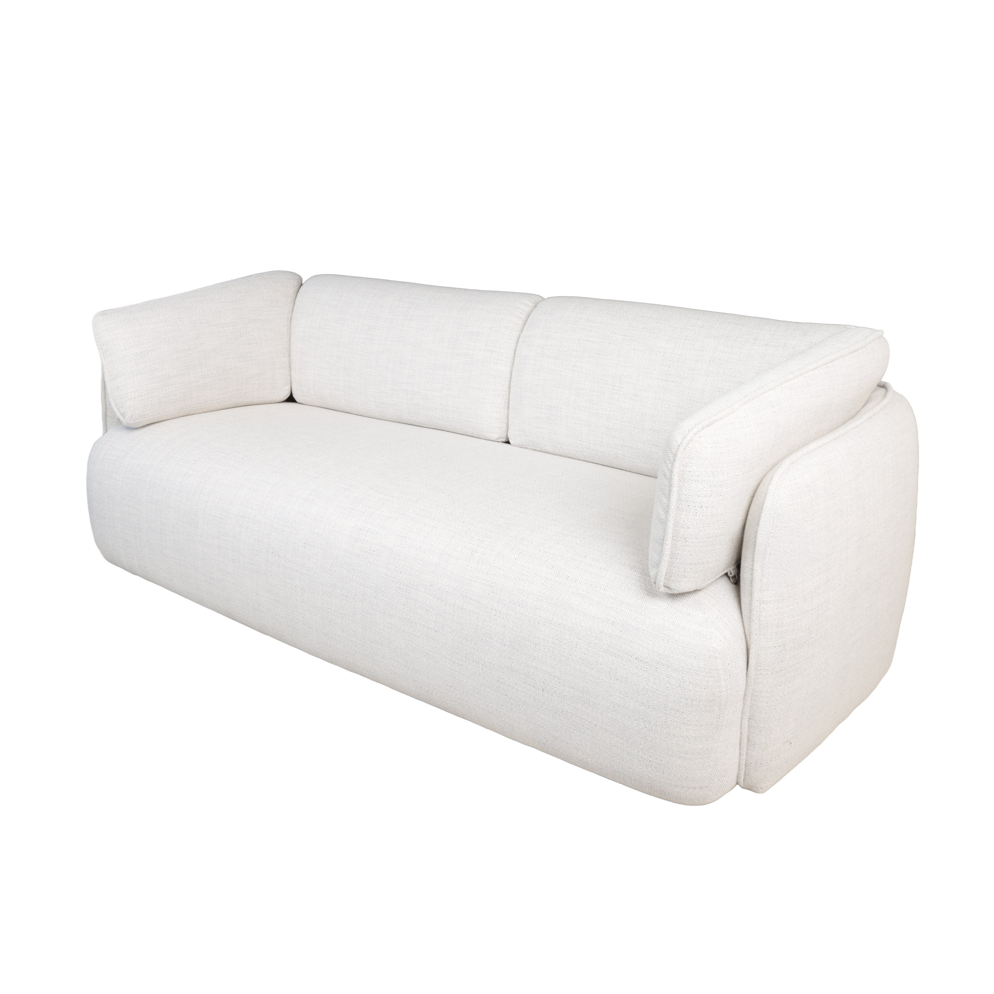 Cómodo sofá de tres puestos con tapiz en tono blanco.