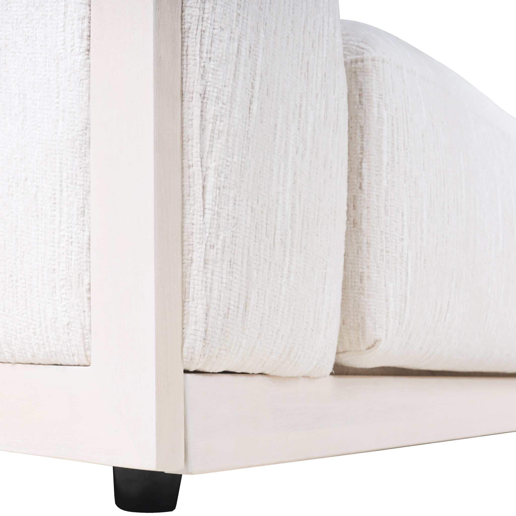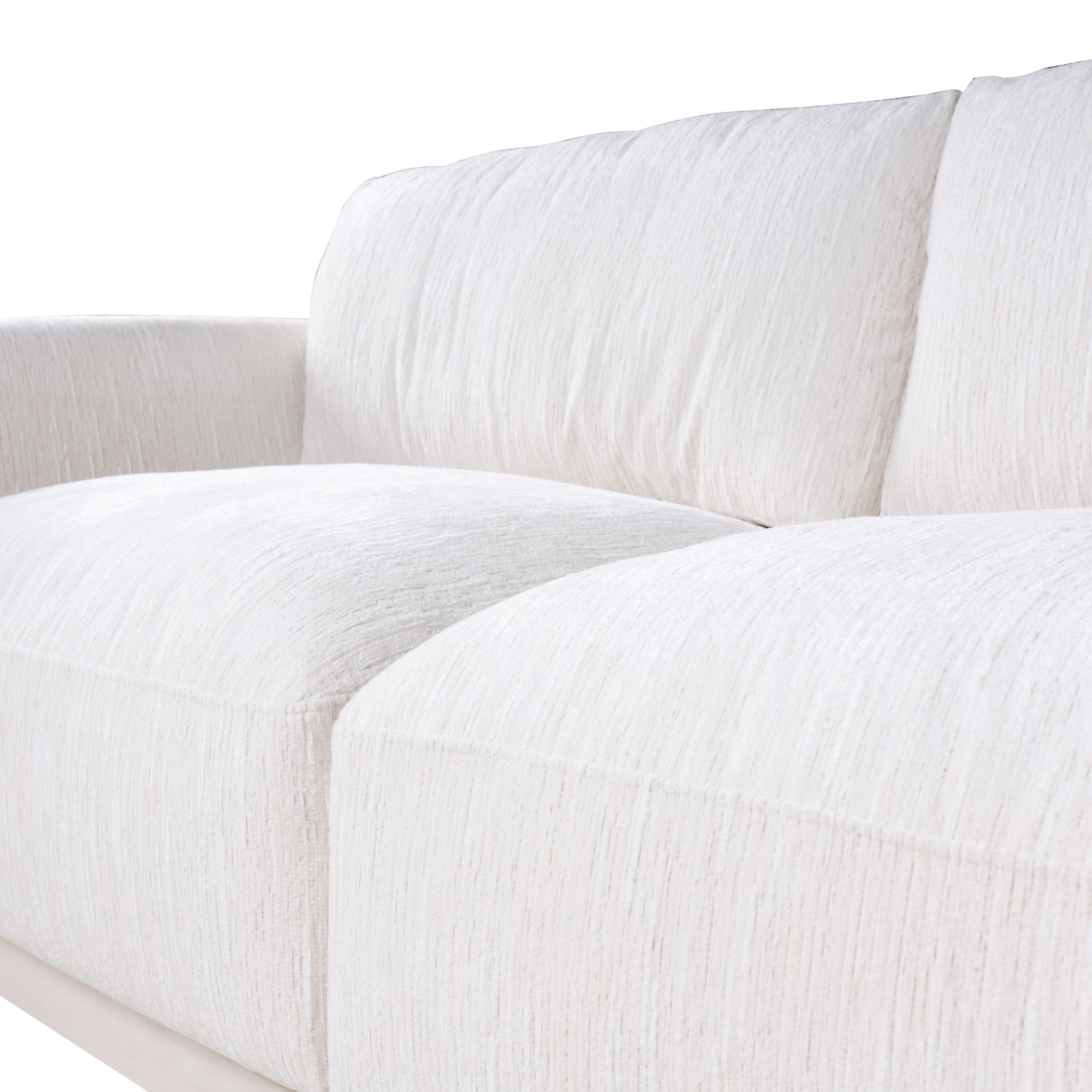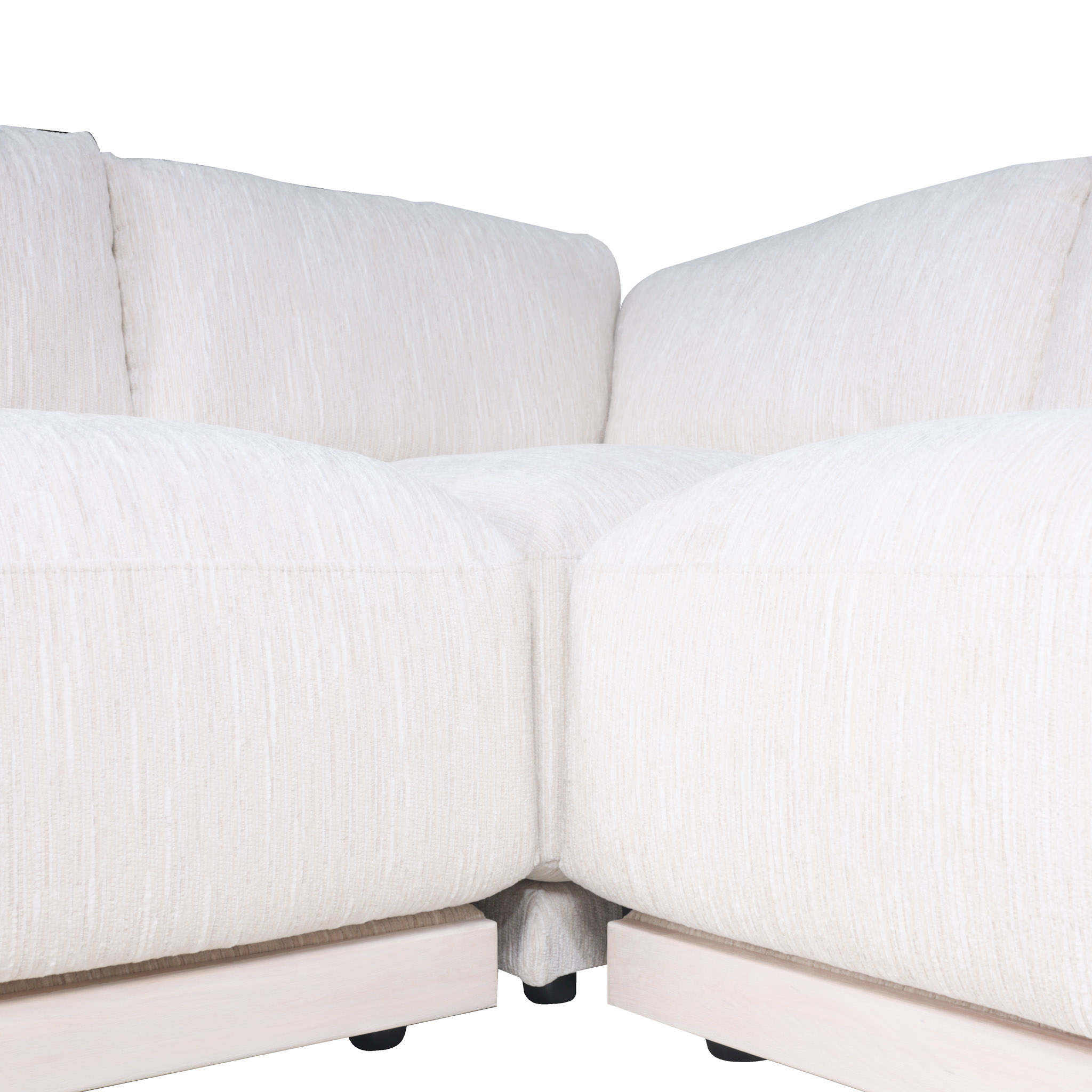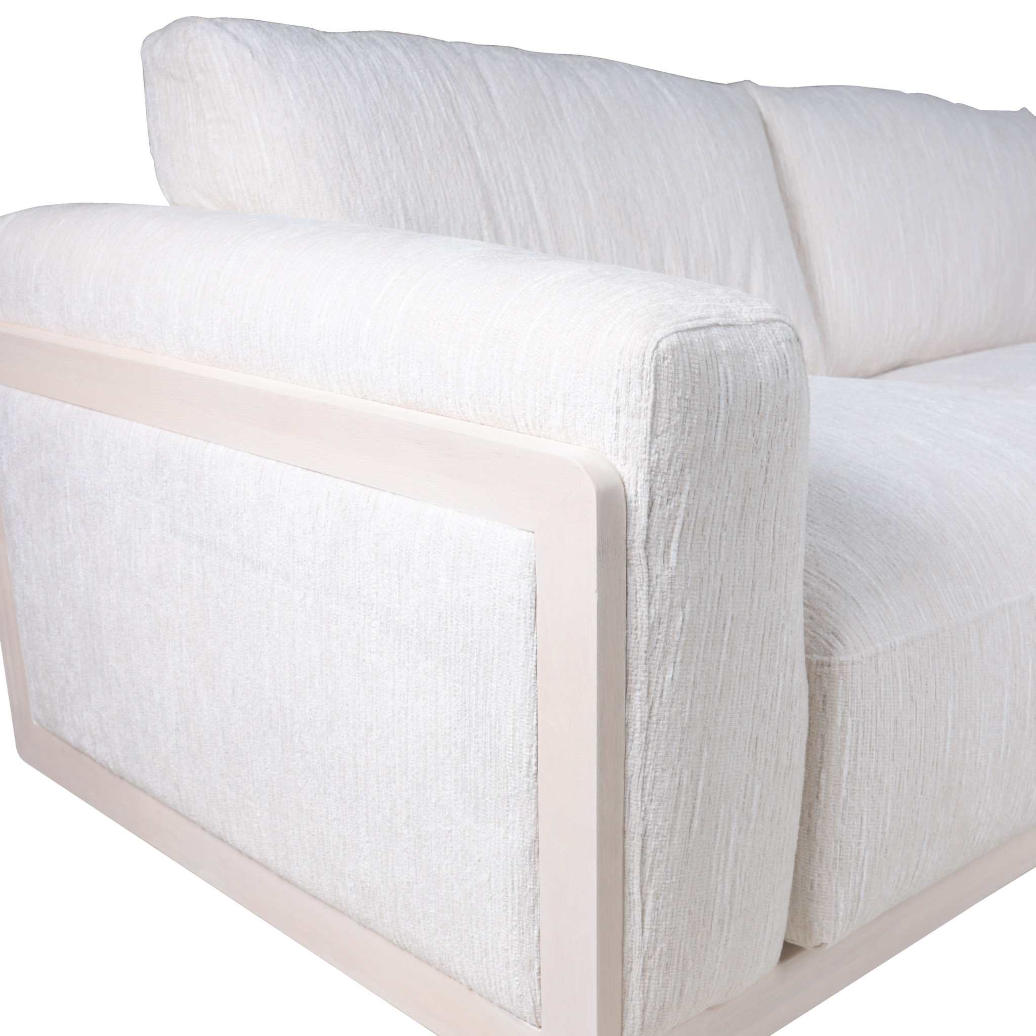 Versatilidad arquitectónica con acento artesanal. Este sofá seccional tapizado en tela crema claro ofrece una estética suave y estructurada, ideal para ambientes con espíritu escandinavo o japonés moderno. Su diseño se distingue por un marco expuesto en madera clara, que enmarca el asiento con elegancia y calidez. Las patas en combinación de madera clara y negra aportan un contraste sutil que refuerza el carácter contemporáneo del mueble. Perfecto para espacios que exigen diseño adaptable y personalidad visual.