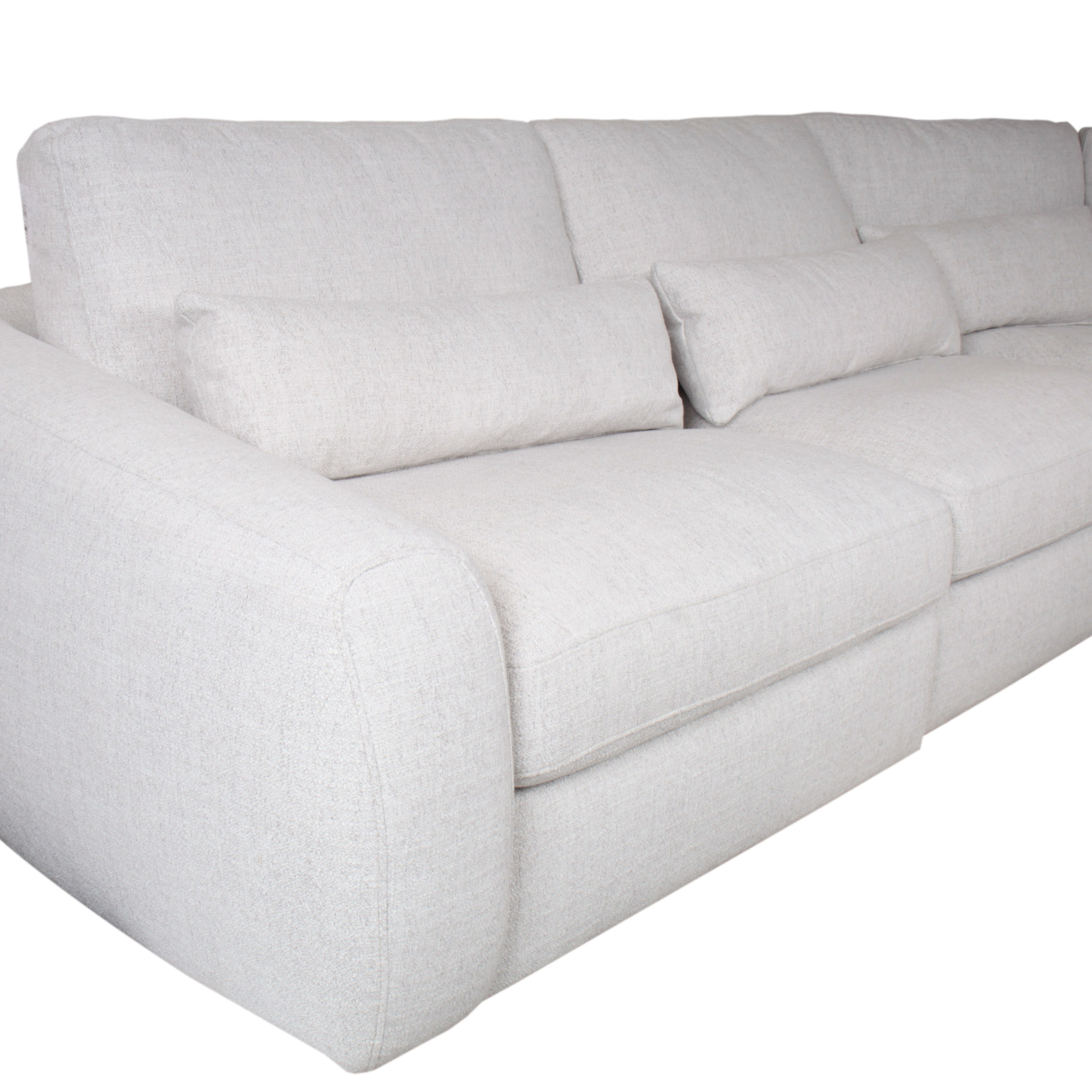 Sofá seccional de tela con chaise derecho. Un diseño moderno y cómodo que ofrece un espacio amplio para relajarse, ideal para cualquier sala de estar que busque funcionalidad y estilo.