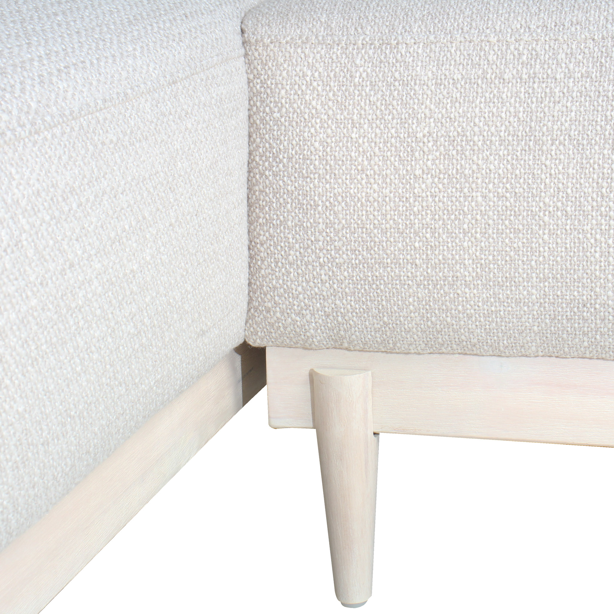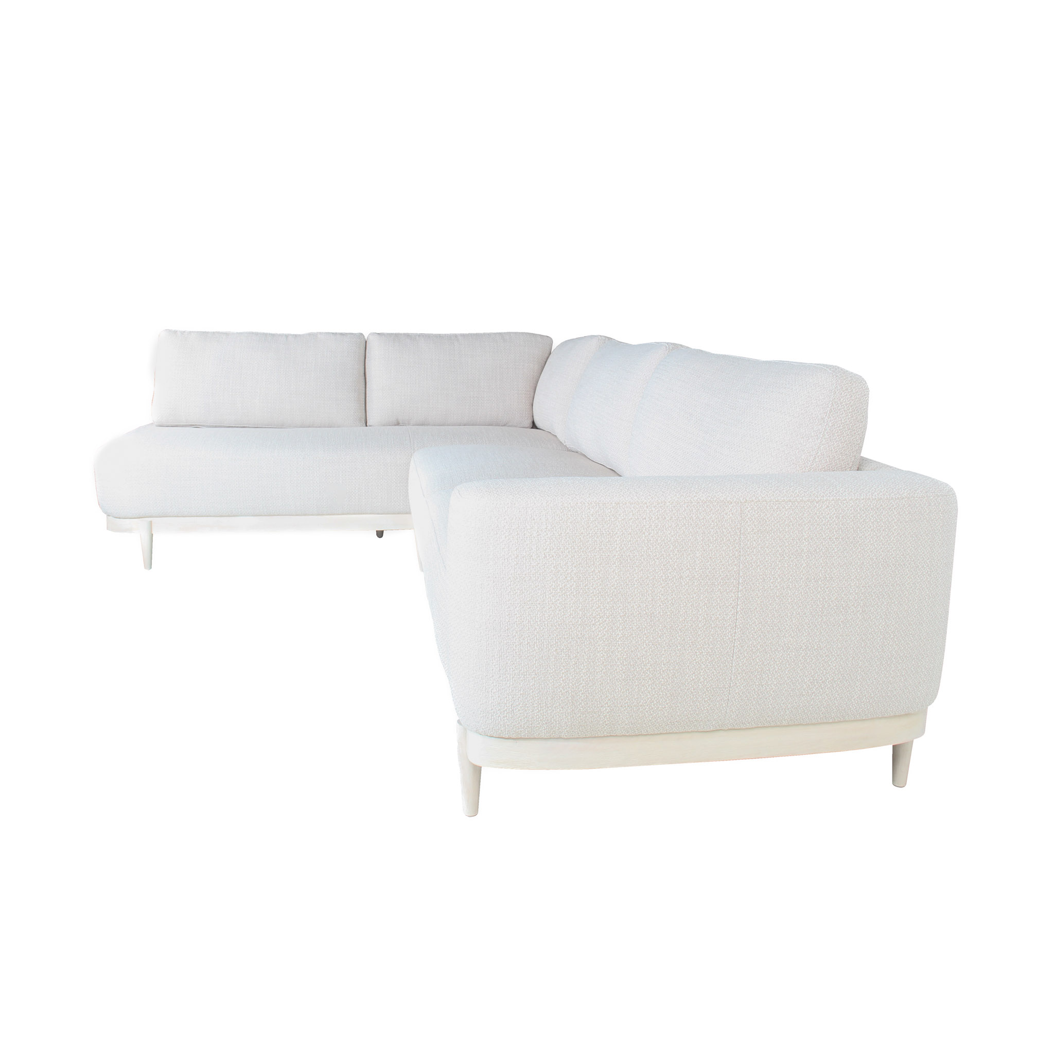 Diseño limpio, ligero y adaptable. Este sofá seccional en tela blanca se presenta como una pieza esencial para salas luminosas y modernas. Disponible con chaise izquierdo, su configuración se adapta fácilmente a diferentes distribuciones de espacio. Las patas de madera clara refuerzan su estética liviana y natural, aportando una base cálida a su estructura minimalista. Ideal para quienes buscan un equilibrio entre funcionalidad y estilo fresco.