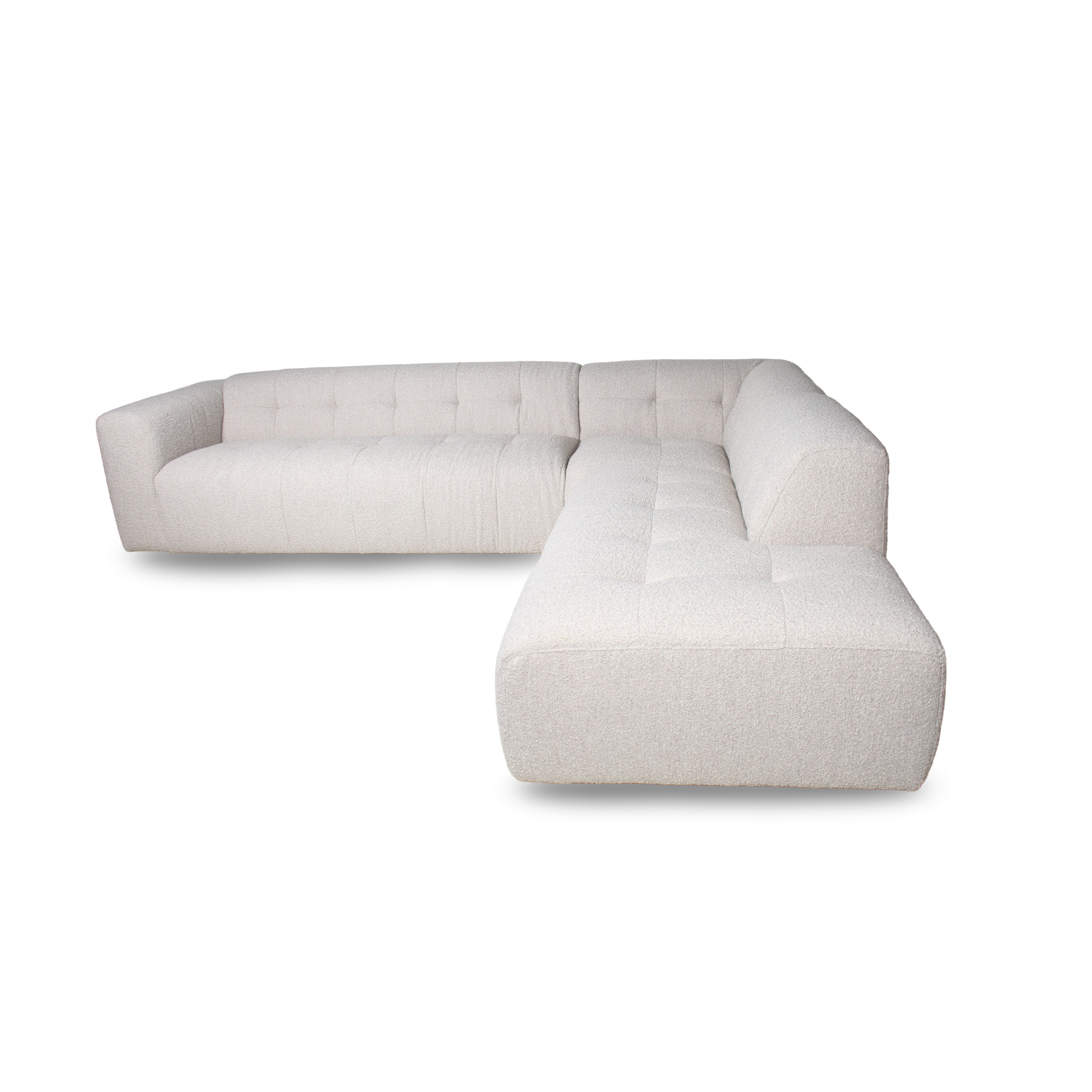 Sofá seccional de tela con chaise derecho. Un diseño moderno y cómodo que ofrece un espacio amplio para relajarse, ideal para cualquier sala de estar que busque funcionalidad y estilo.