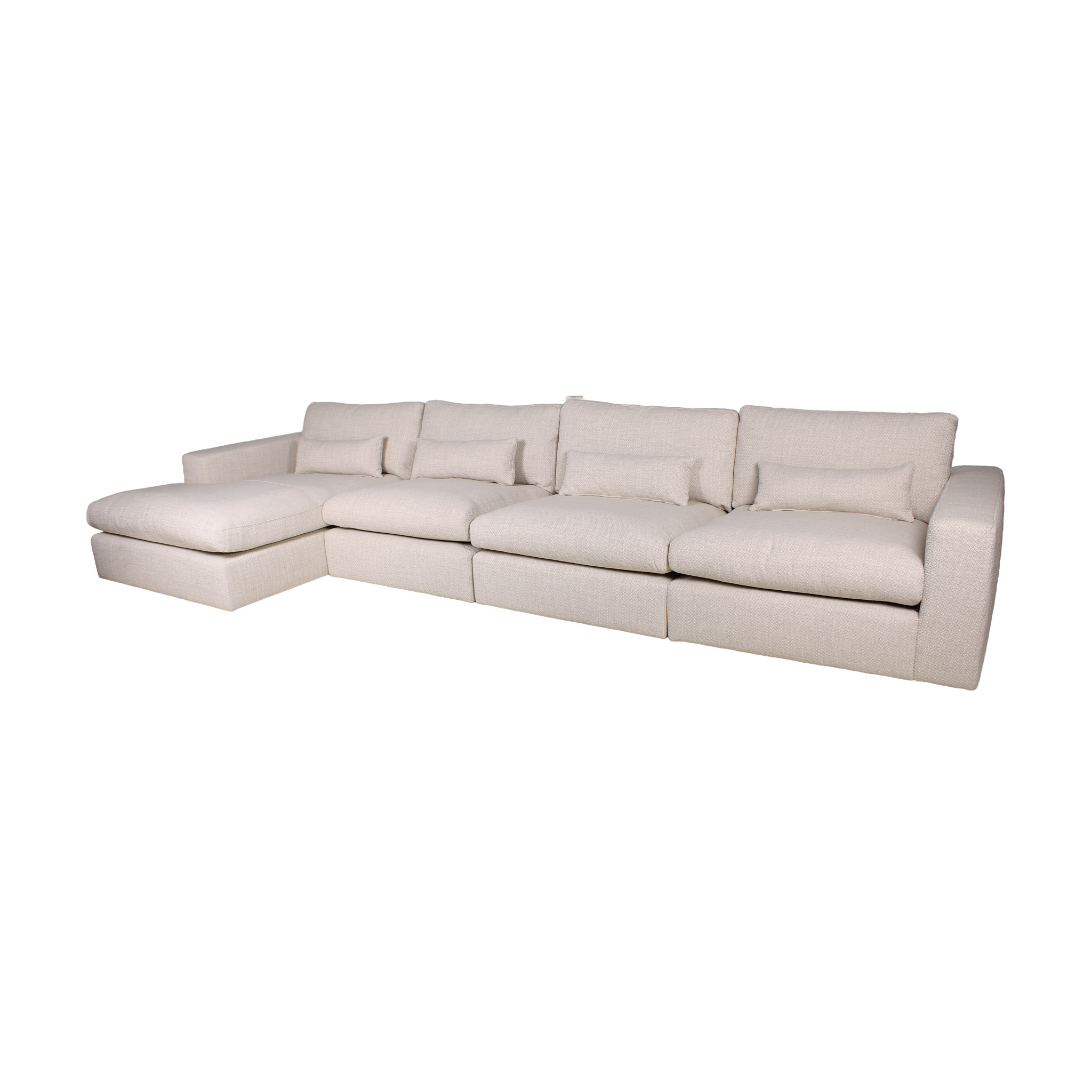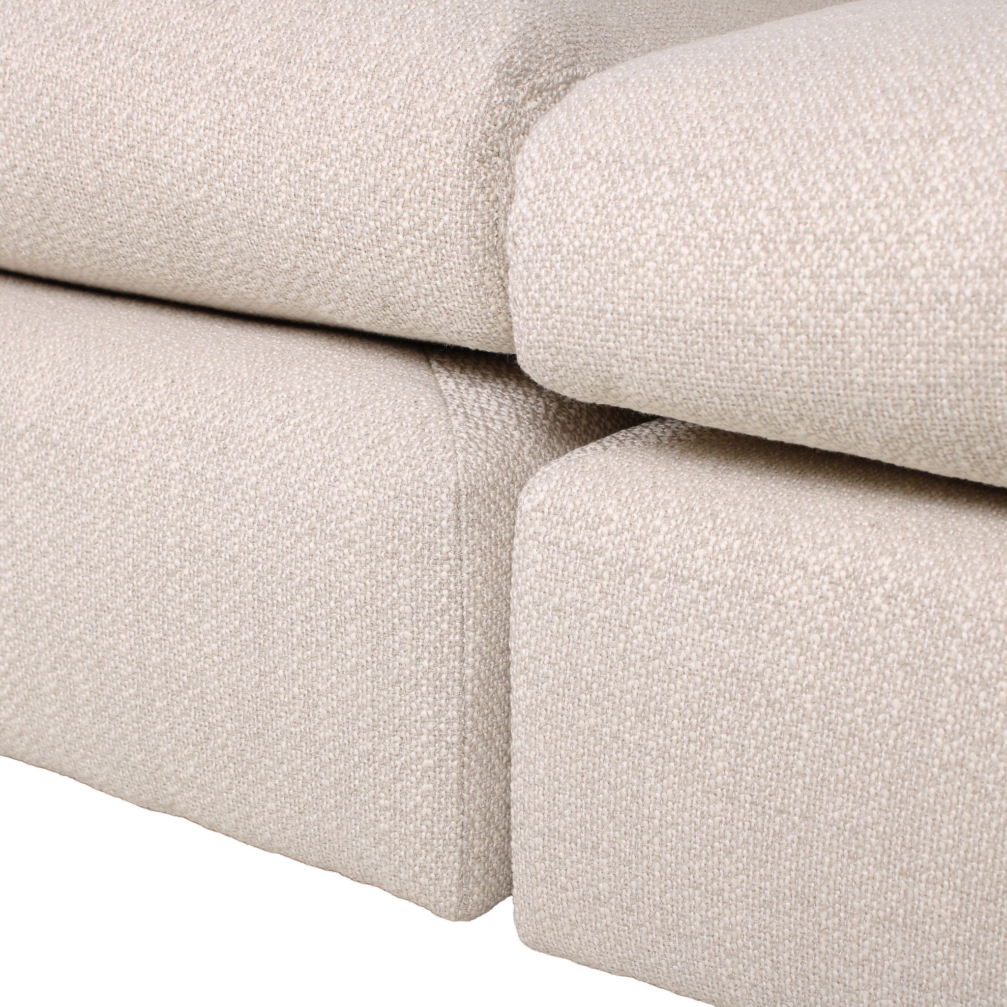 Espacioso sofá seccional de tela en tono ivory, con el chaise del lado izquierdo.